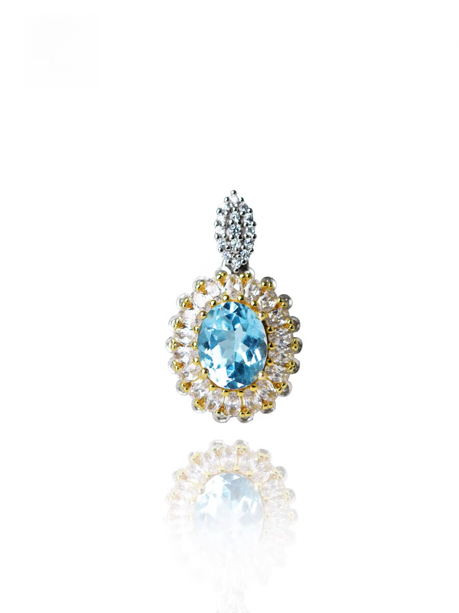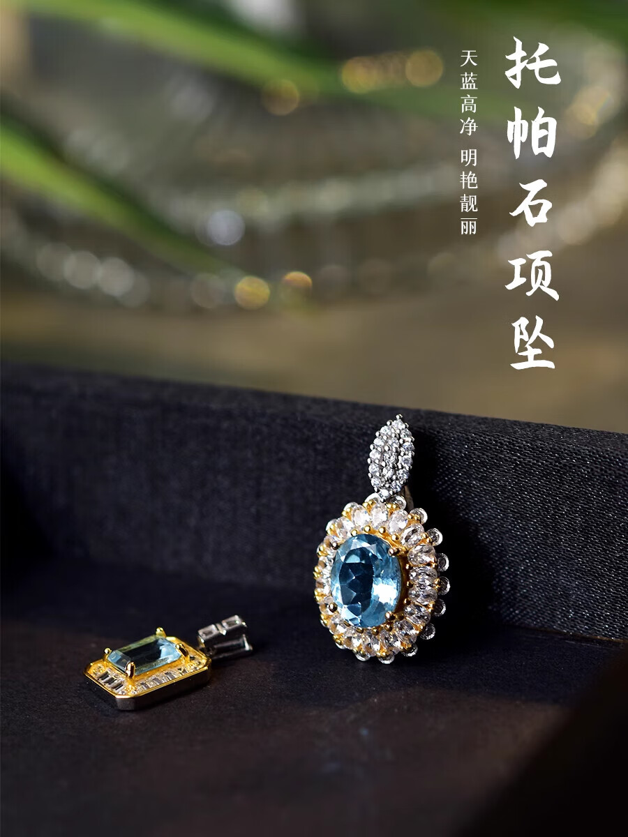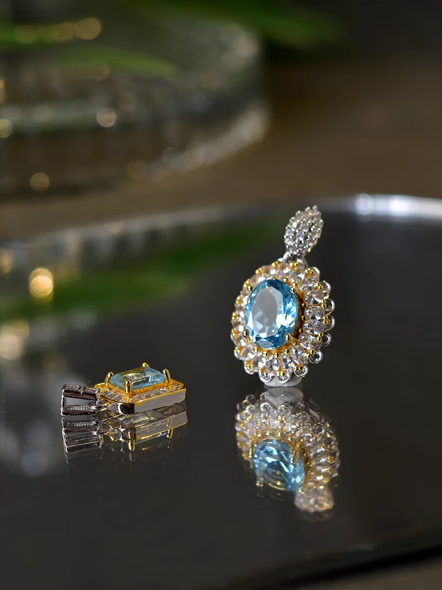 Fat Donglai same style blue topaz necklace for women s925 silver inlaid raw stone bare stone pendant gem clavicle chain neck 05#s925 silver blue topaz passepartout pendant with