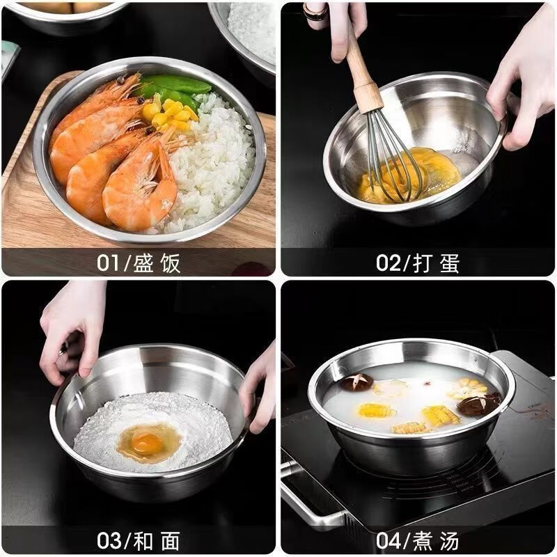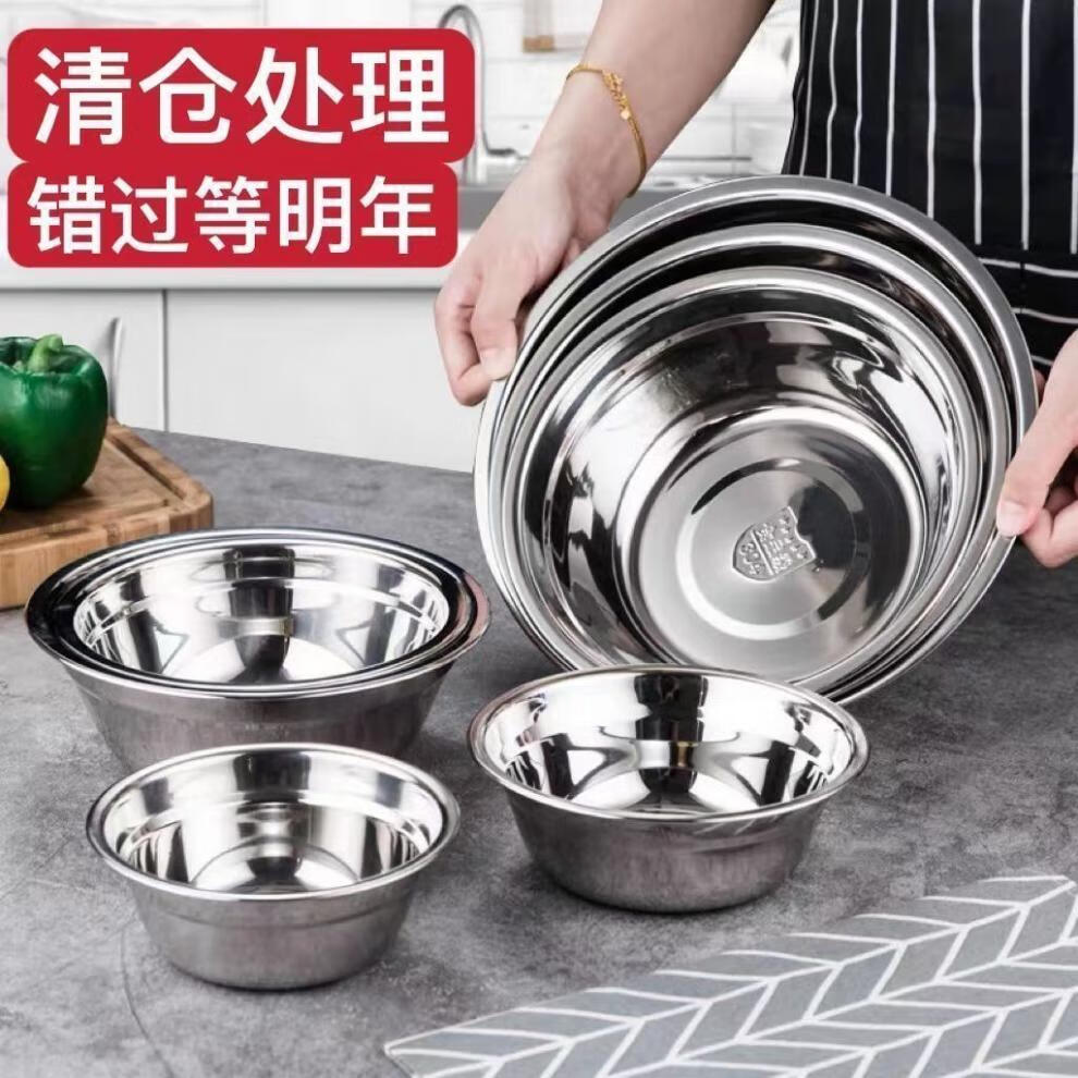 Vinoa 304 stainless steel basin thickened non-magnetic multi-purpose basin canteen soup bowl household instant noodle bowl rice basin bowl soup basin egg beating basin 304 stainless steel basin 14+16+18CM three-piece set