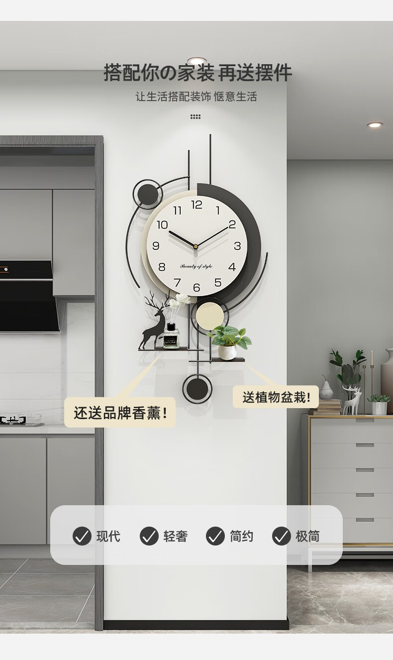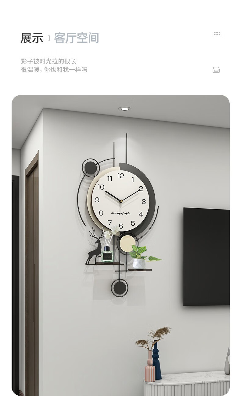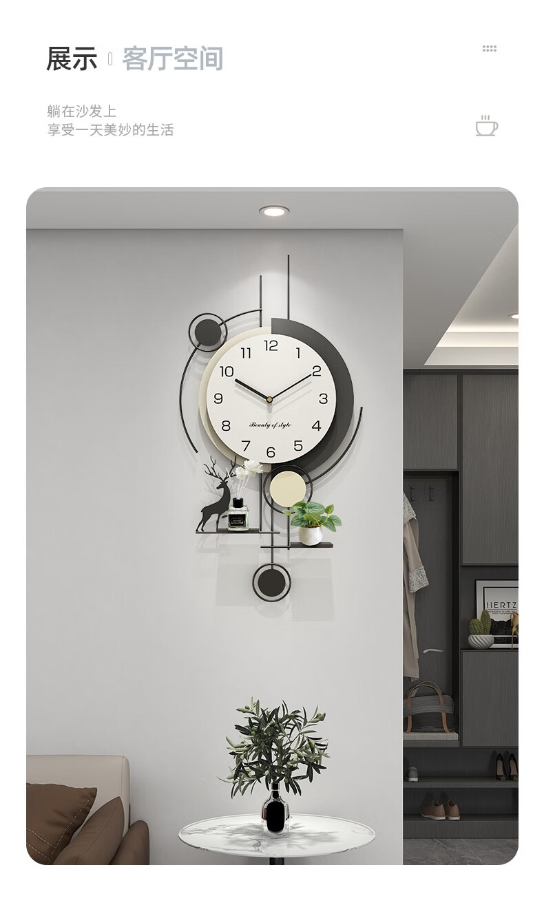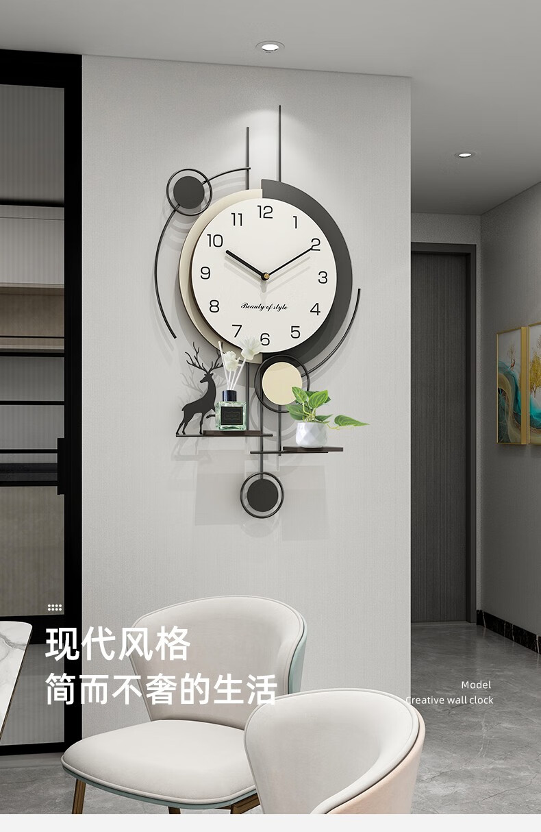 Love makeup clock wall clock living room home fashion 2025 new simple modern clock no punching creative wall-mounted quartz clock with calendar temperature Fulu 82*40 free ornaments
