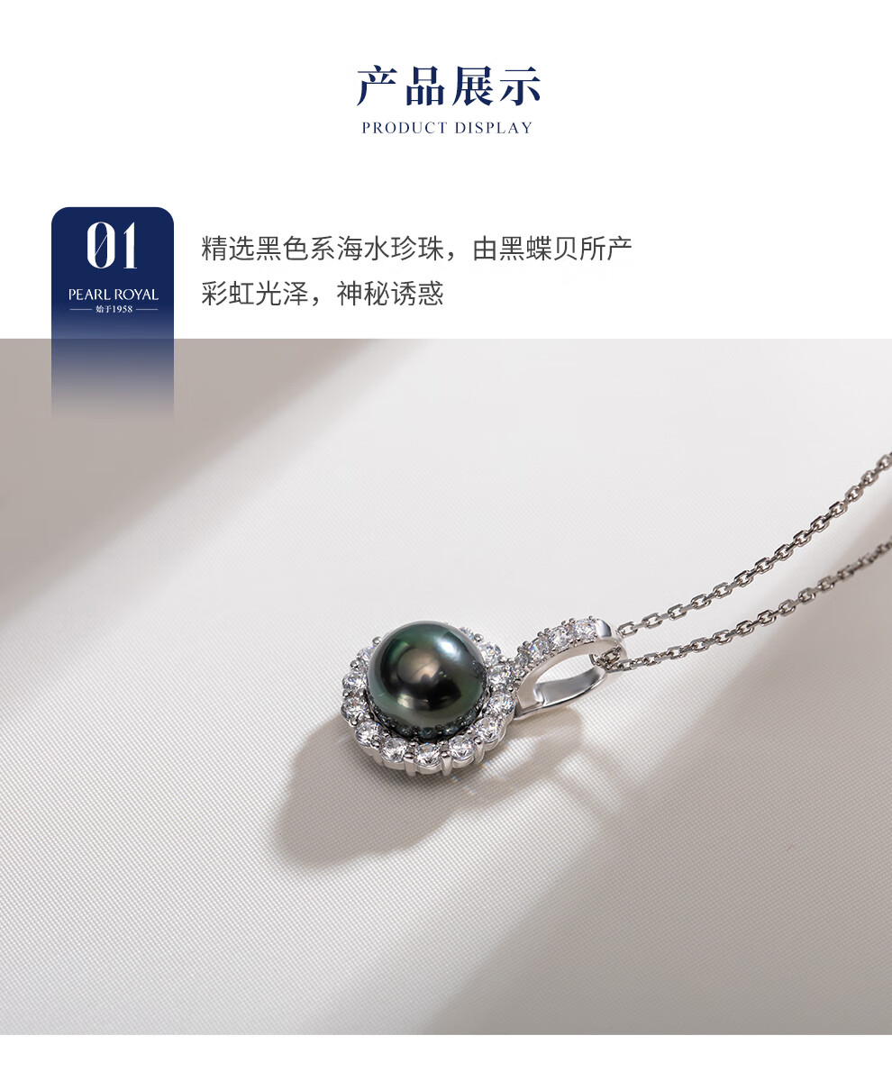 Nanzhu Palace starry sky seawater pearl pendant with strong light, nearly round Tahitian black pearl buckle, versatile and fashionable 925 silver seawater pearl pendant 8-9mm