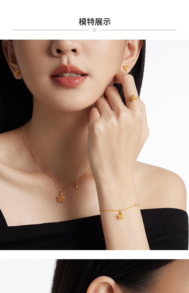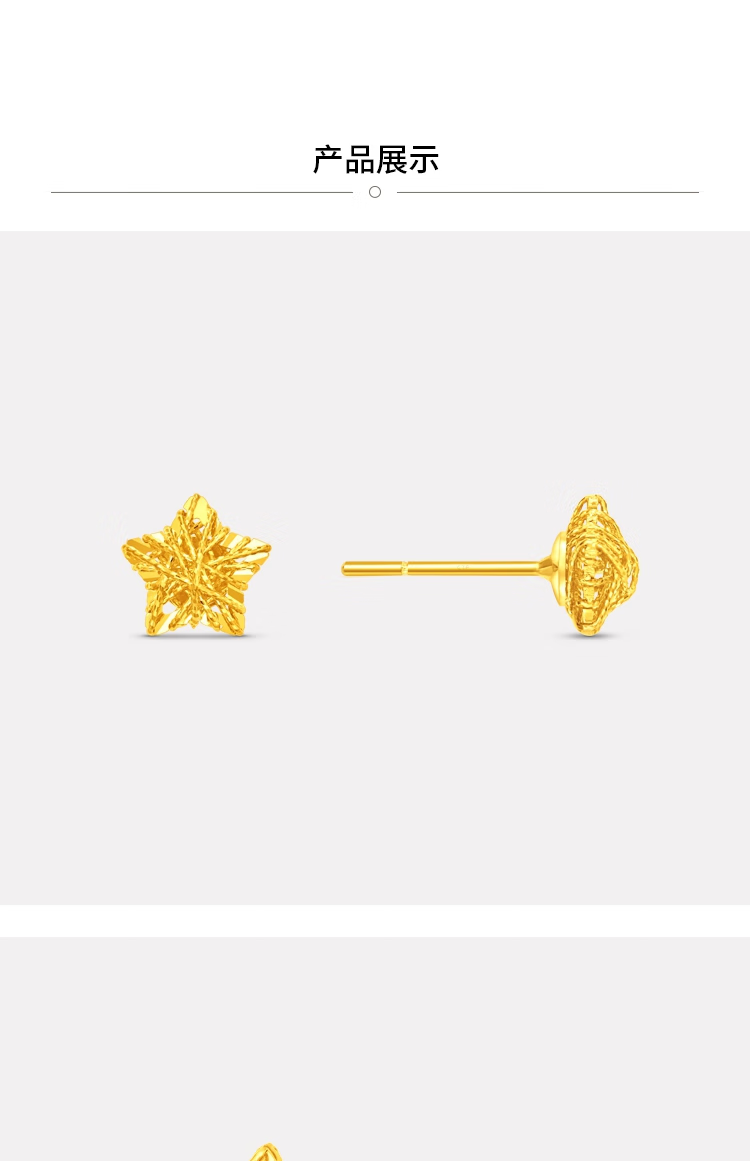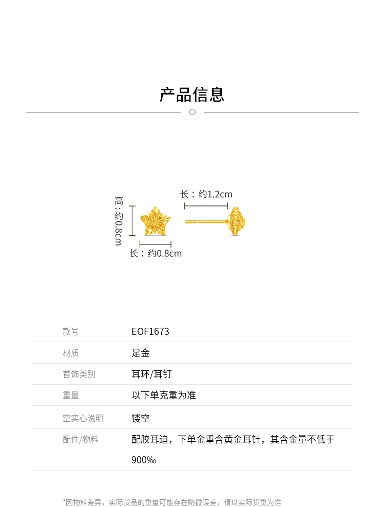Chow Tai Fook Hollow Sparkling Sugar Cube Stars Pure Gold Earrings and Earrings for Women as Birthday Gifts EOF1673 Priced at about 1.8g (labor cost 260)