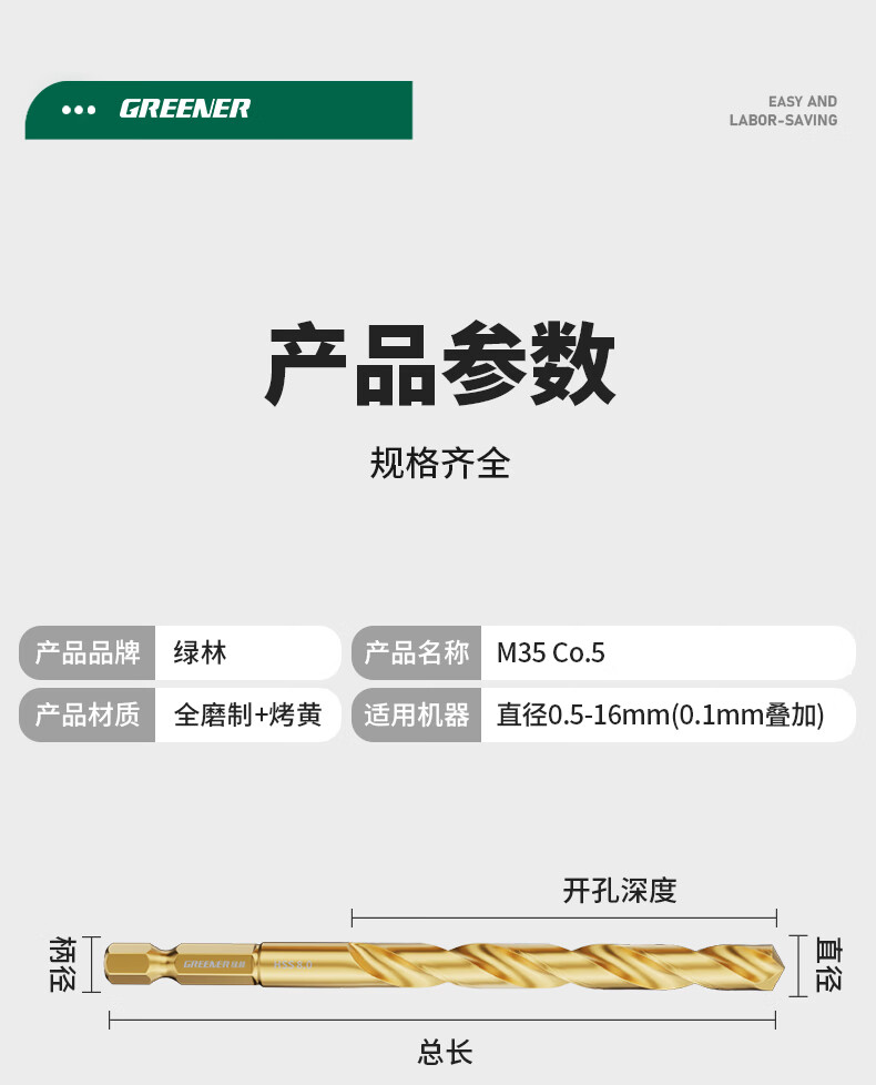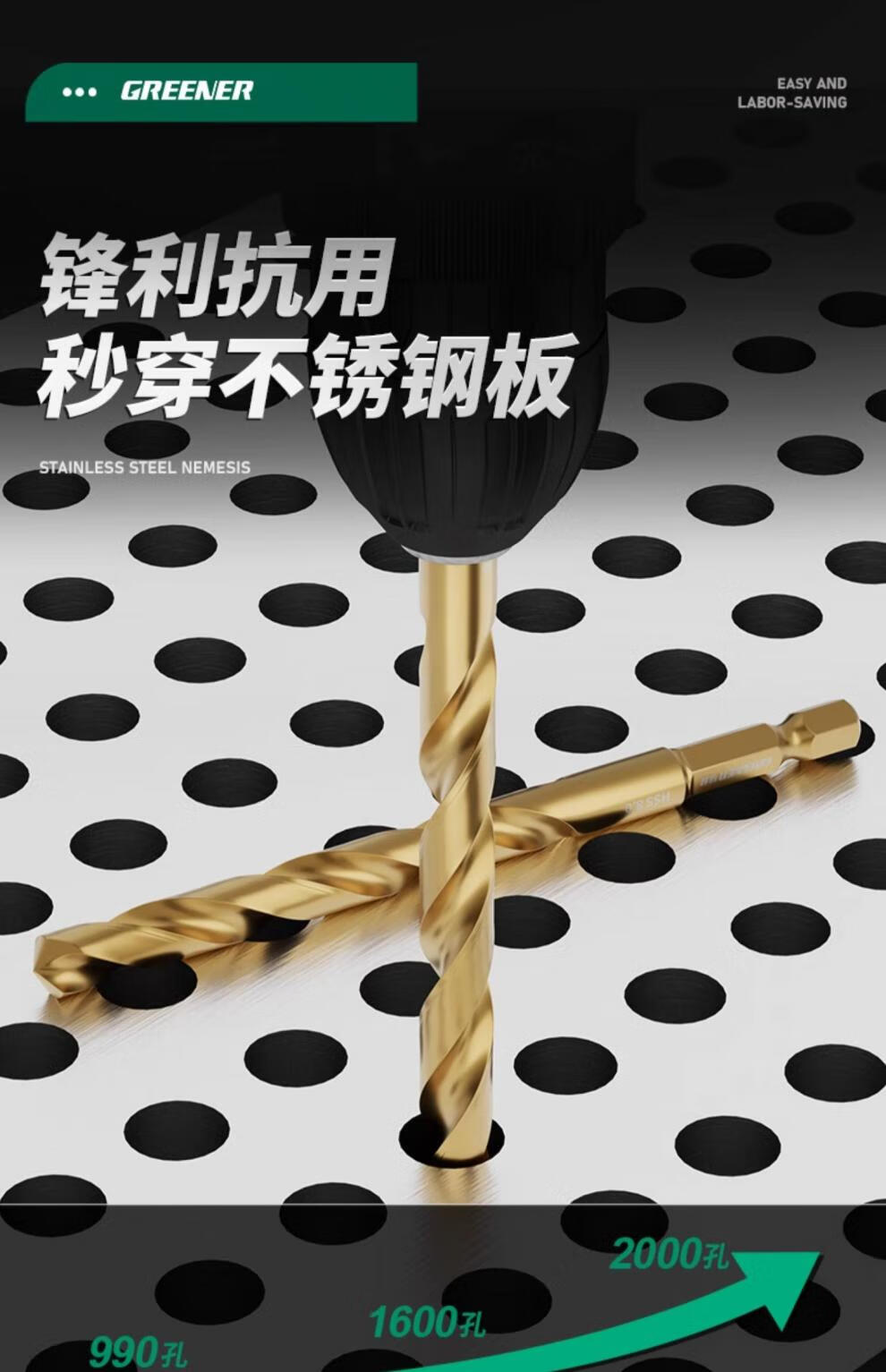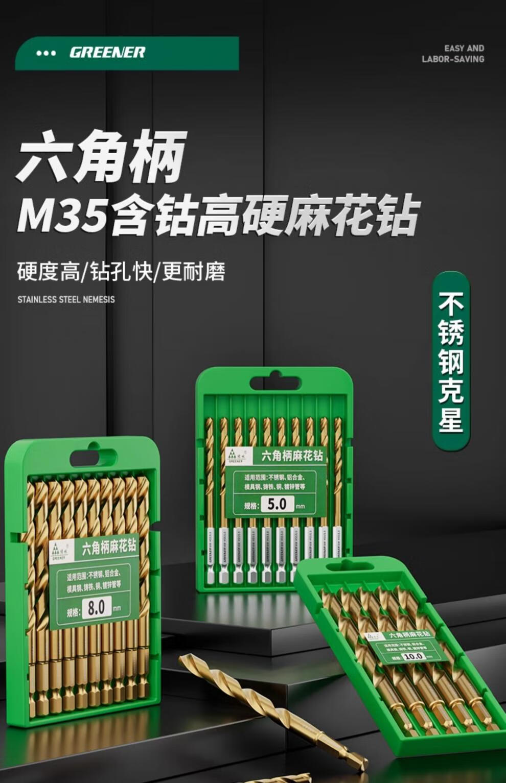 Green forest hexagonal shank drill bit twist drill stainless steel special high hardness punching steel set alloy containing cobalt store manager (1.5+2+3+4+5+6+8+10) 8 pieces