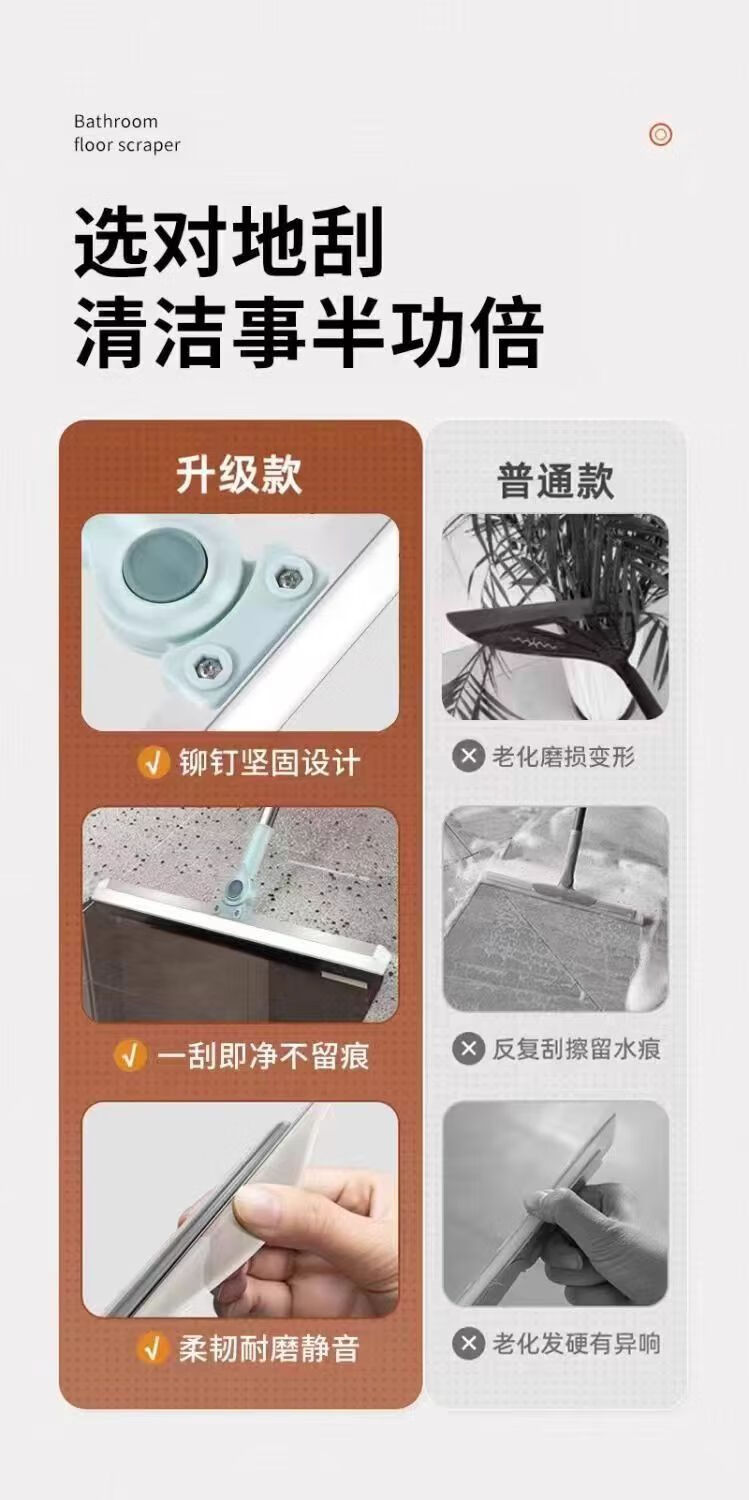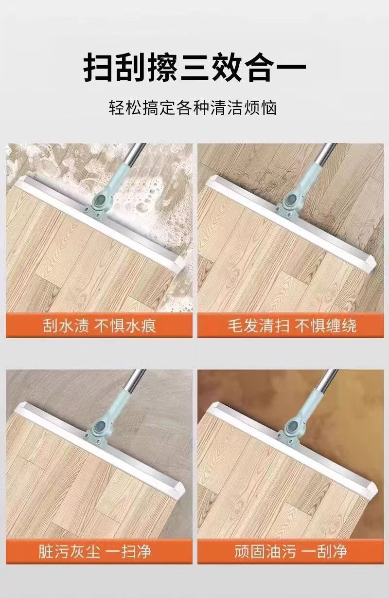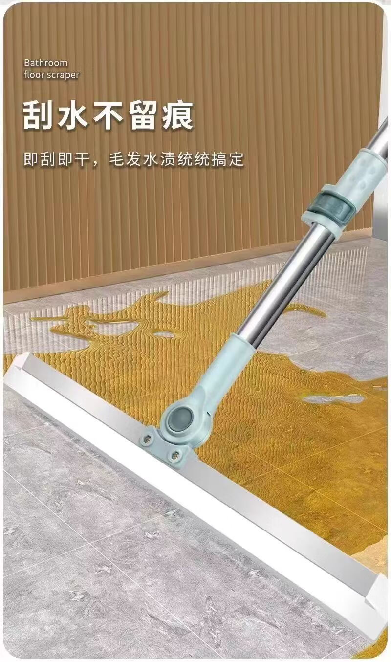 Magic Broom Sweeping Silicone Floor Scraper Floor Cleaning Broom Bathroom Toilet Wiper Sweeping Hair 50cm Upgraded Double Nail 1m Pole