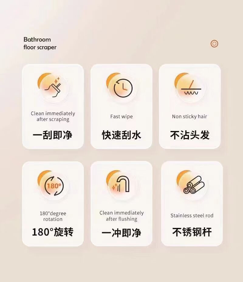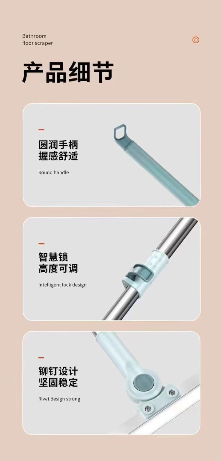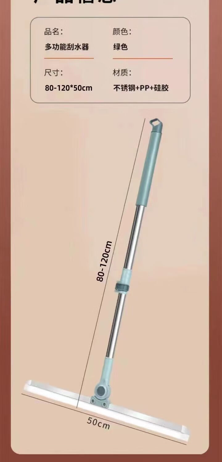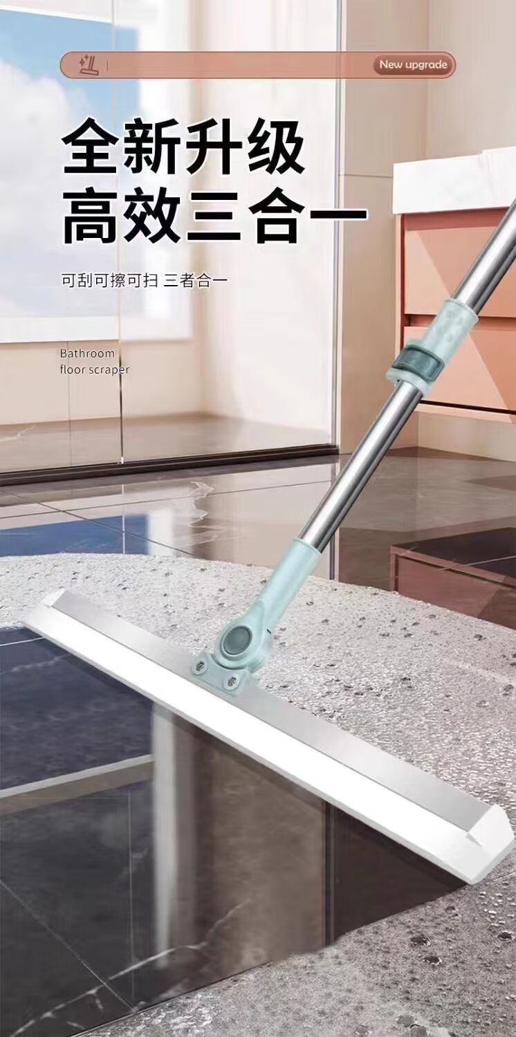 Magic Broom Sweeping Silicone Floor Scraper Floor Cleaning Broom Bathroom Toilet Wiper Sweeping Hair 50cm Upgraded Double Nail 1m Pole