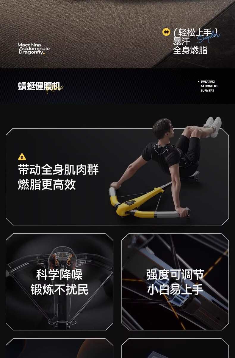 Dragonfly machine weight loss exercise home fitness equipment abdominal wheel automatic rebound crunch abdominal muscle slimming magic tool yellow and black flagship model 7-in-1 Dragonfly machine