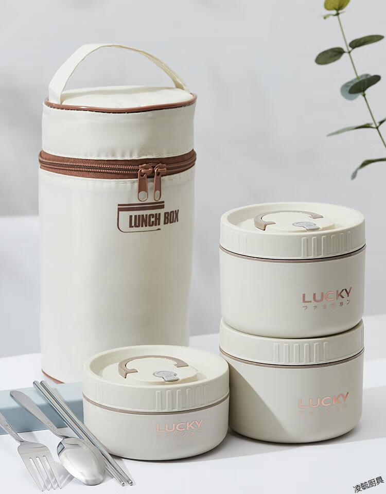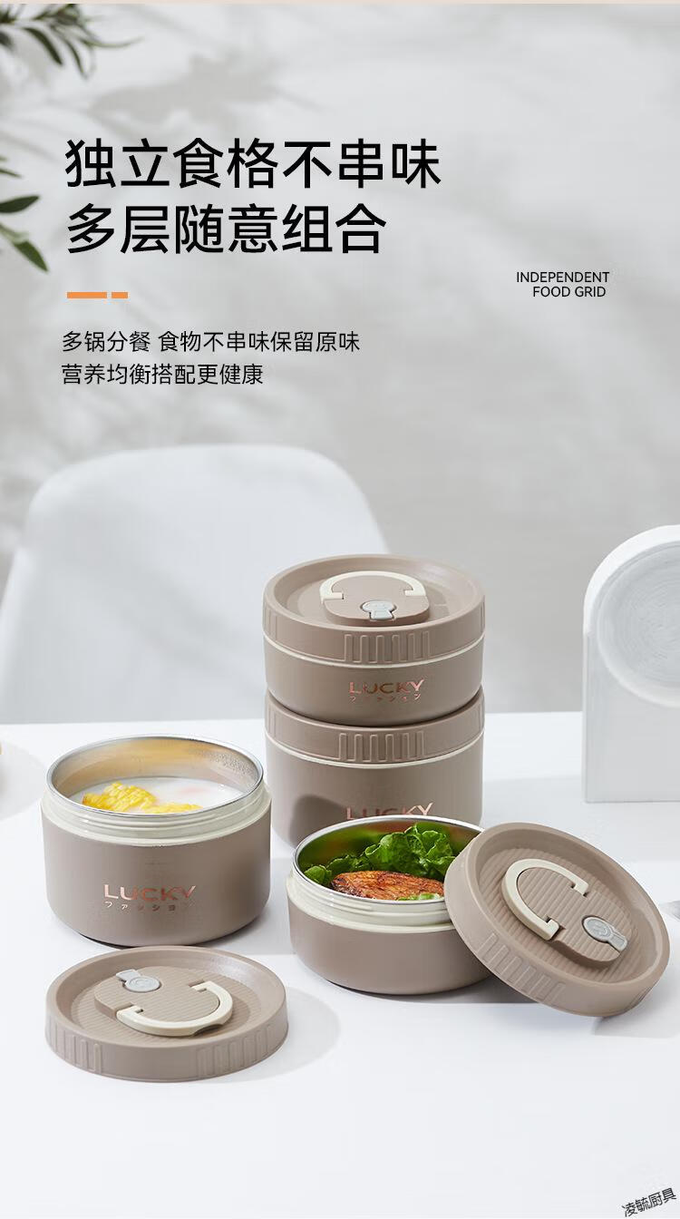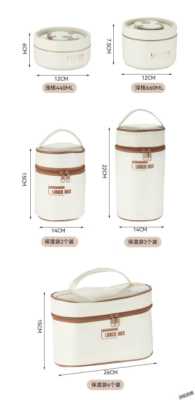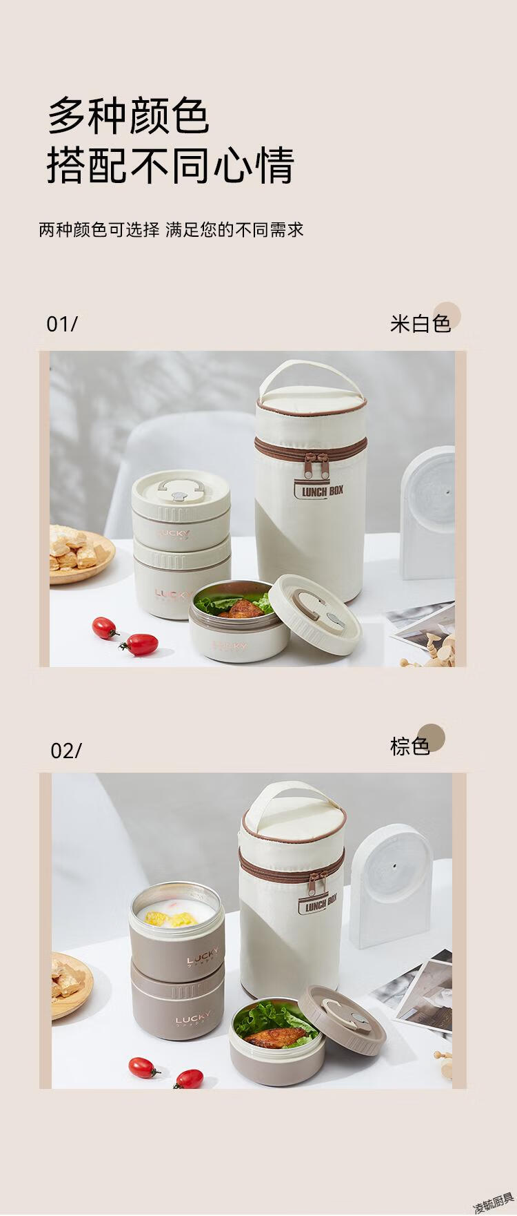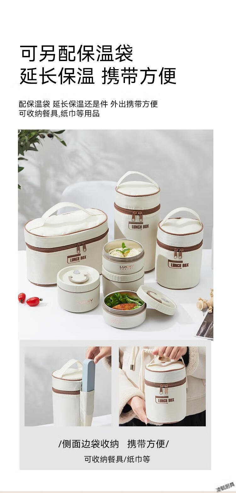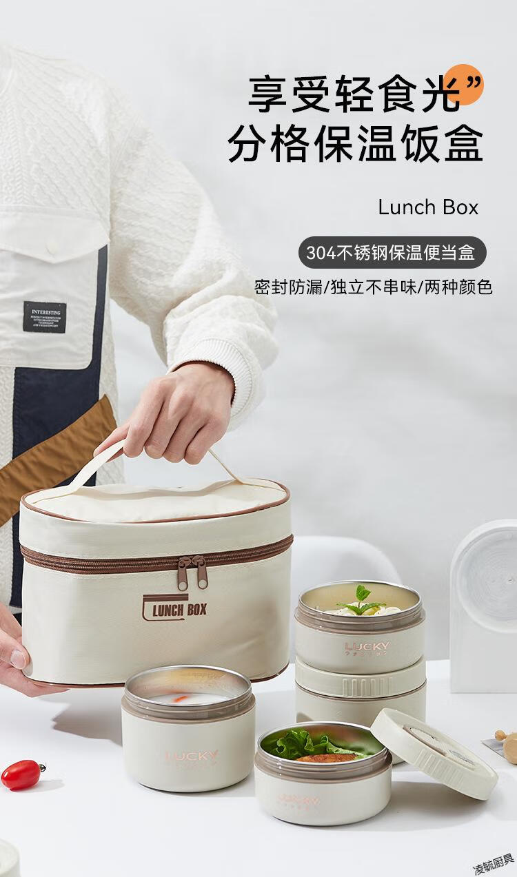 Tuojin imported quality insulated lunch box from Germany for office workers, sealed and leak-proof multi-layered lunch box for students with independent portions 304 1 large 1 small + tableware + bag beige