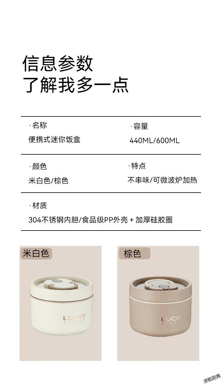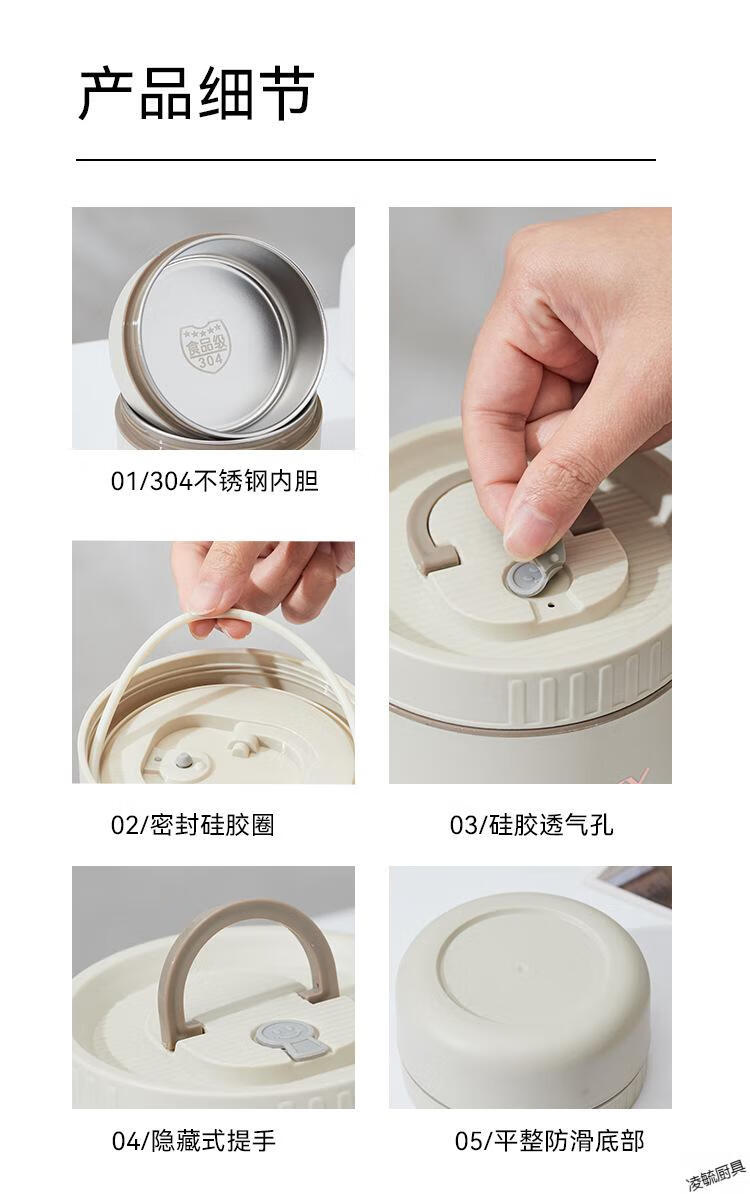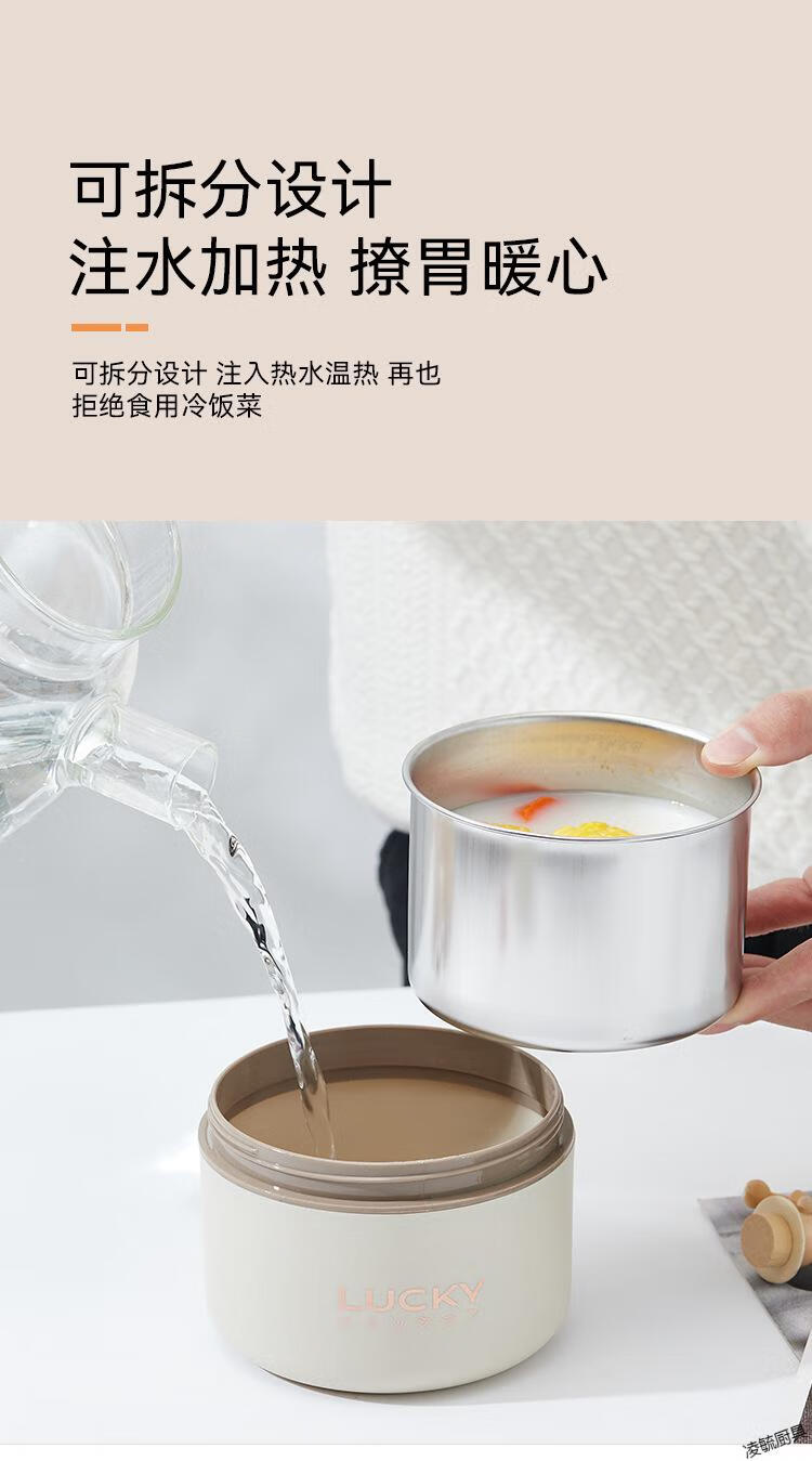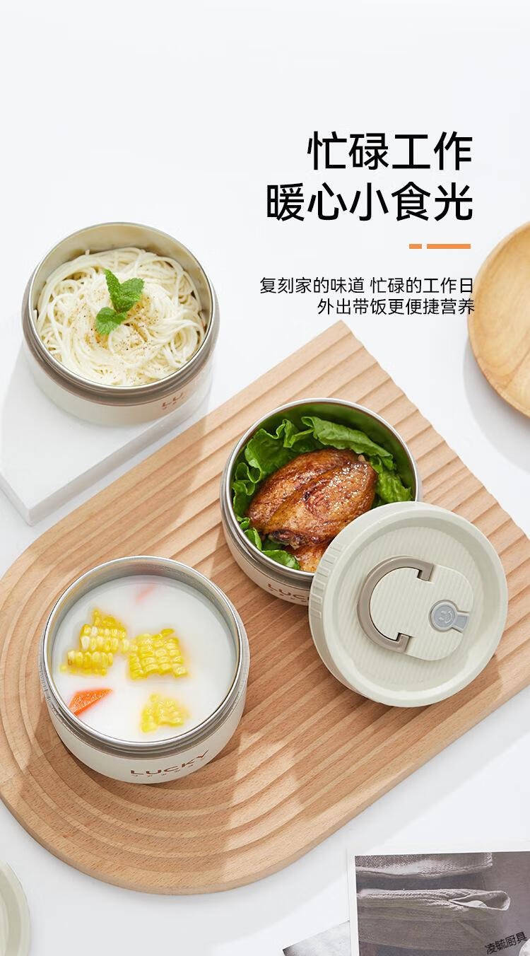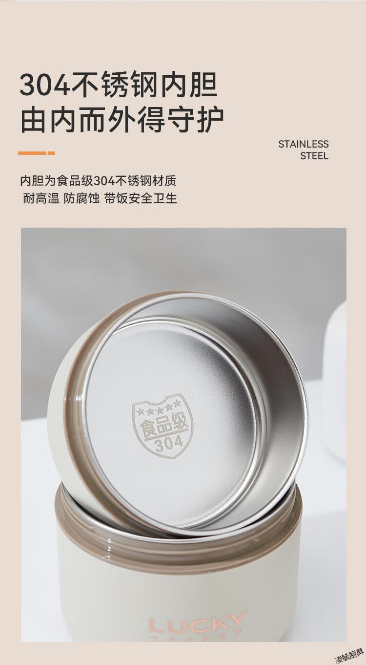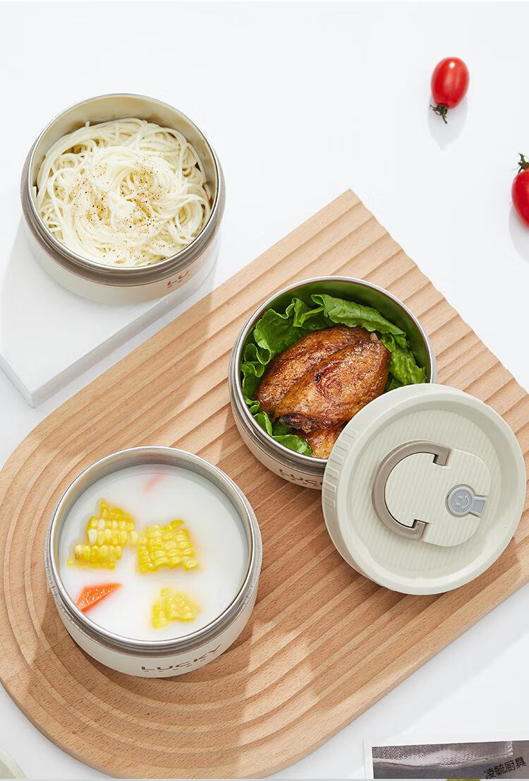 Tuojin imported quality insulated lunch box from Germany for office workers, sealed and leak-proof multi-layered lunch box for students with independent portions 304 1 large 1 small + tableware + bag beige