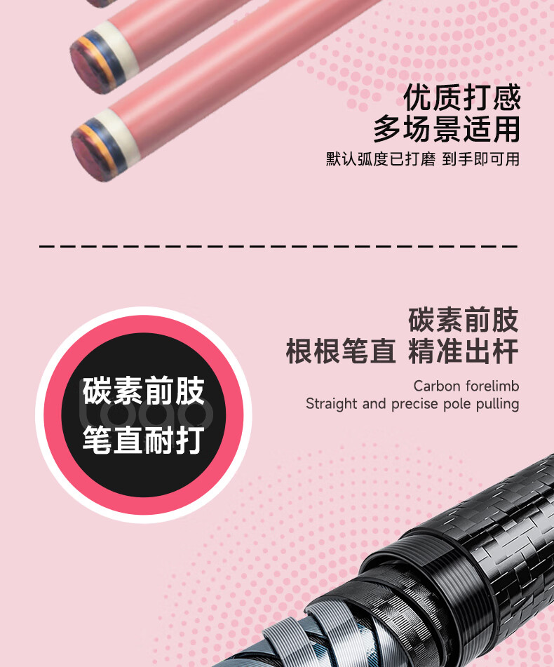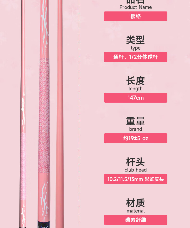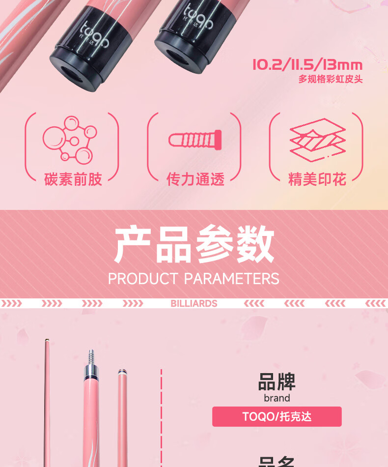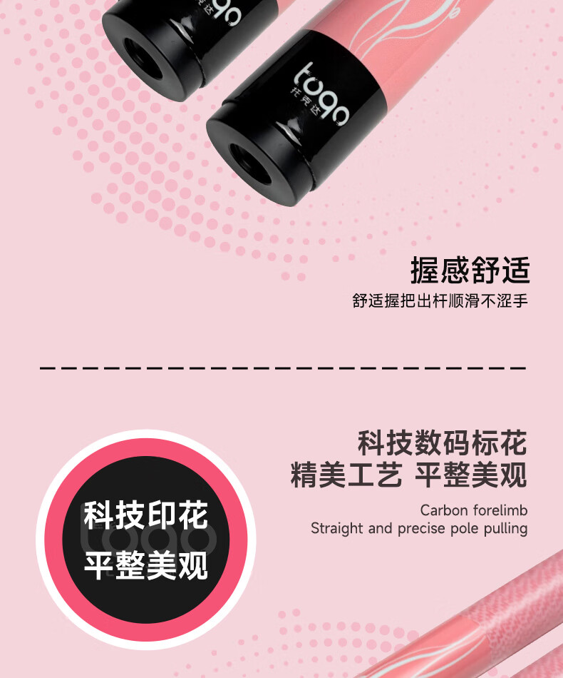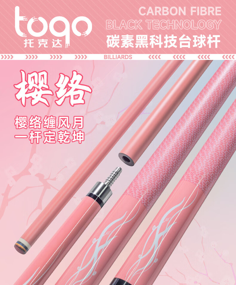 TOQO Yingluo billiard cue carbon fiber split rod big head technology snooker Chinese black 8 small head through rod color red Yingluo original cue box set - through rod small head