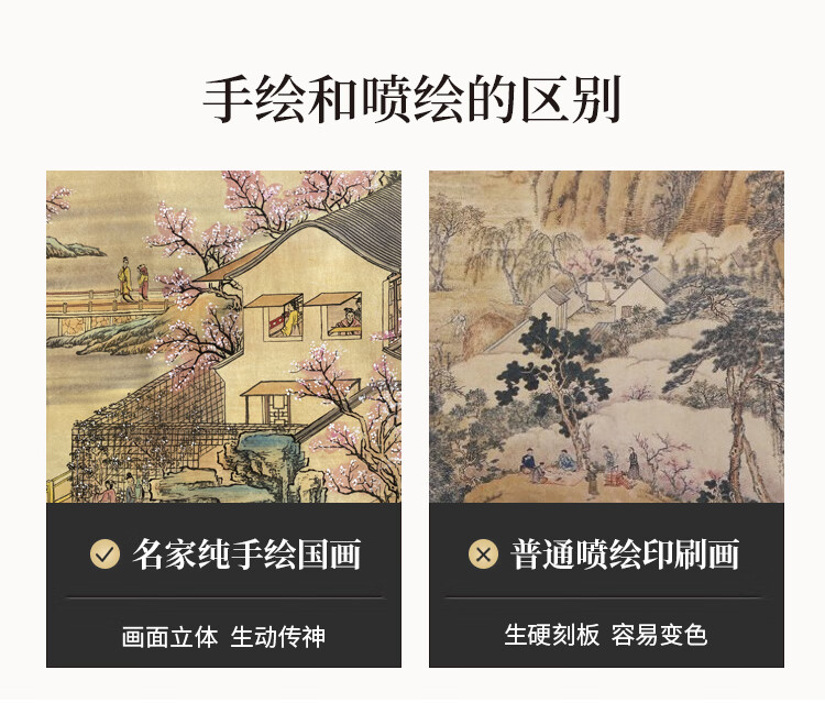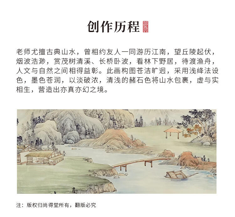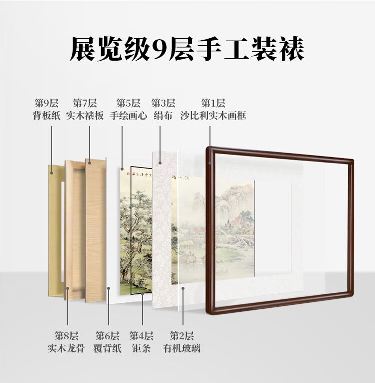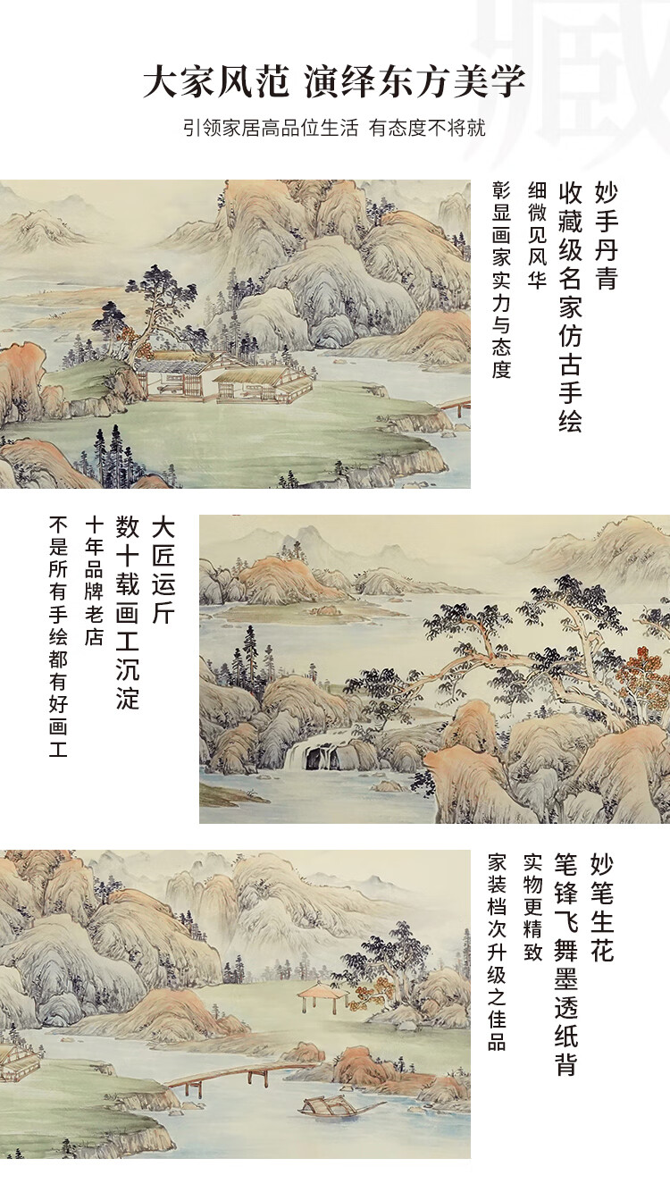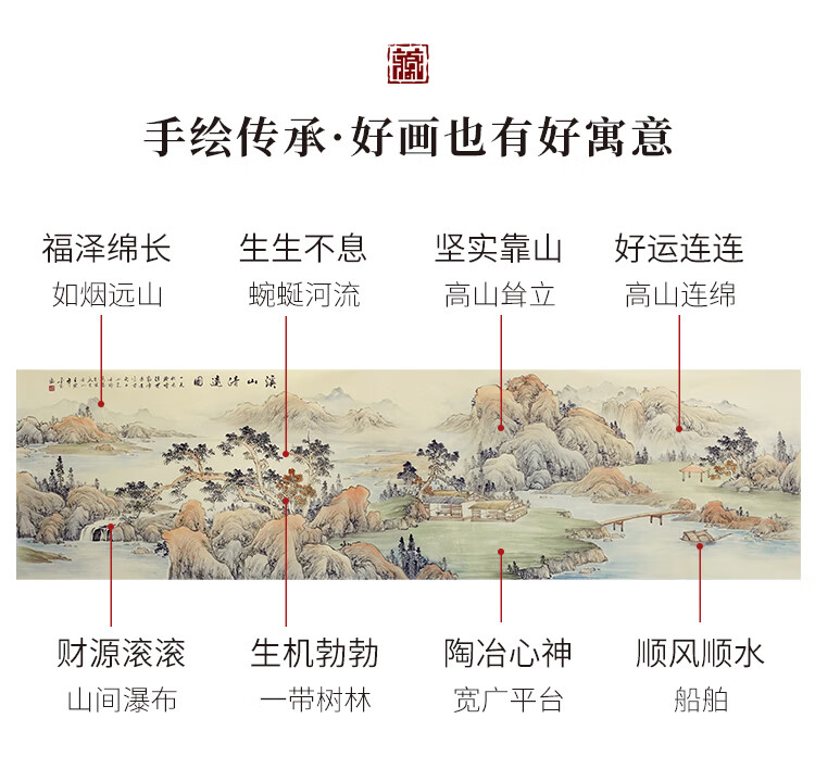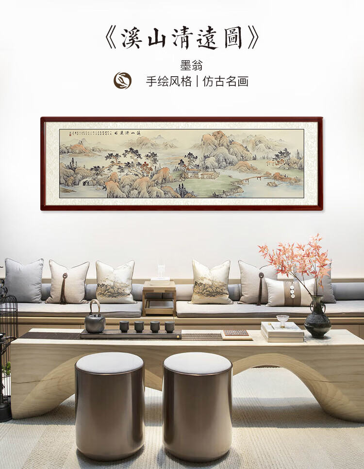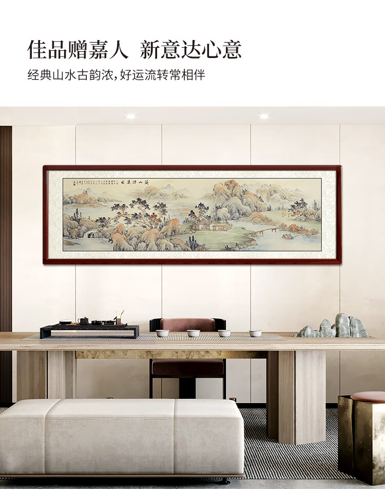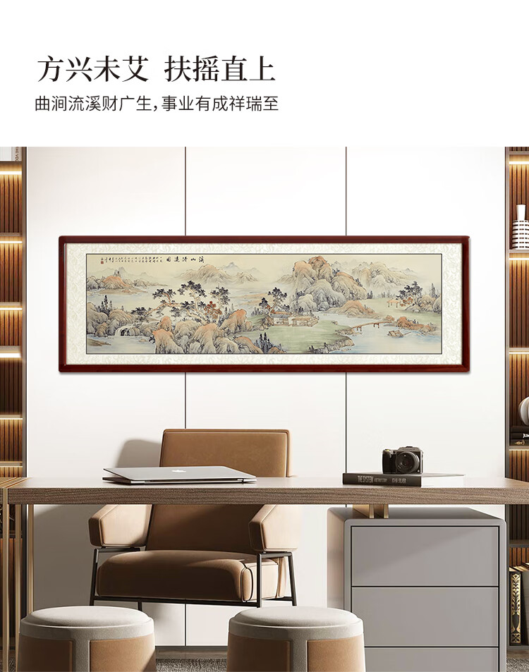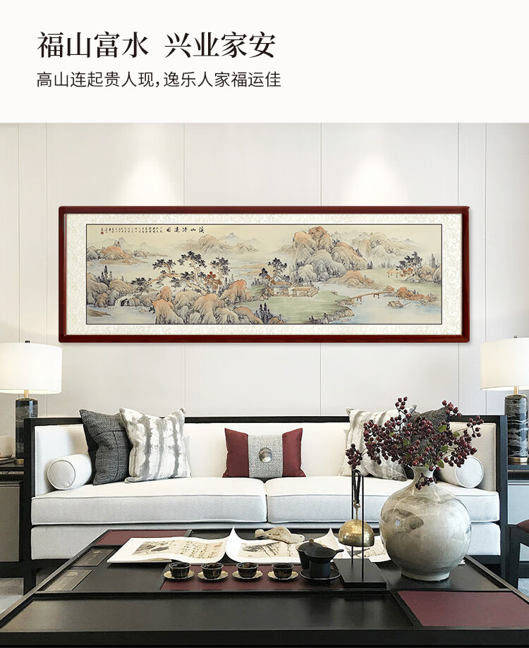 Shangdetang hand-painted Chinese painting landscape painting backing living room cornucopia ink painting office decoration painting streams and mountains Qingyuan map Sapele solid wood frame - rounded walnut color framed 216*66cm (recommended)
