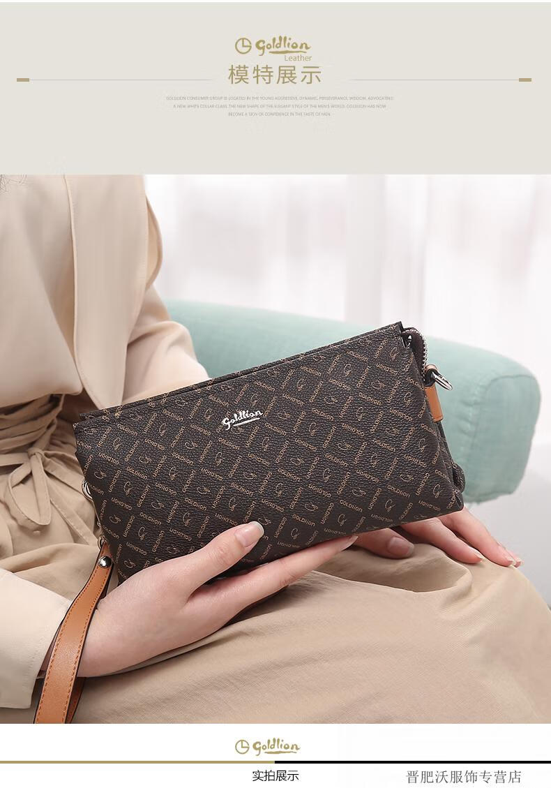 Goldlion Wallet Women's Clutch Bag Women's Bag-Sense Gift for Mom 2025 New Handbag Beige Official