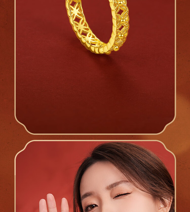 Saturday Fortune (ZLF) Gold Ring Women's Pure Gold 5G Gold Women's Hollow Ring Priced No. 14-2.65g