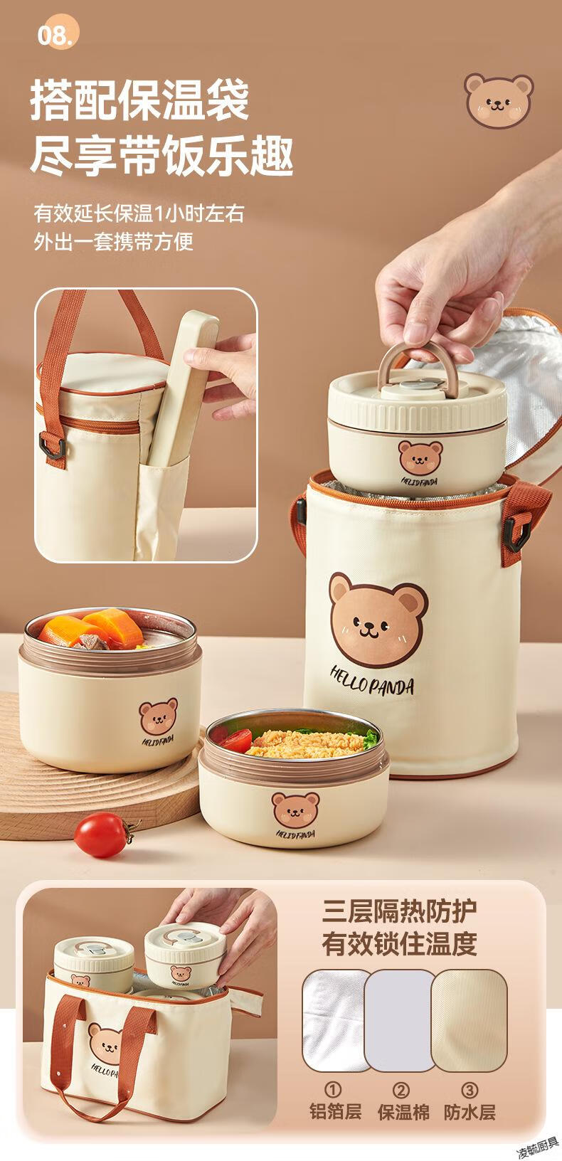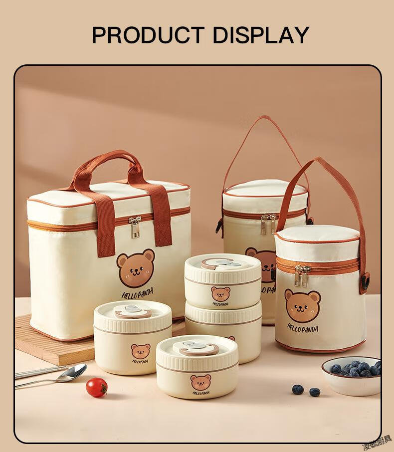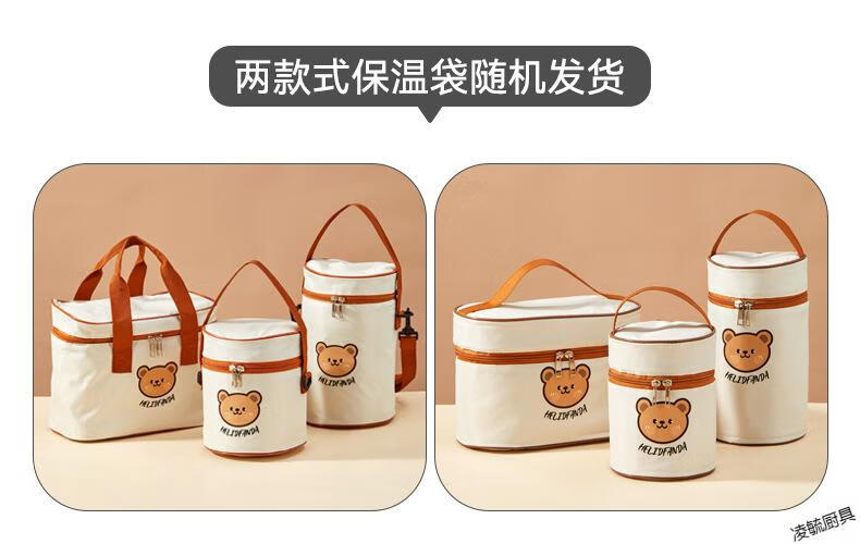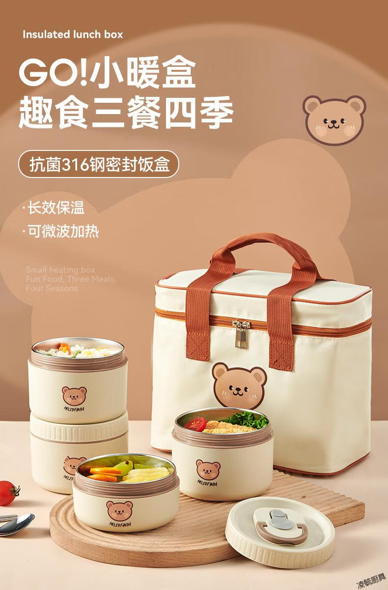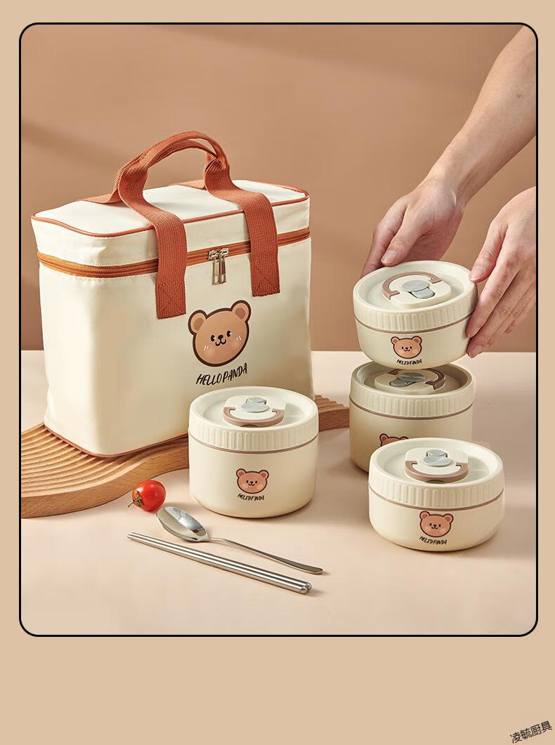 Tuojin imported quality 316 stainless steel insulated lunch box from Germany, microwave heated double-layer lunch box for students and office workers, 316 off-white - 1 small + soup bowl bag + portable tableware (