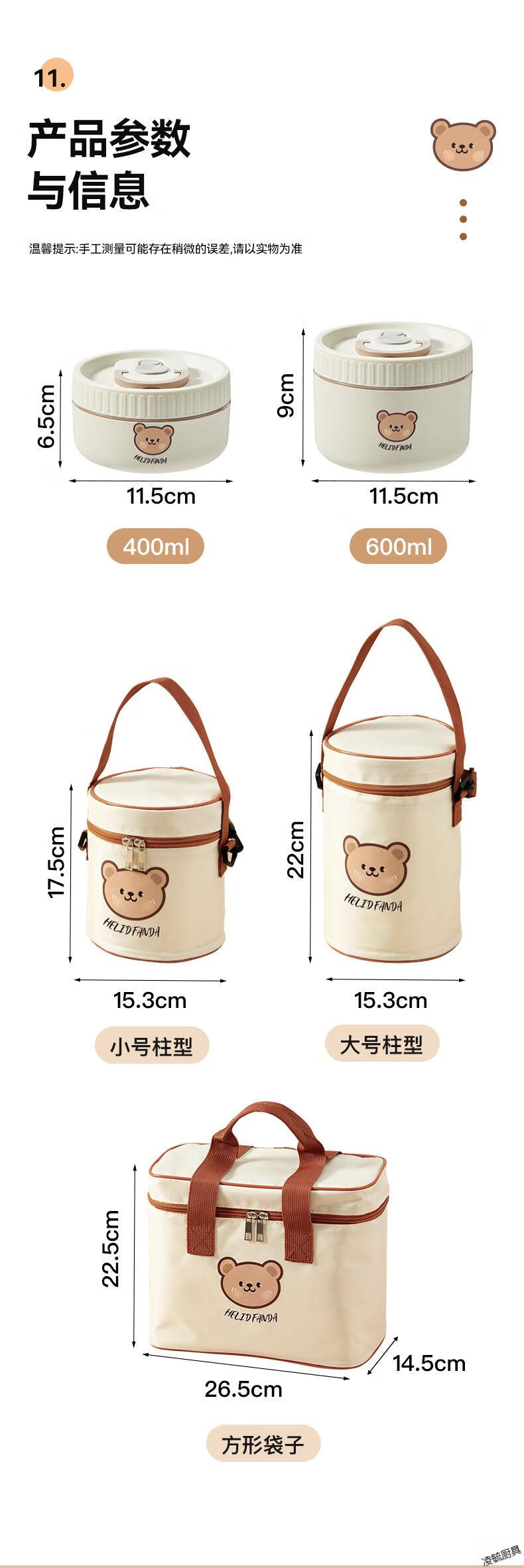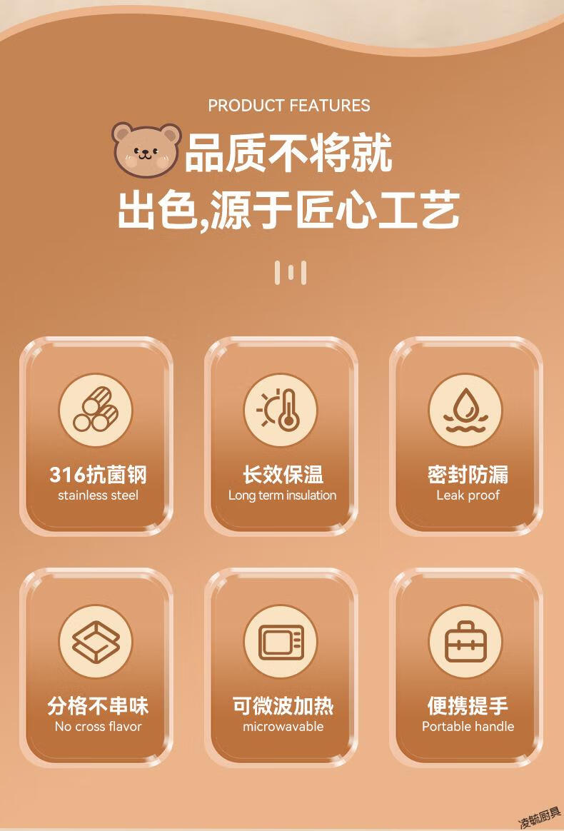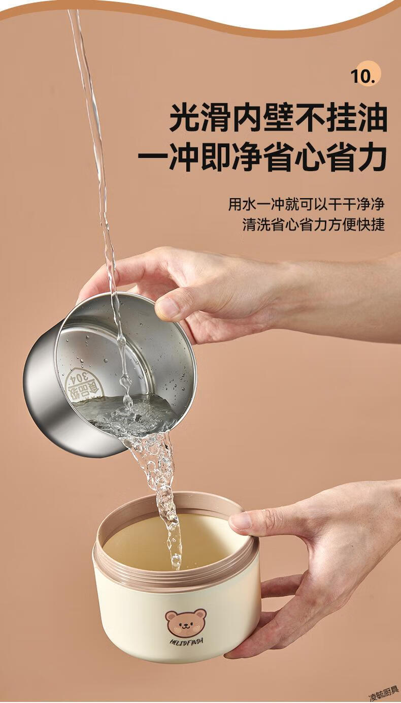 Tuojin imported quality 316 stainless steel insulated lunch box from Germany, microwave heated double-layer lunch box for students and office workers, 316 off-white - 1 small + soup bowl bag + portable tableware (