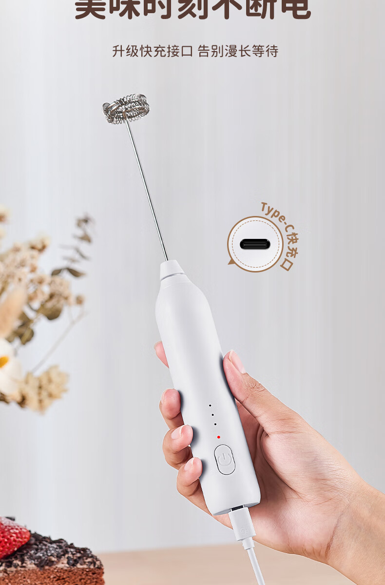 Royalstar electric milk frother, household milk frother, small egg beater, coffee frother, cream whipper, handheld mixer, black - upgraded double spring - long battery life, three-speed speed adjustment