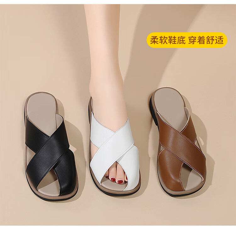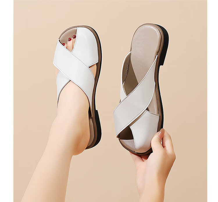 Big brand manufacturer slippers women's outer wear slippers non-slip soft sole versatile light luxury mother white VBXS28063 41