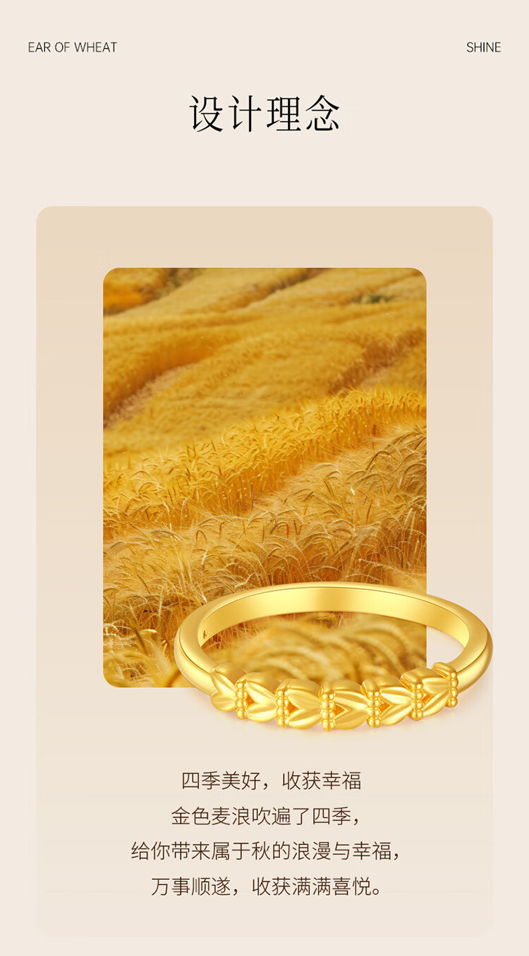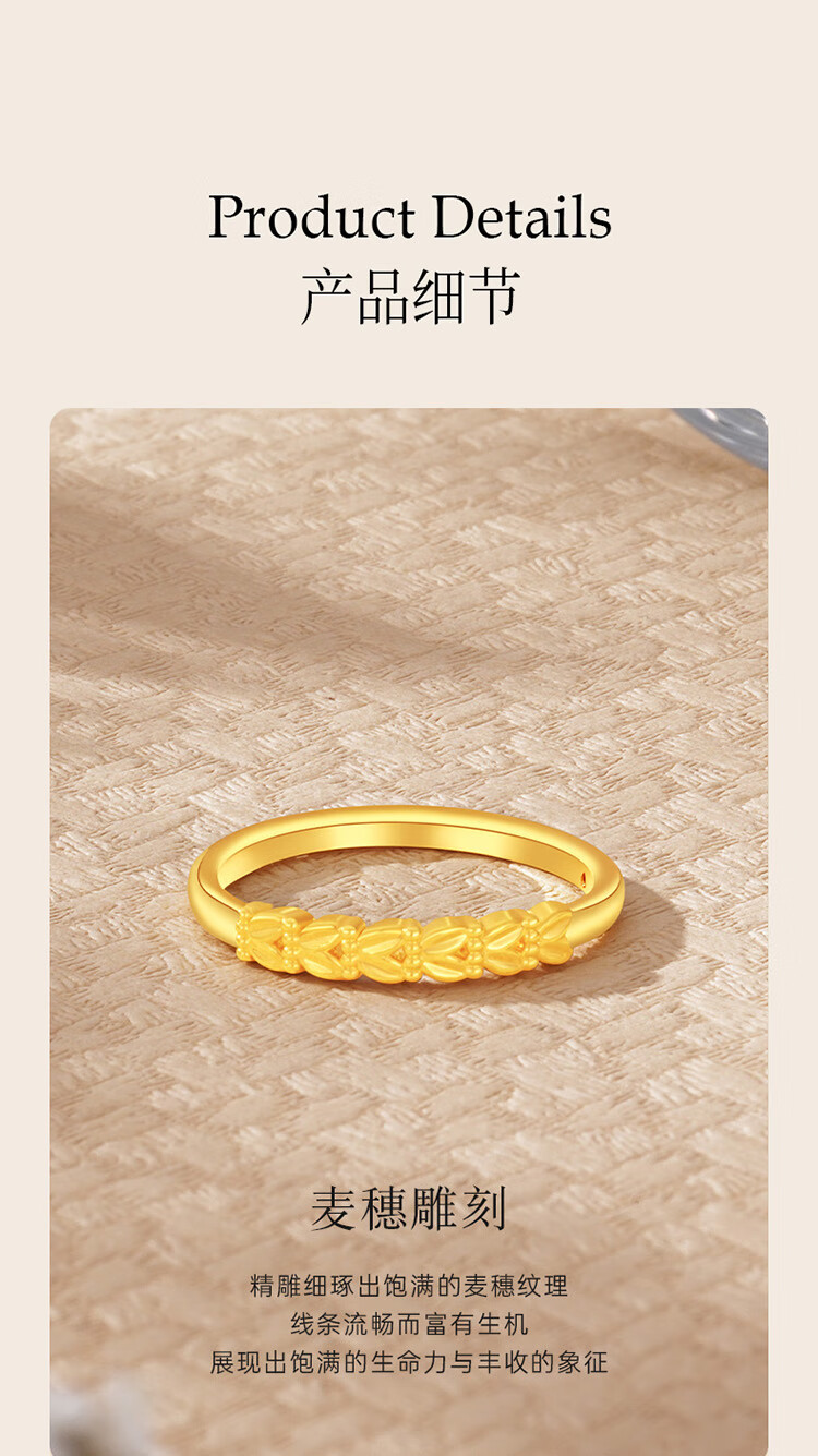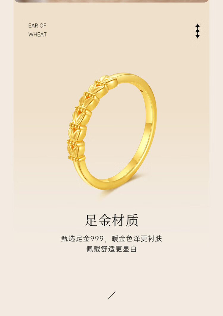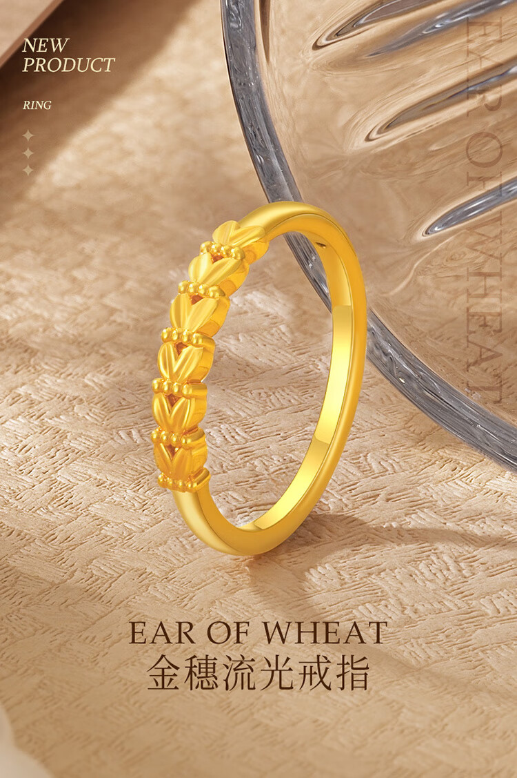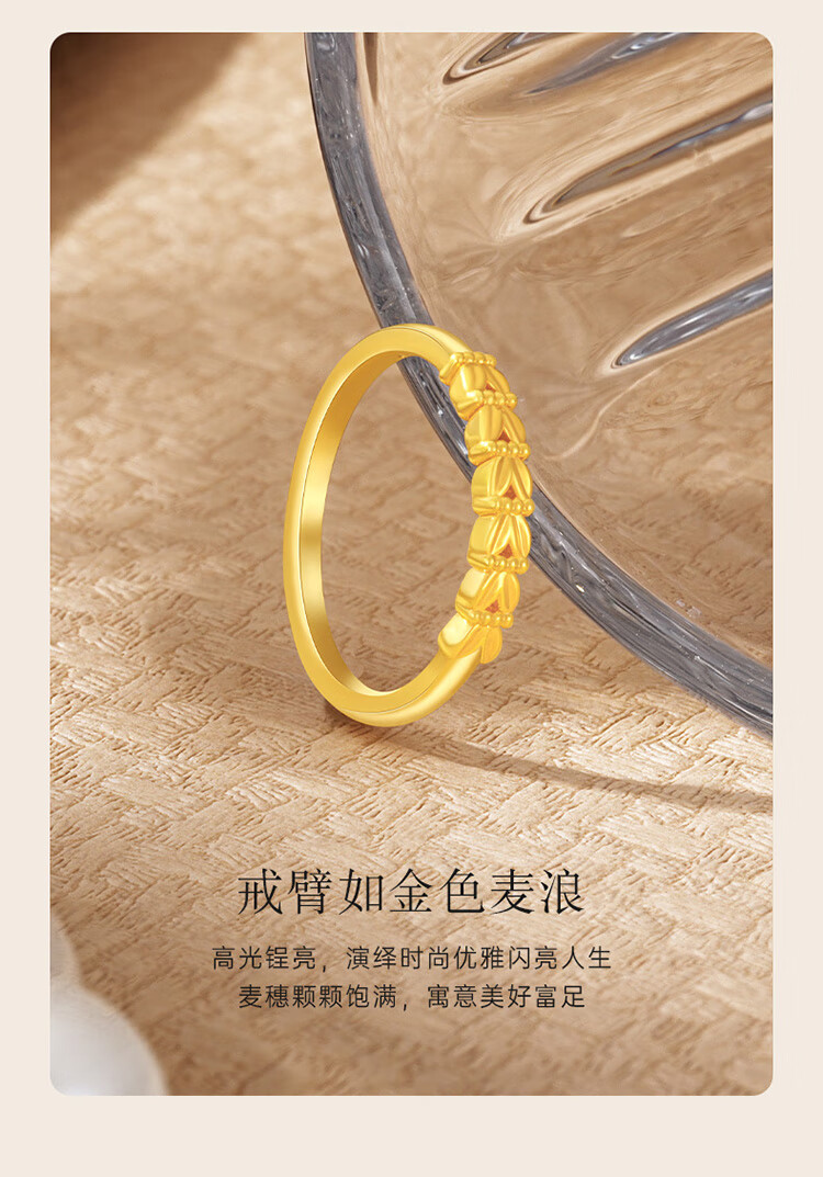 Water shell gold pure gold 999 pure gold wheat ear ring gold ring birthday gift for elders for parents pure gold wheat ear ring 12 rings gold weight about 1 gram + more refund less compensation
