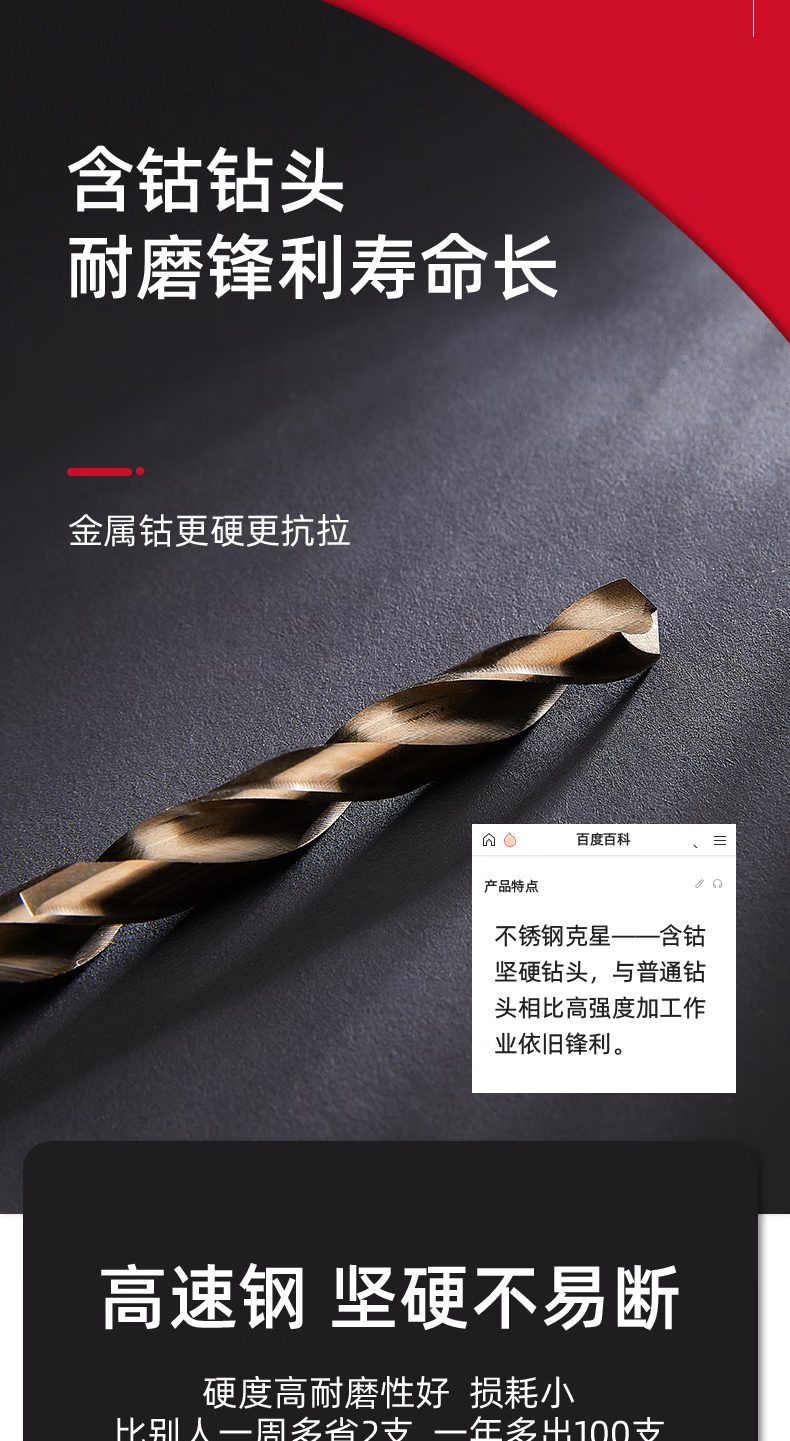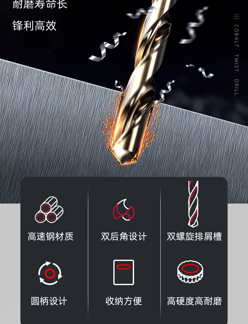 German precision stainless steel special drill bit, high hardness, cobalt-containing twist drill 304 high-strength hole punching set, ultra-durable 2-8mm (7 pieces in total)