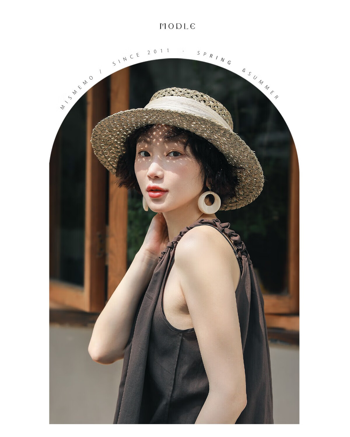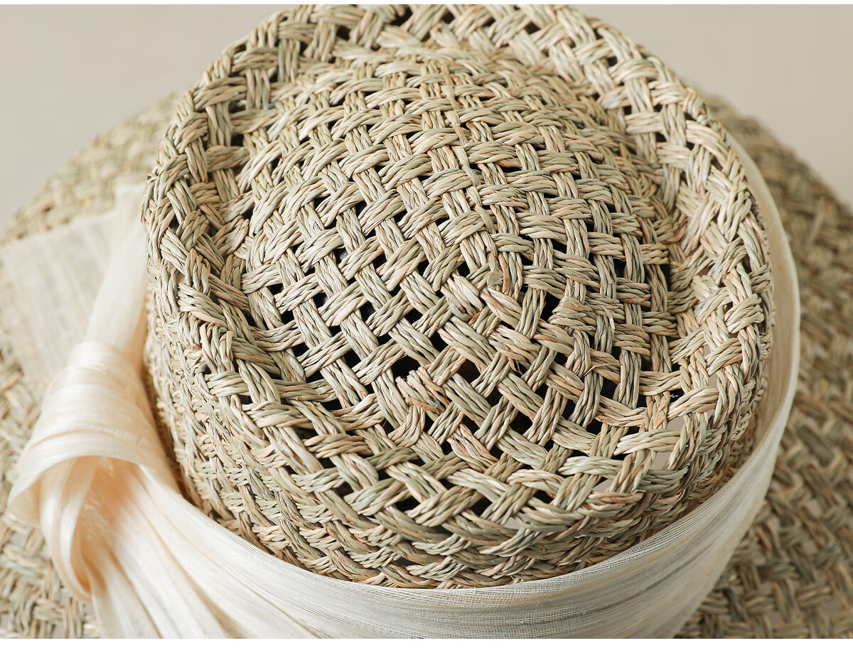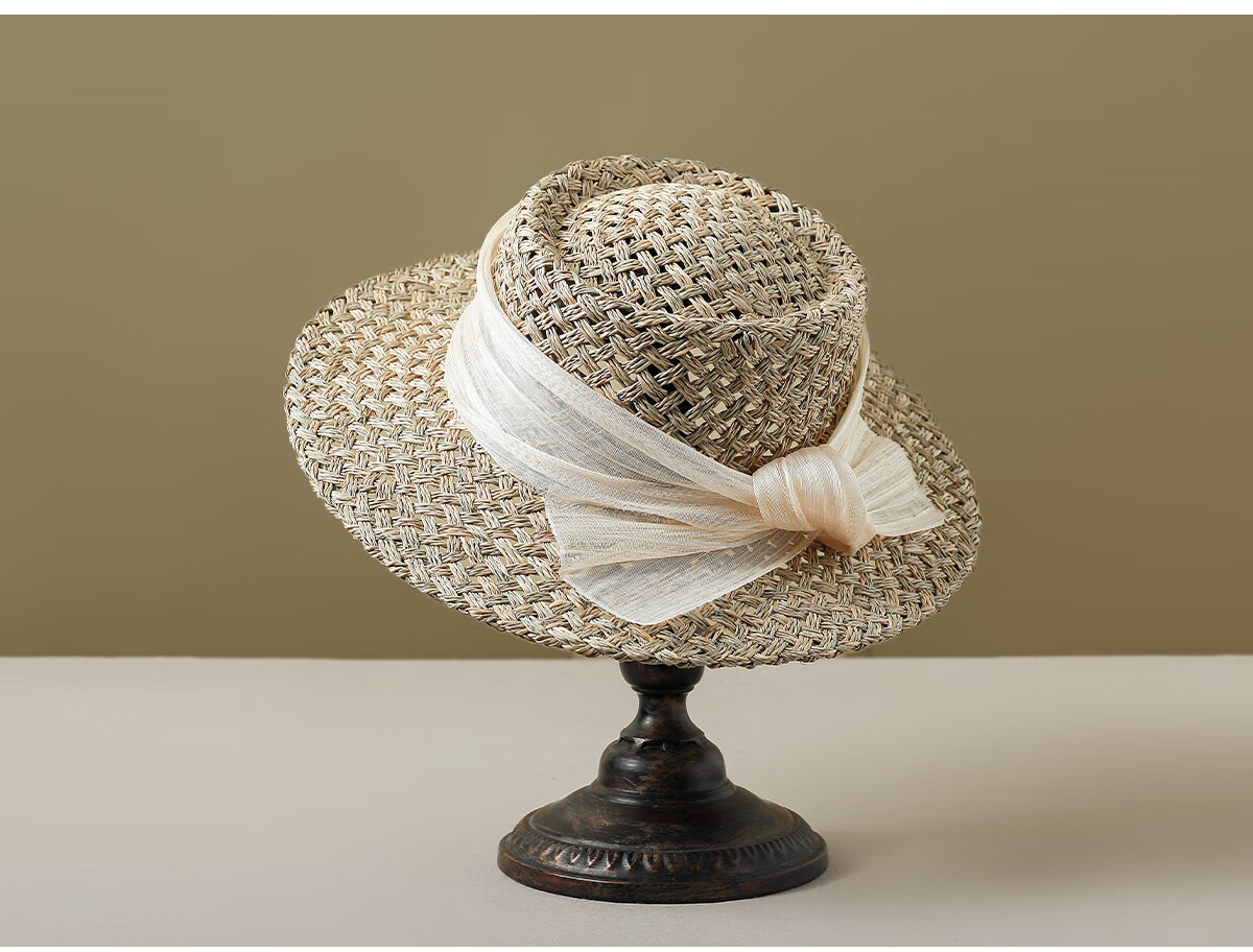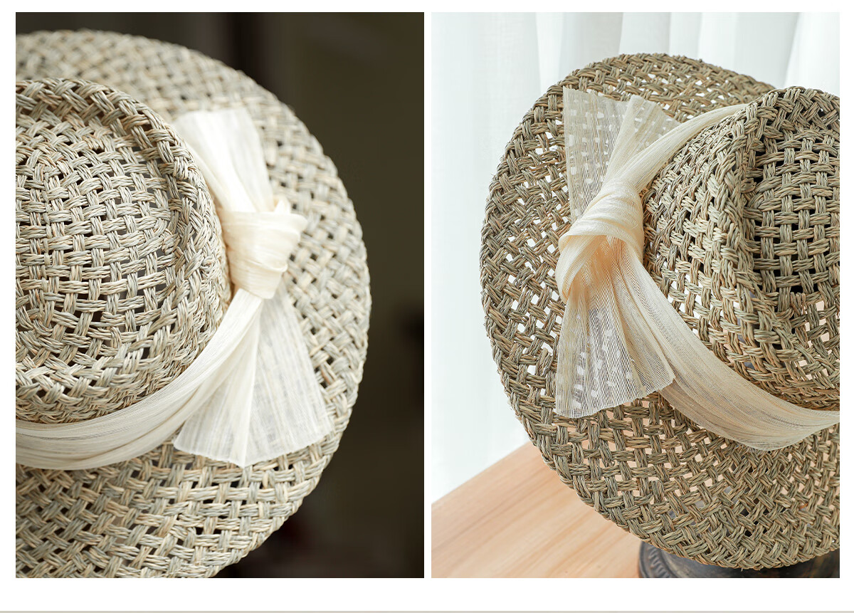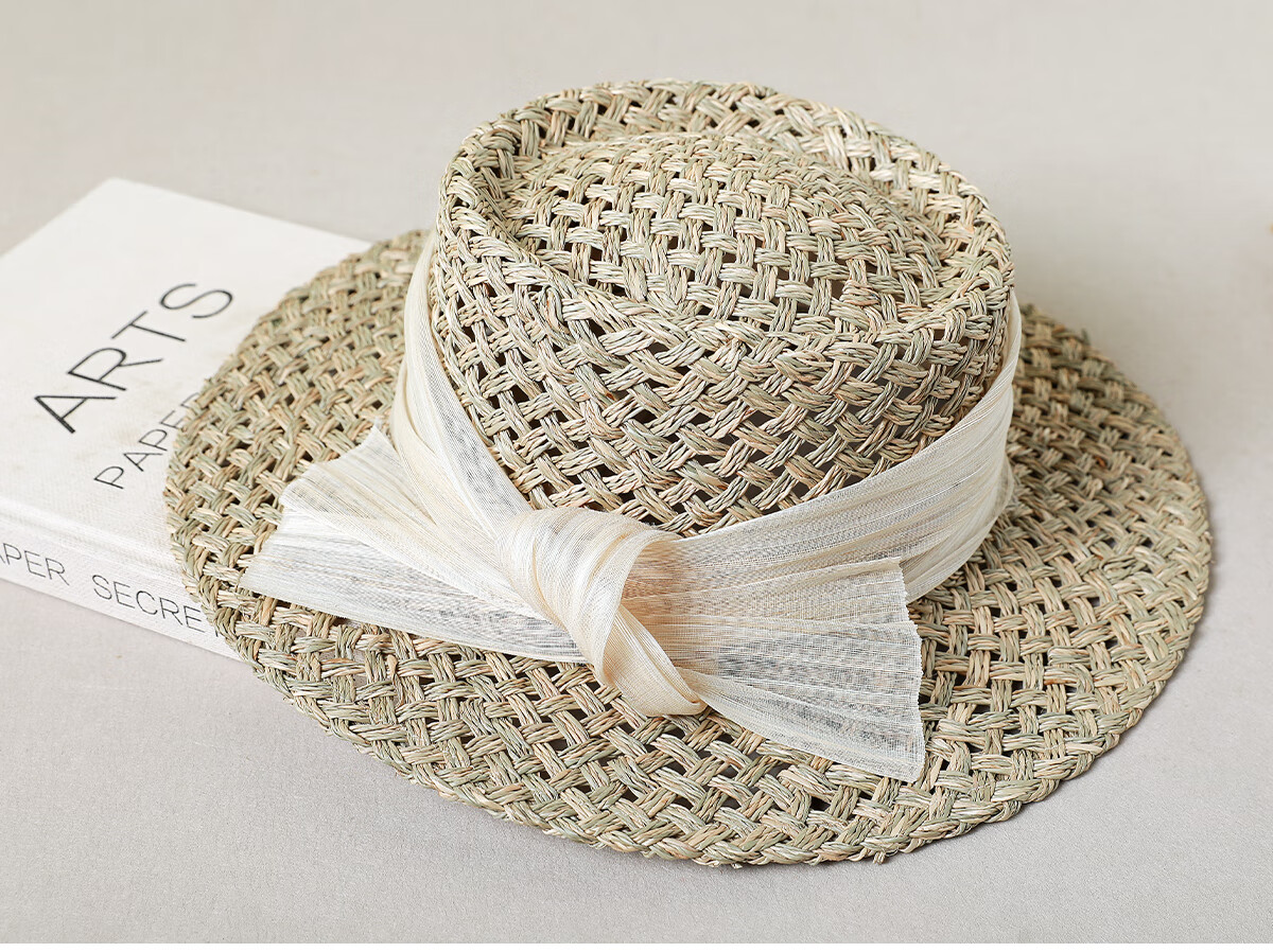 MISMEMO French holiday straw hat for women 2025 new spring and summer hollow saltwater straw travel flat brim sun hat, straw brown color