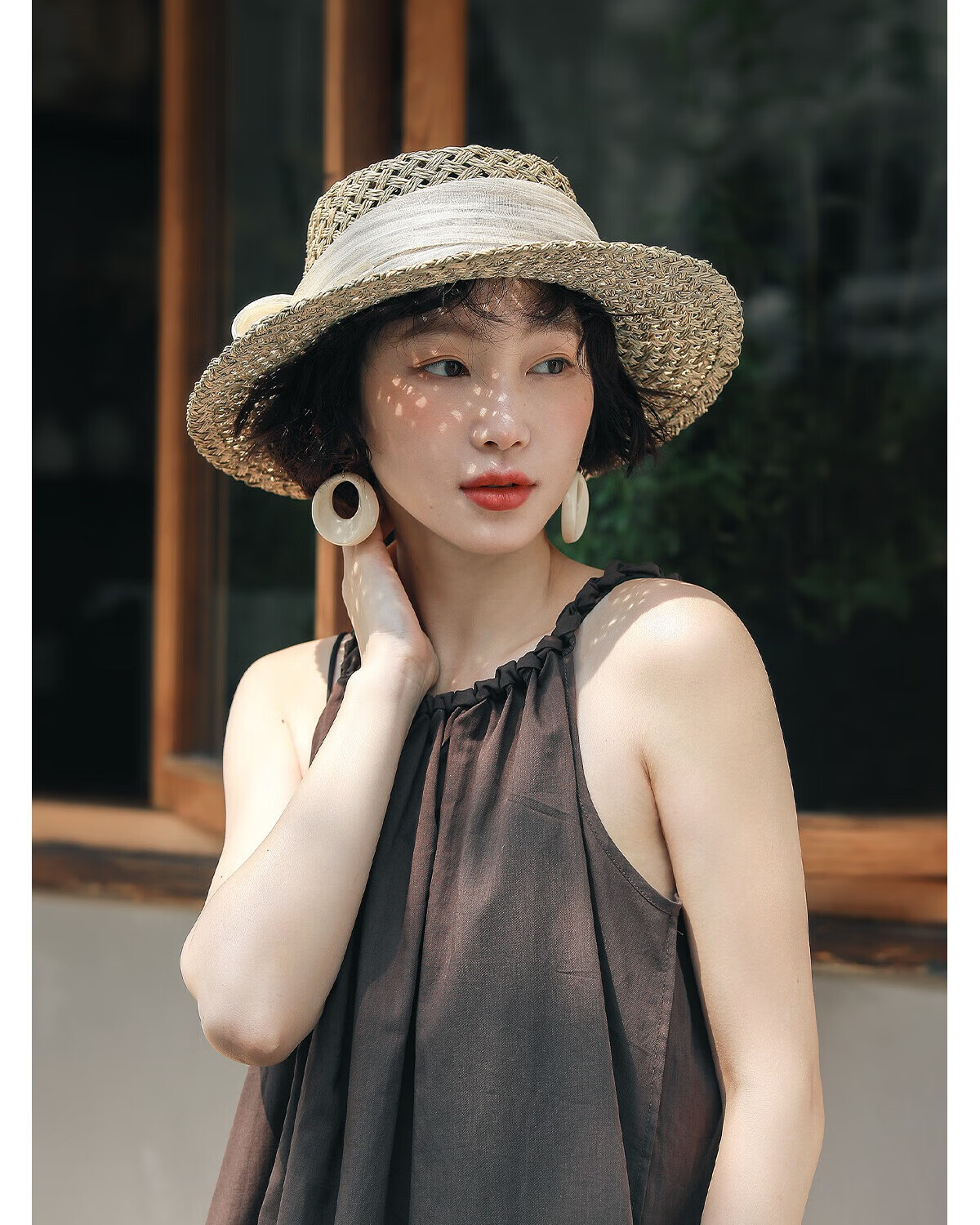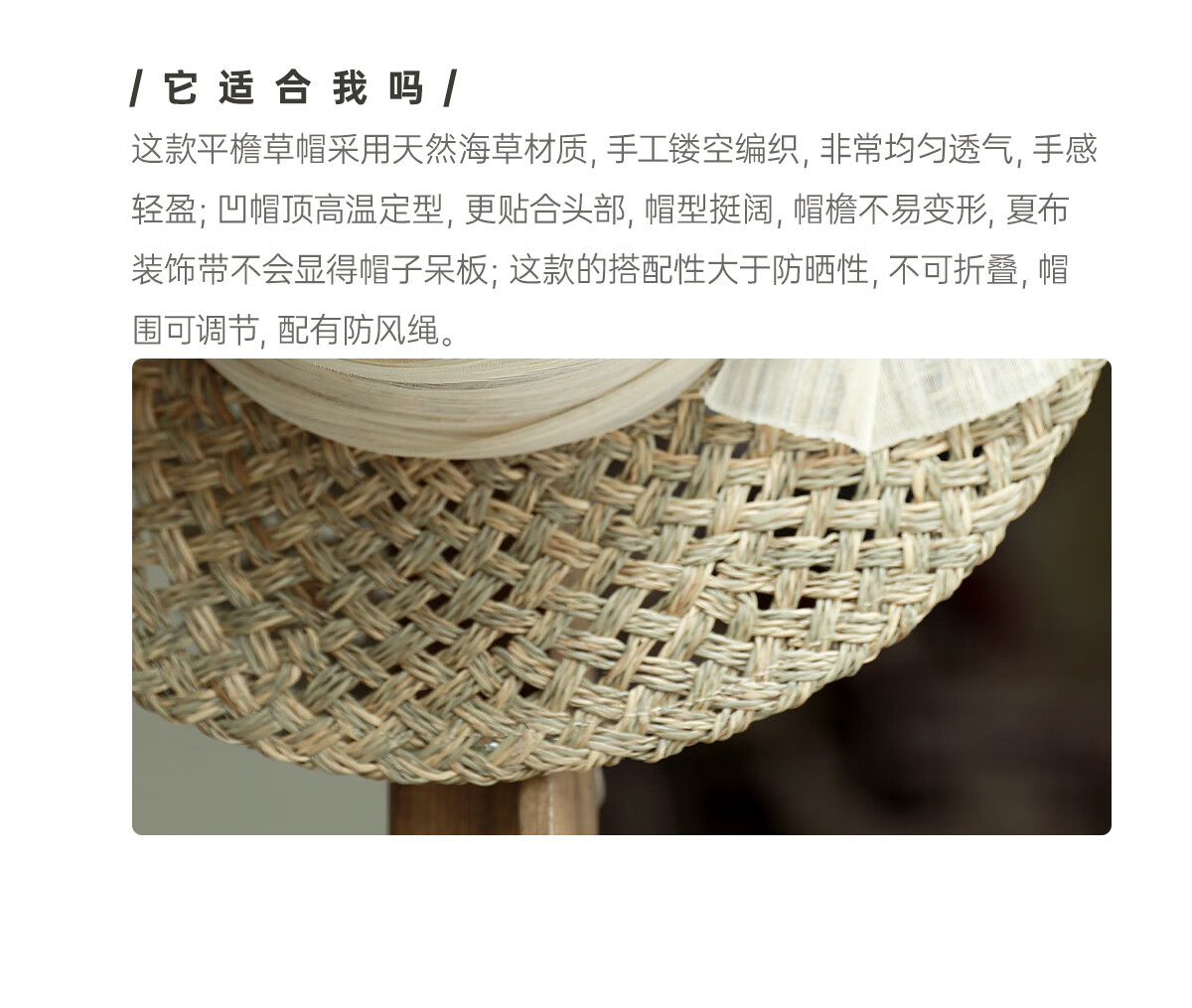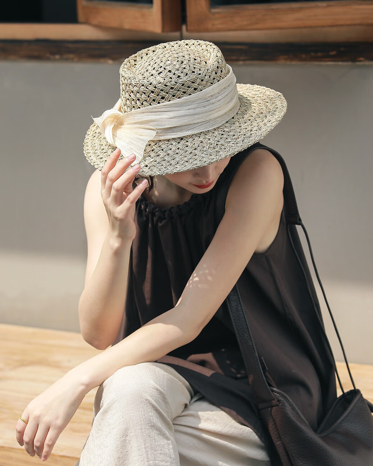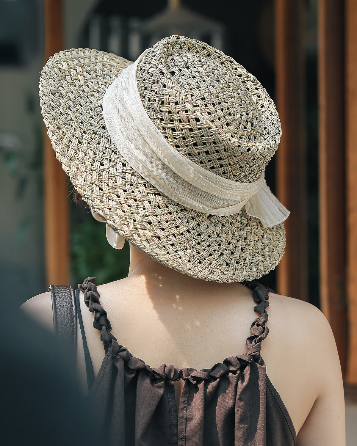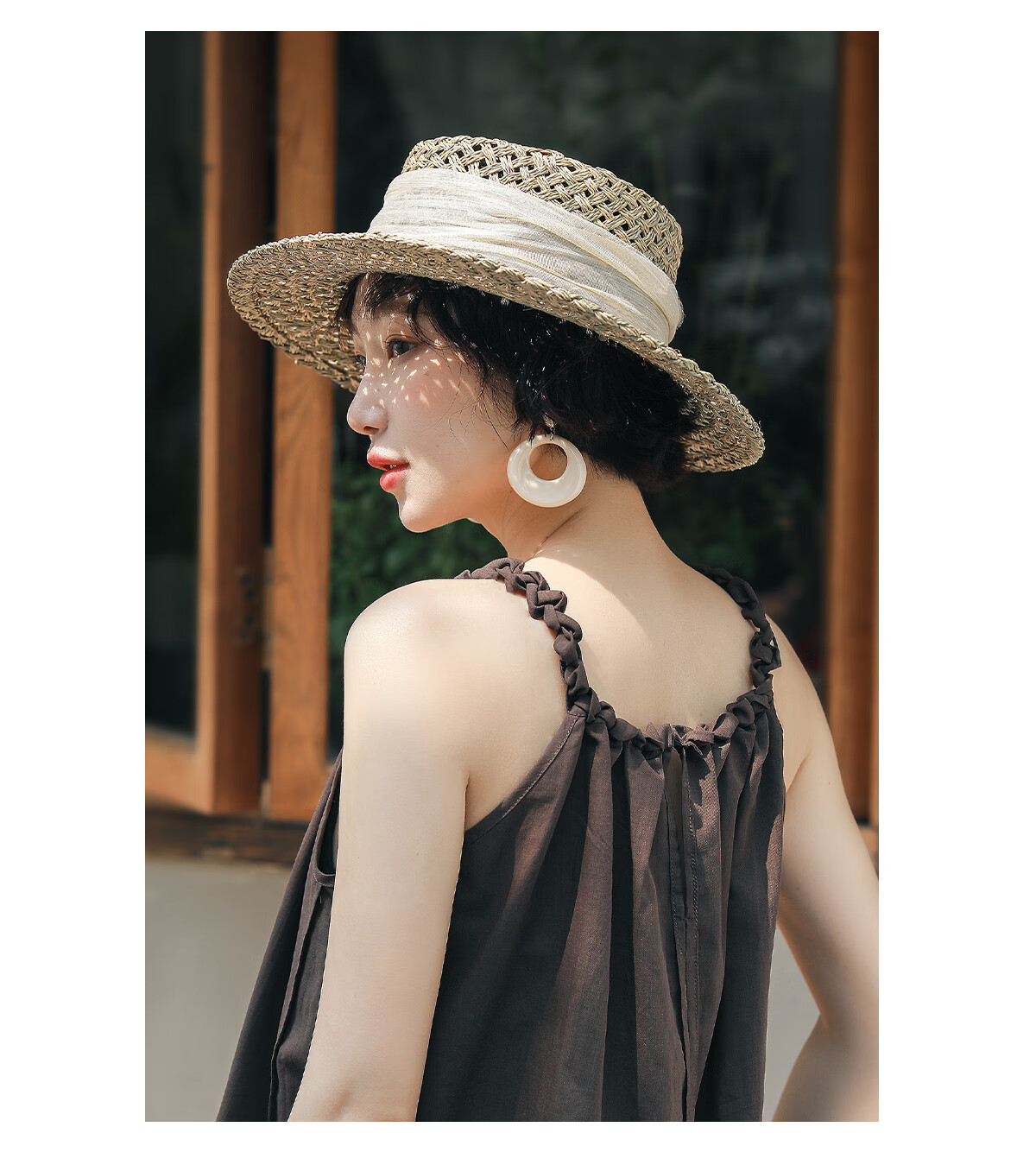 MISMEMO French holiday straw hat for women 2025 new spring and summer hollow saltwater straw travel flat brim sun hat, straw brown color