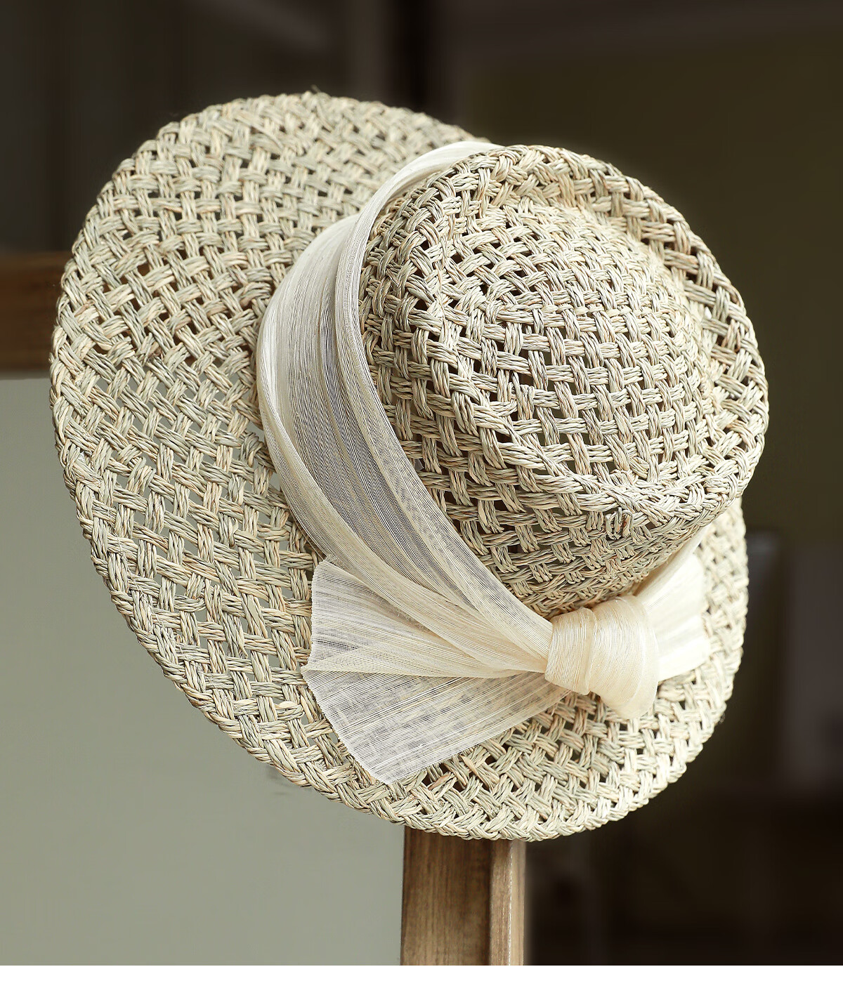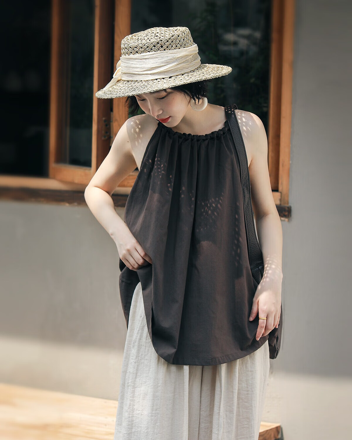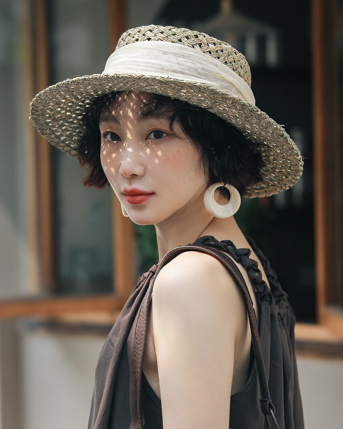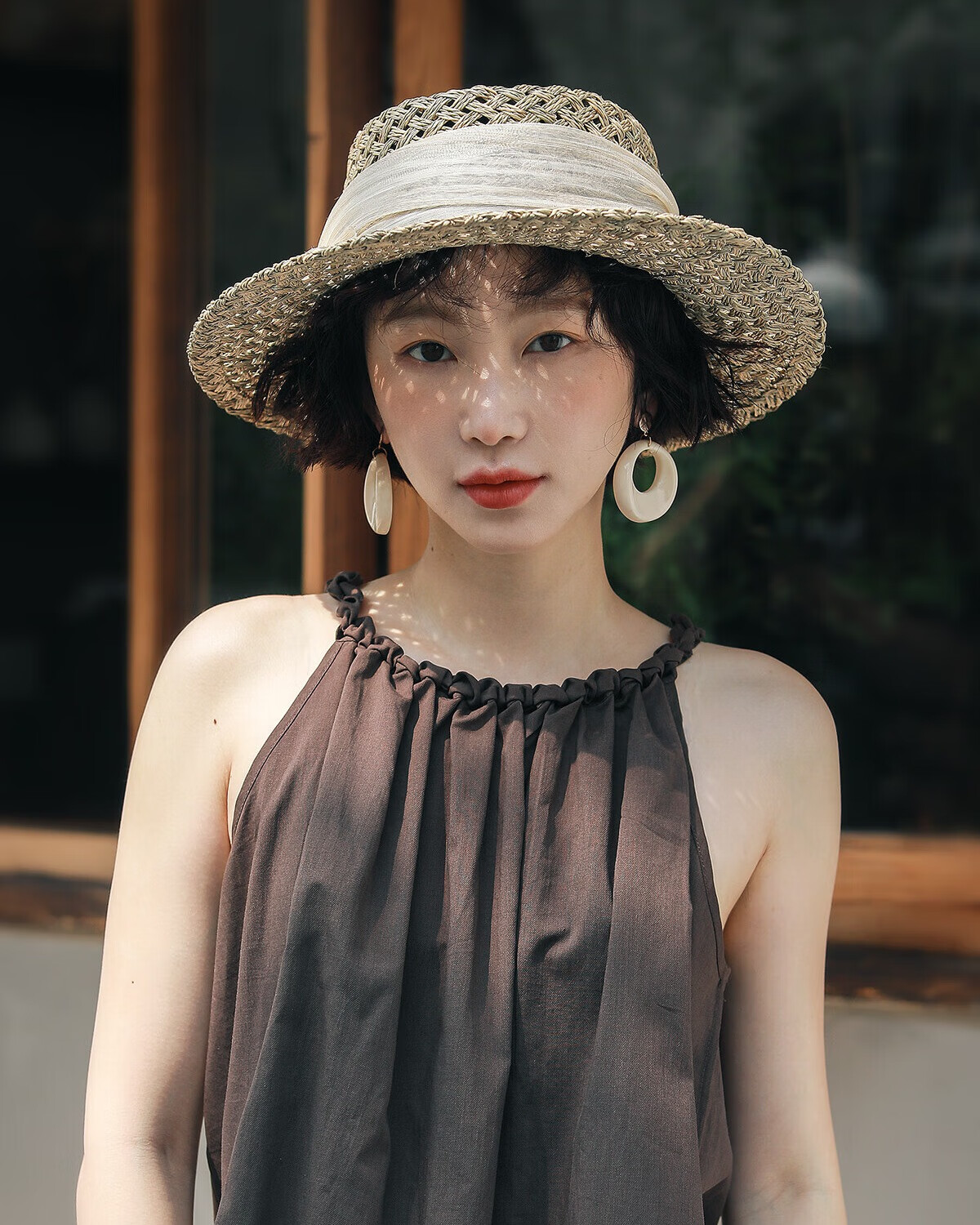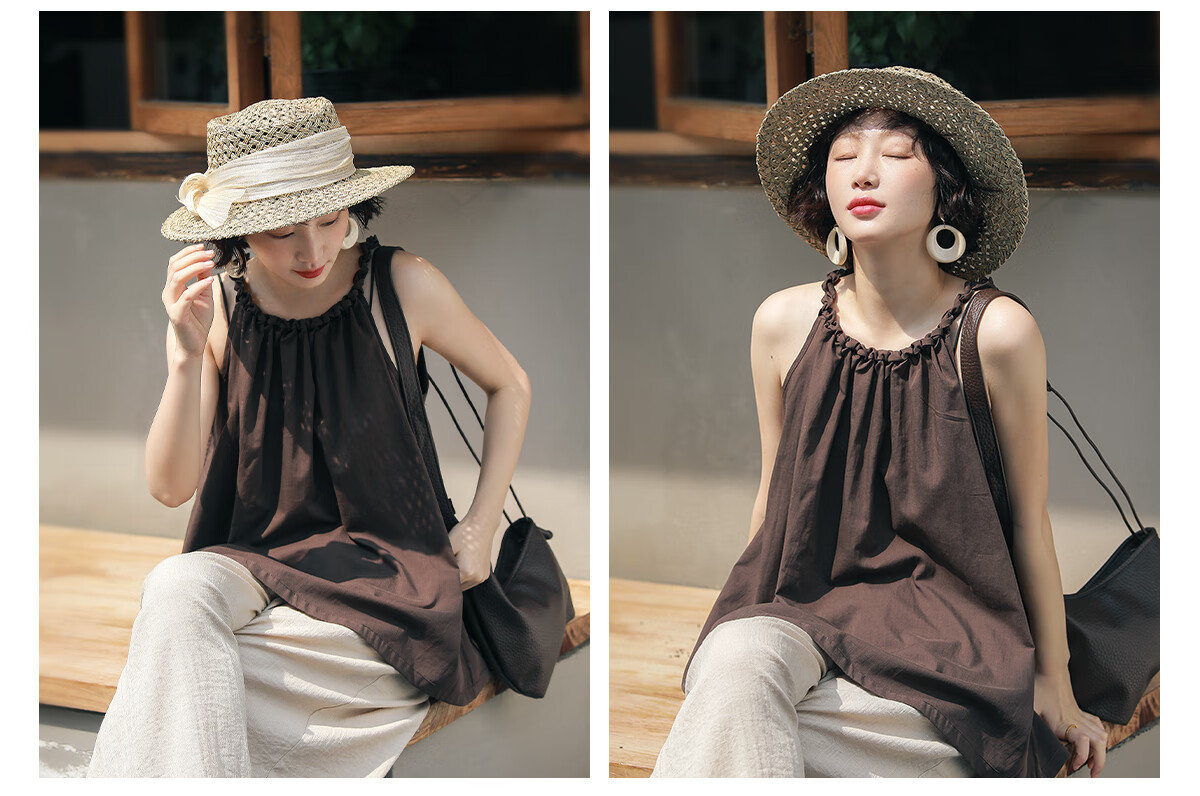 MISMEMO French holiday straw hat for women 2025 new spring and summer hollow saltwater straw travel flat brim sun hat, straw brown color