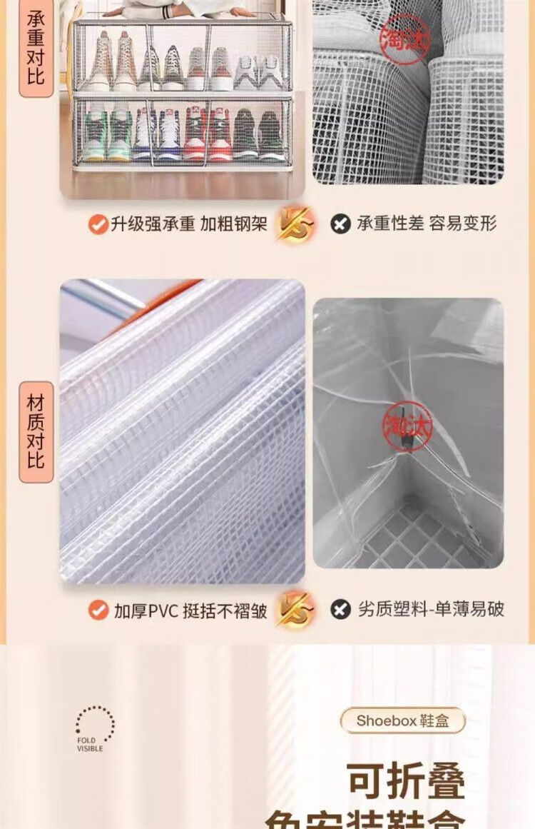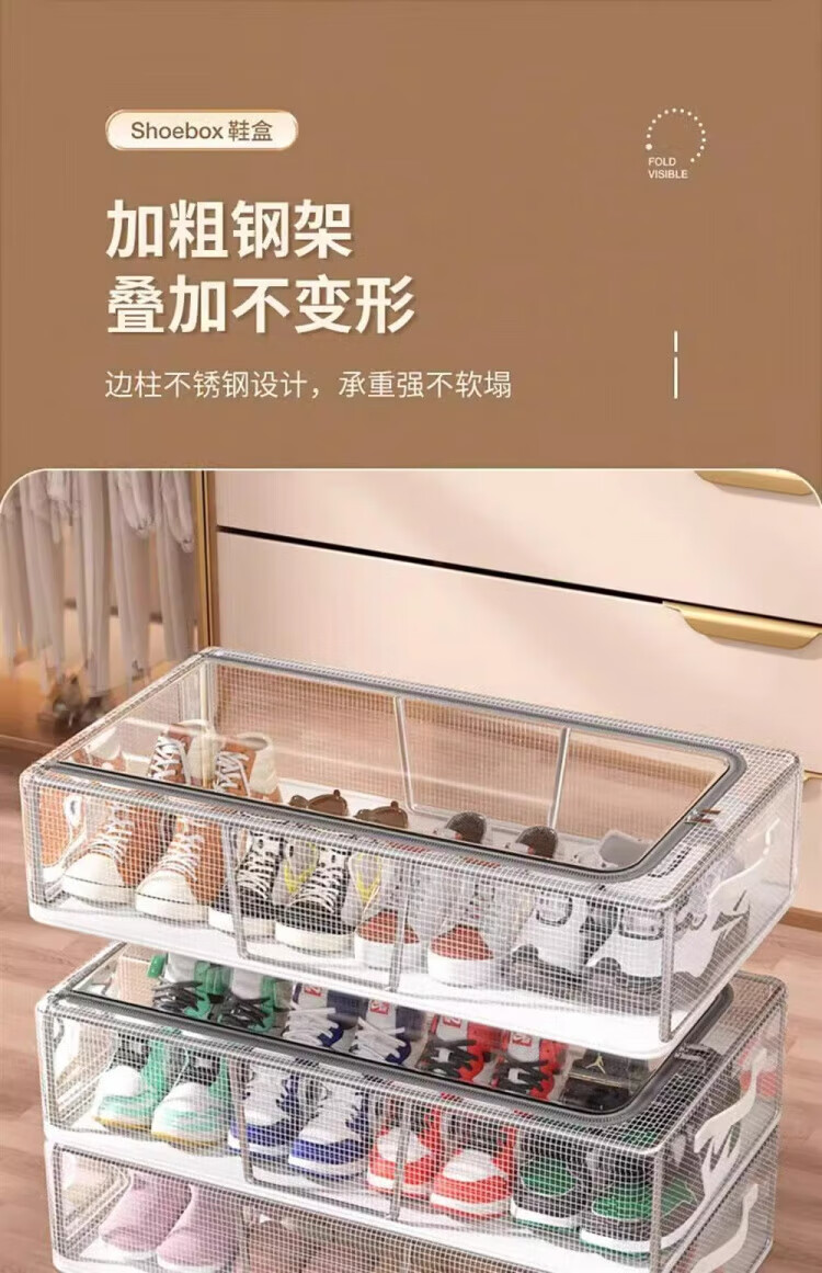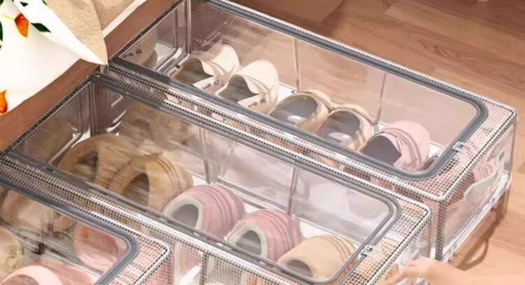 JCZS Japanese quality shoe box storage box transparent shoe storage artifact space-saving shoe cabinet support bed bottom foldable upgraded thickened medium size 1 pack can hold 3 pairs of shoes
