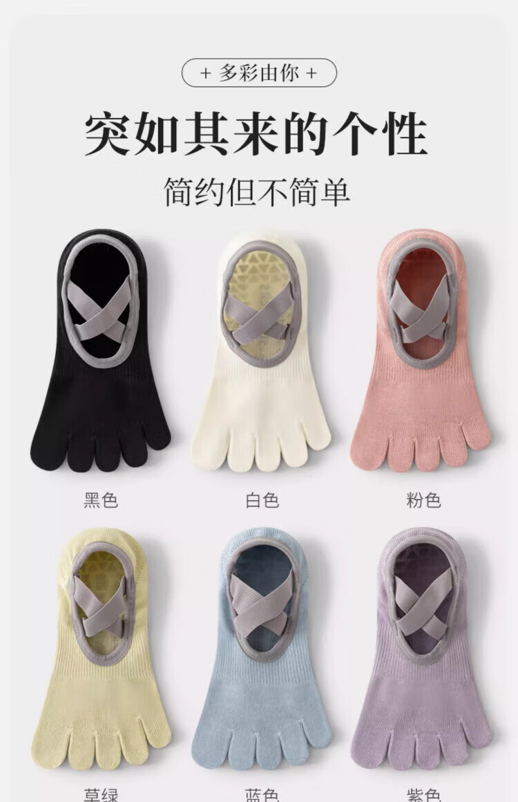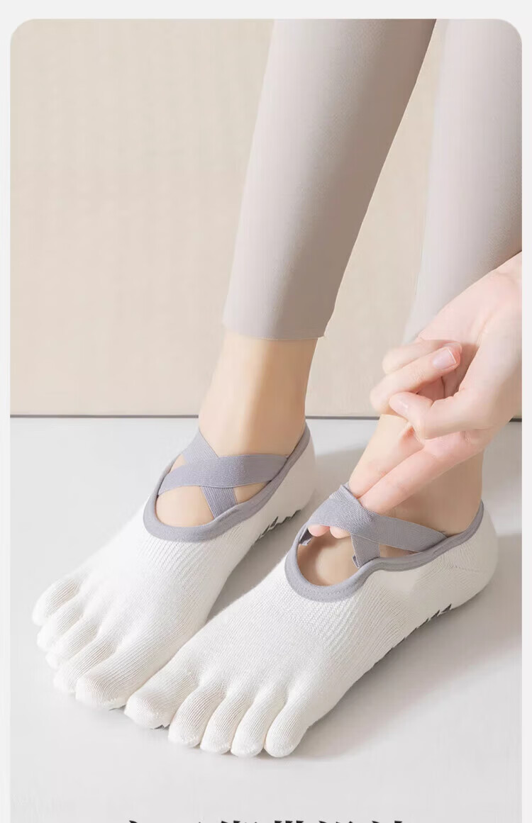 JCZS German Five Finger Yoga Socks Women's Summer Thin Non-Slip Adult Indoor Special Sports Dance Pilates 2 Pairs Pink + Blue