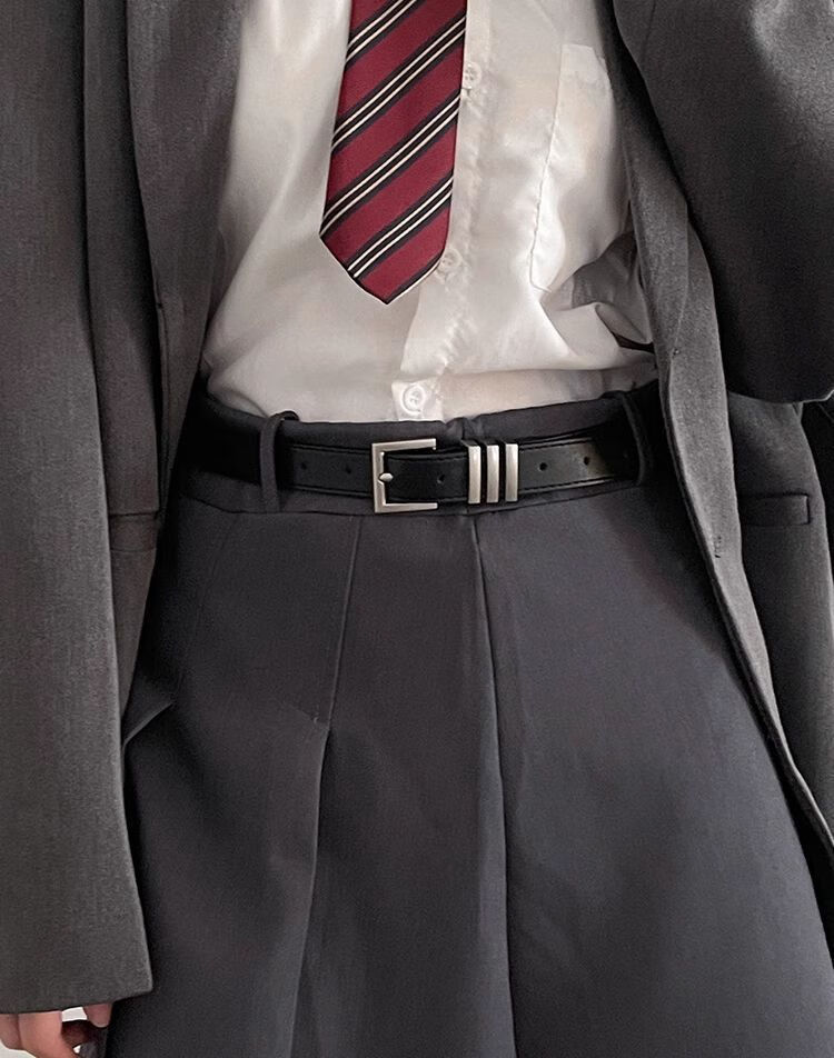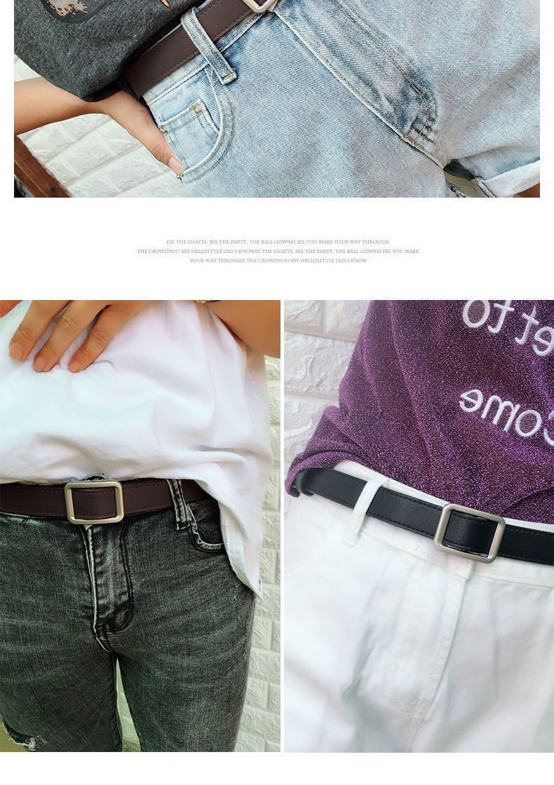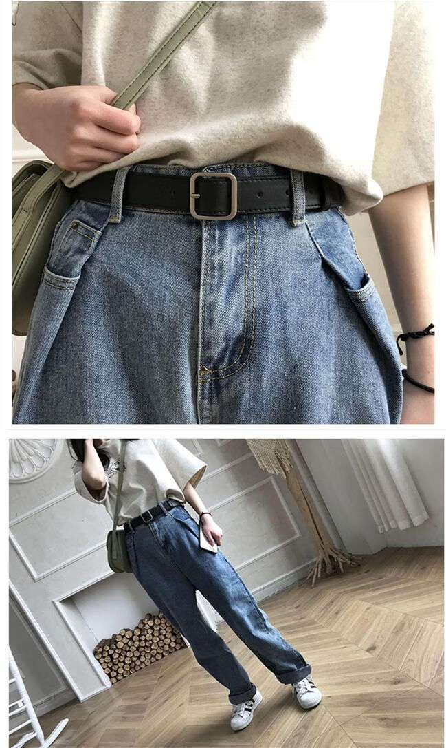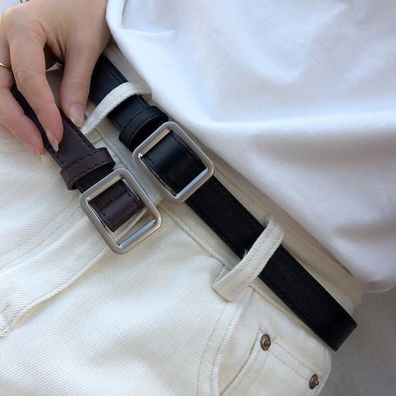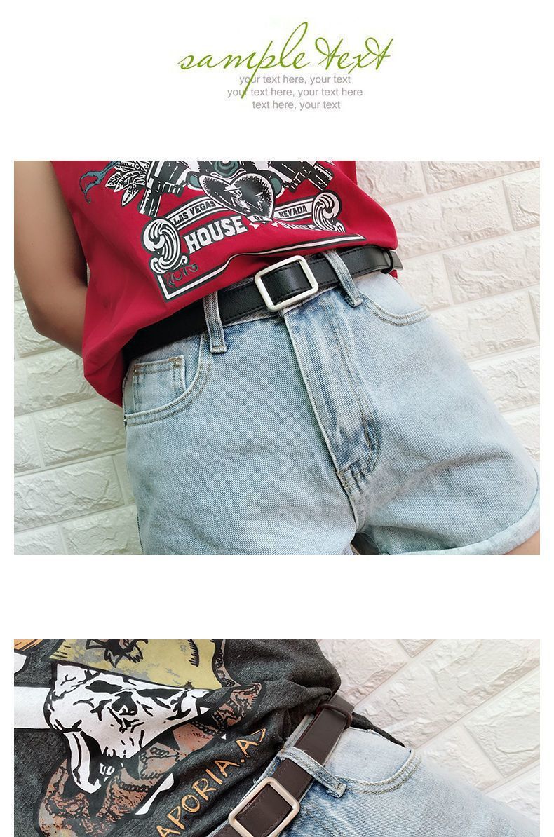 Yalso simple style square buckle belt unisex wide belt female Chic student fashion ins belt versatile black seam edge-Japanese buckle black