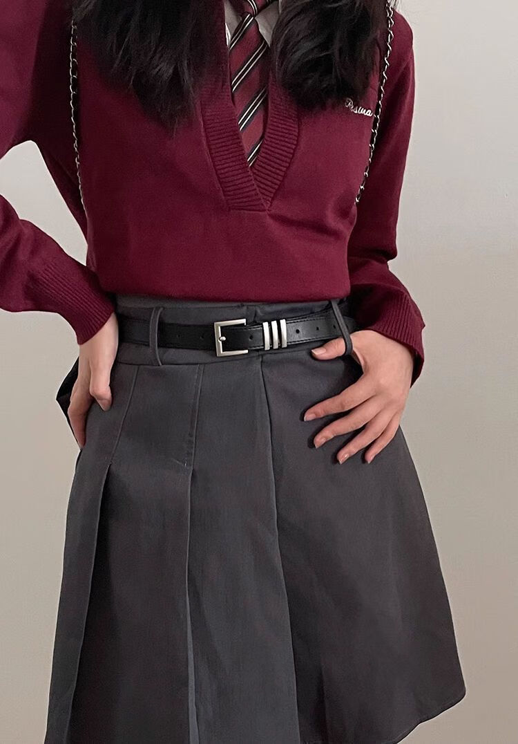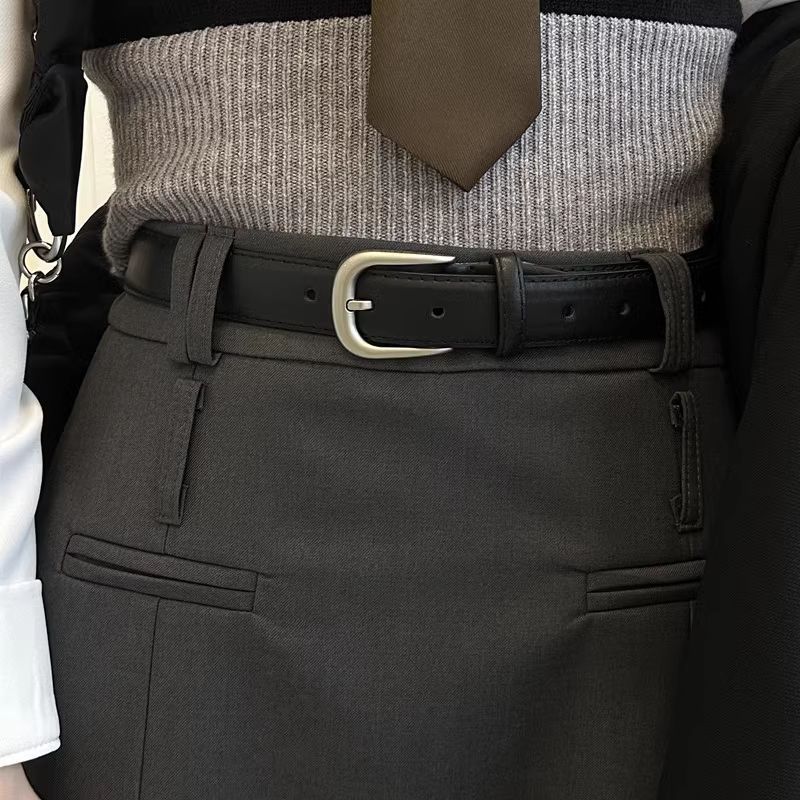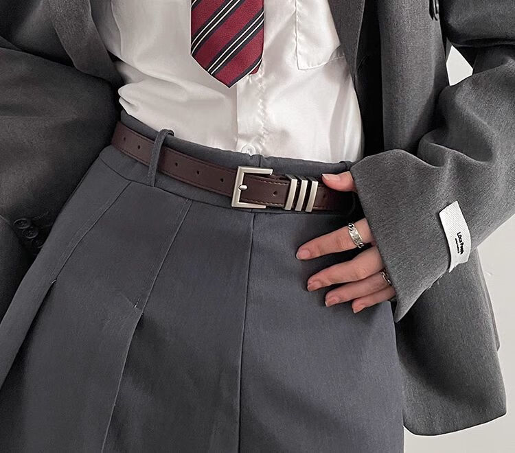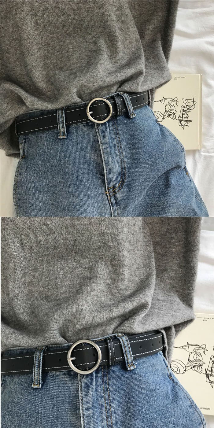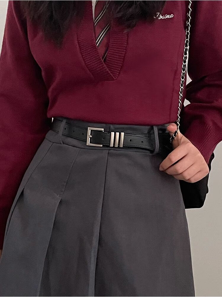 Yalso simple style square buckle belt unisex wide belt female Chic student fashion ins belt versatile black seam edge-Japanese buckle black