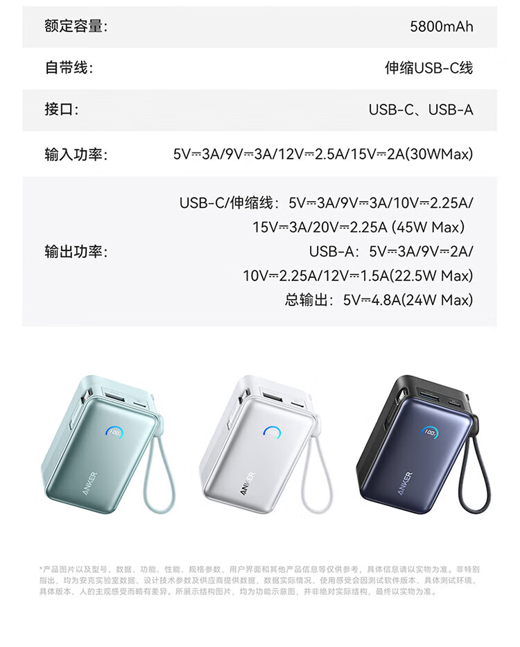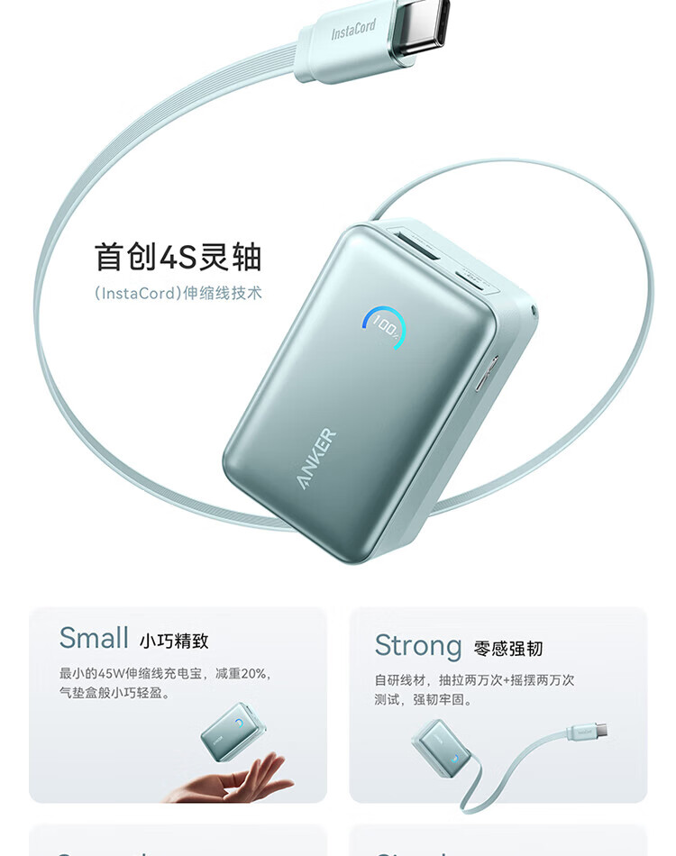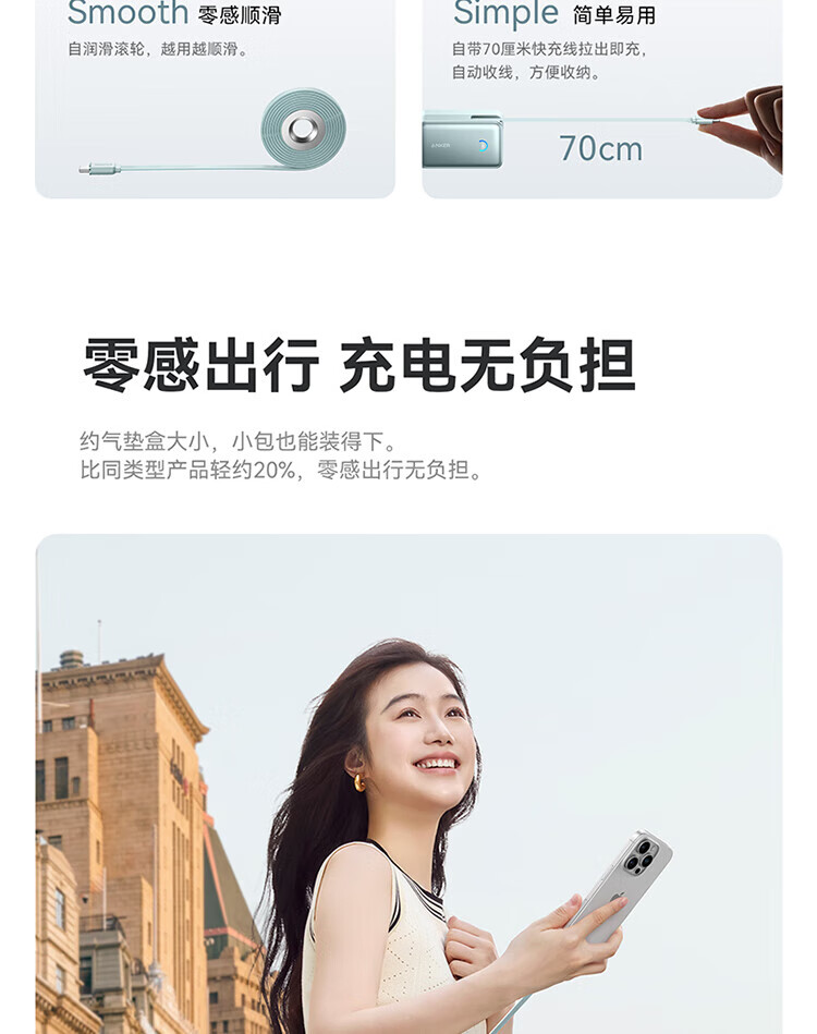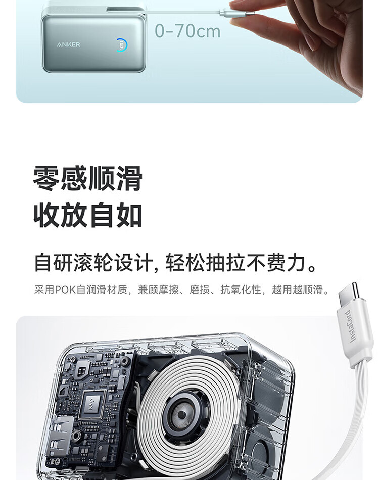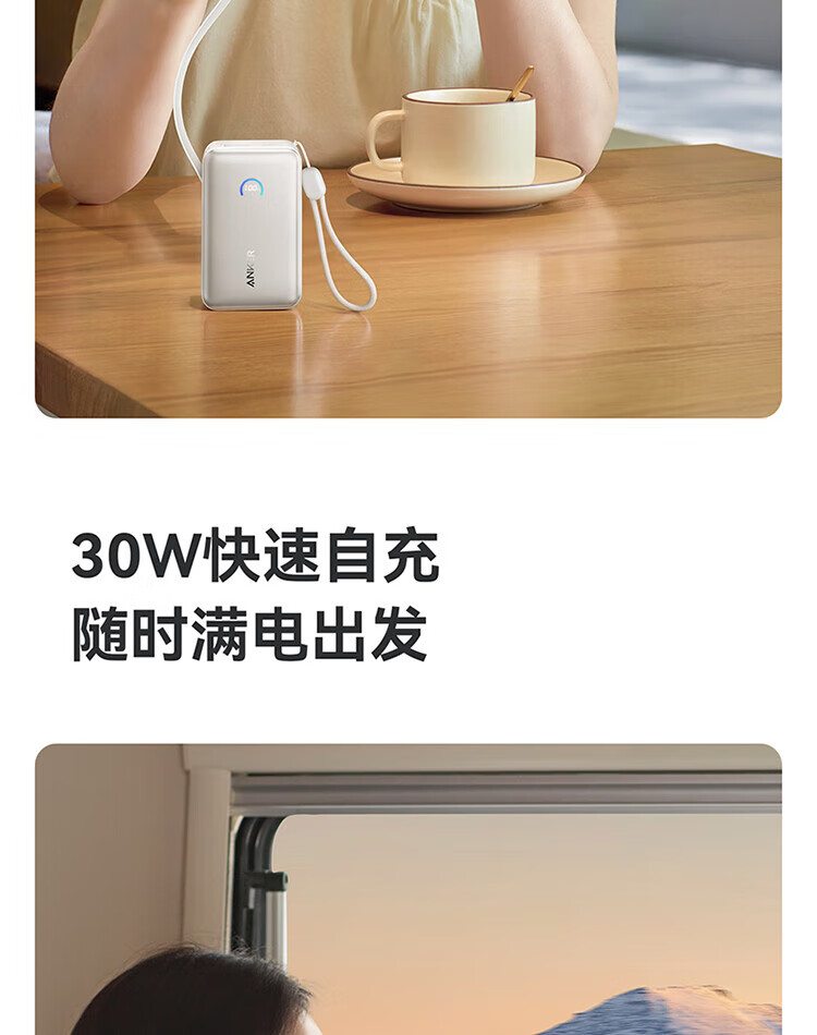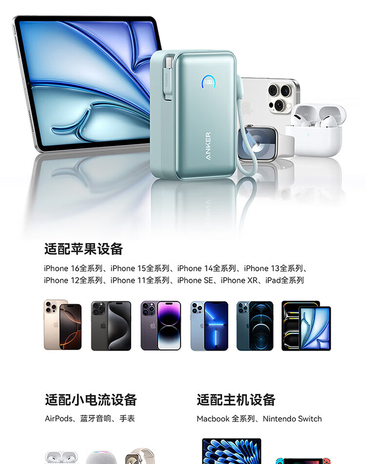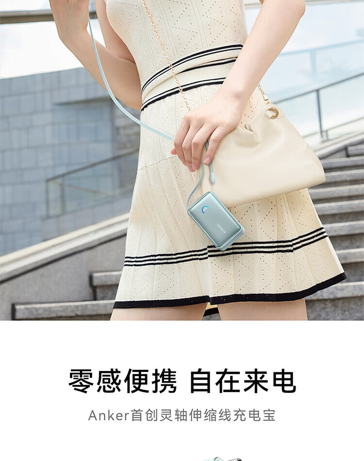 ANKER Anker energy box New 3C certification can be used on airplanes for Apple 17/iPhone 16 Power bank with built-in retractable cable 45W fast charging 10000mAh portable power bank 45W suitable for all Apple 17 series White | Comes with cable for compact and fast charging