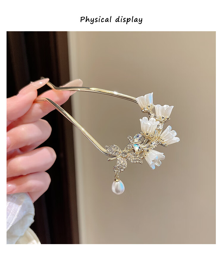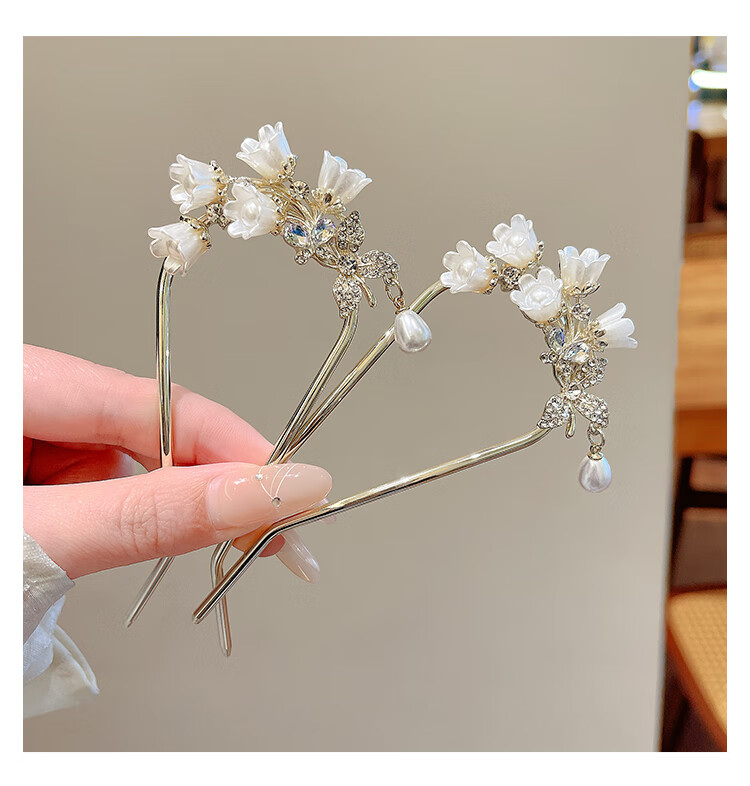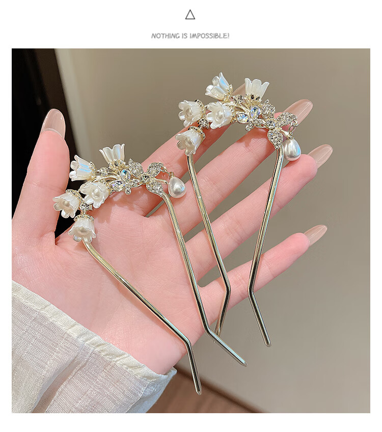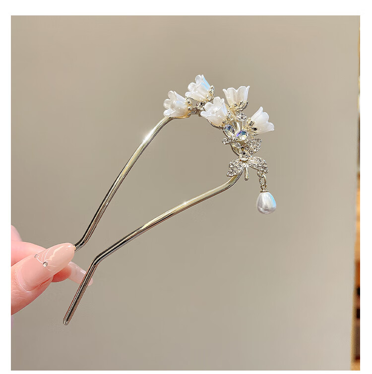 Nianfu new Chinese style ancient style fringed lily of the valley flower hairpin hairpin for women U-shaped hairpin Mid-Autumn Festival gift for girls lily of the valley flower U-shaped hairpin