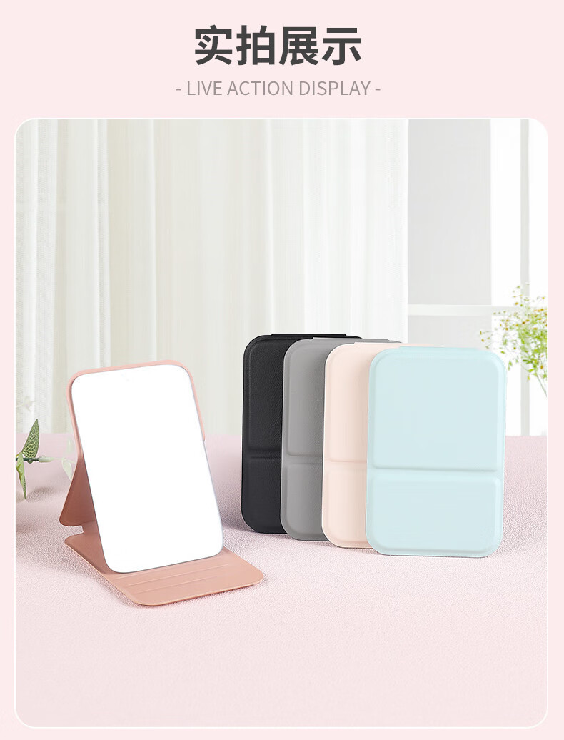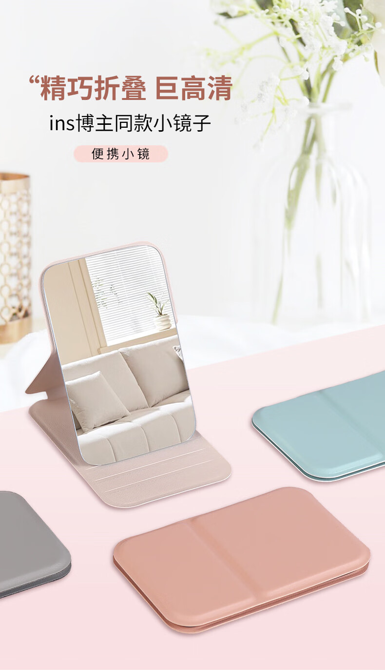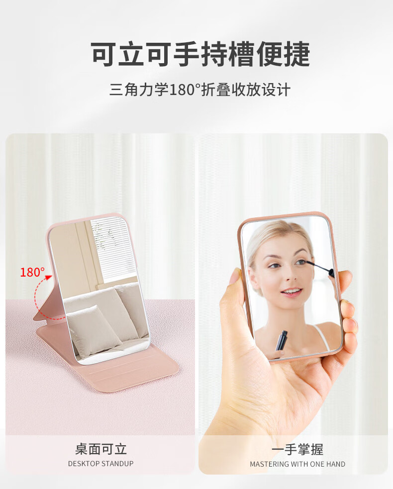 Mini simple makeup mirror for broken hair and hair accessories, convenient storage for carrying at any time for dressing, small folding mirror, pink folding mirror - 1 piece