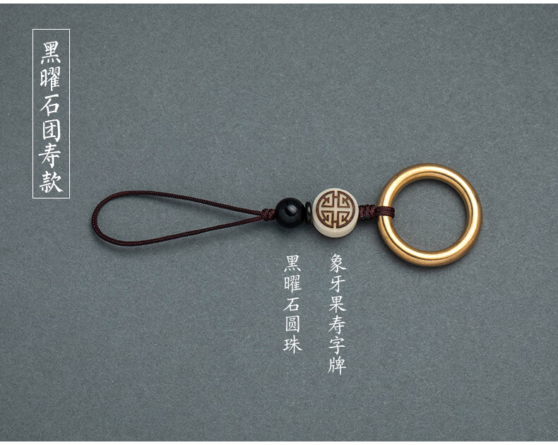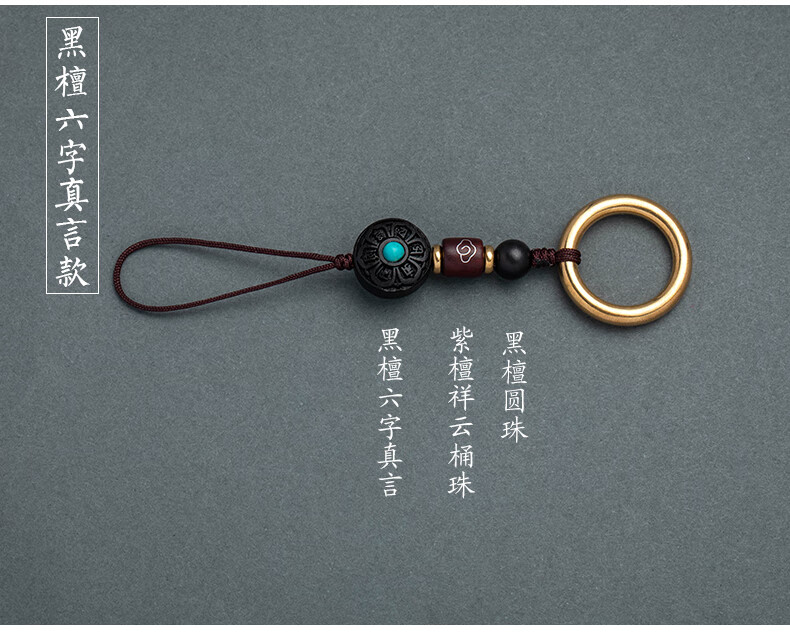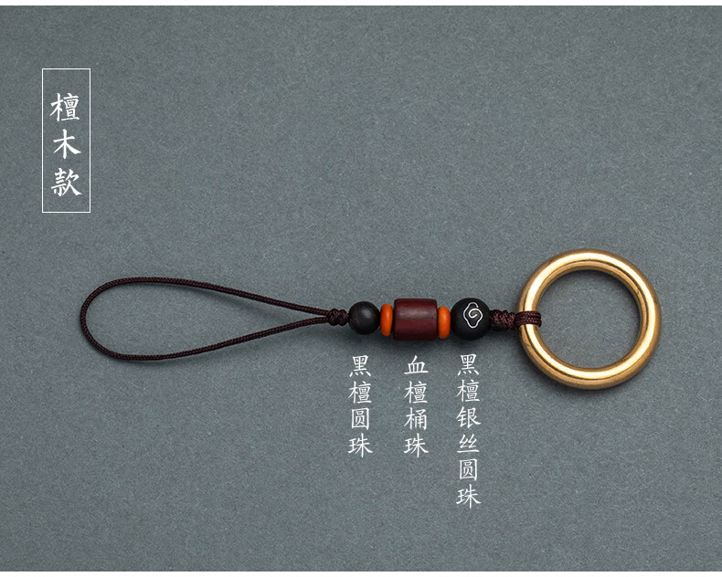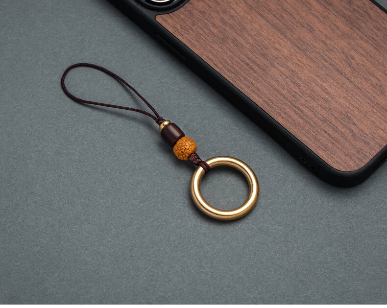 Budi Brass Ring Mobile Phone Ring Buckle Metal Universal Dust Plug Pendant U Disk Pendant Anti-Lost Lanyard Handmade Rosewood Cloud Pattern