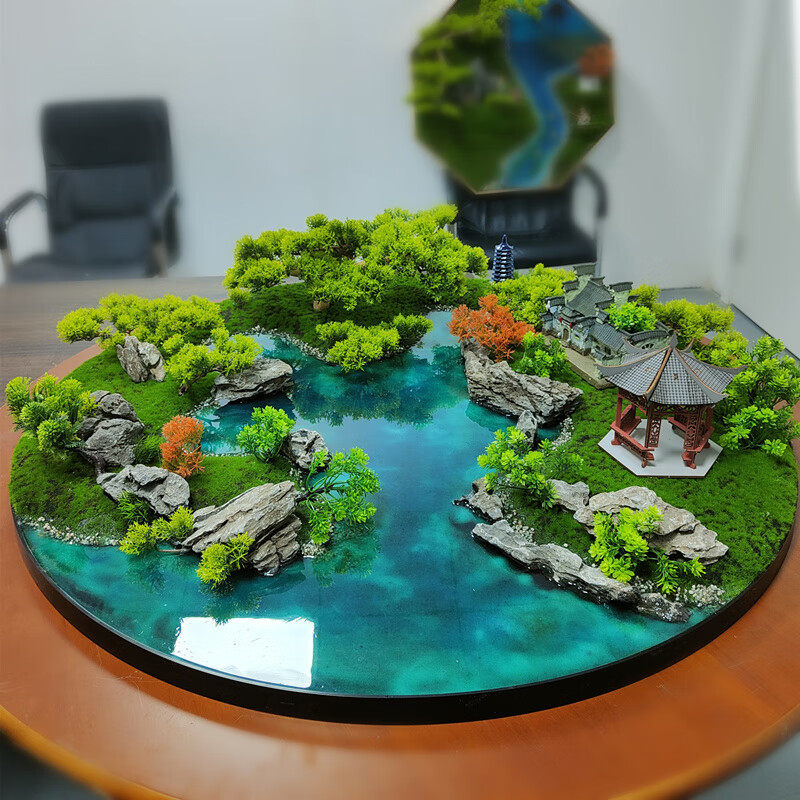 Dongluyu Hotel Hotel Dining Table Flower Vase Bonsai Round Table Turntable Decoration Crafts Garden Design Decoration 70 Ripples in the Blue Water