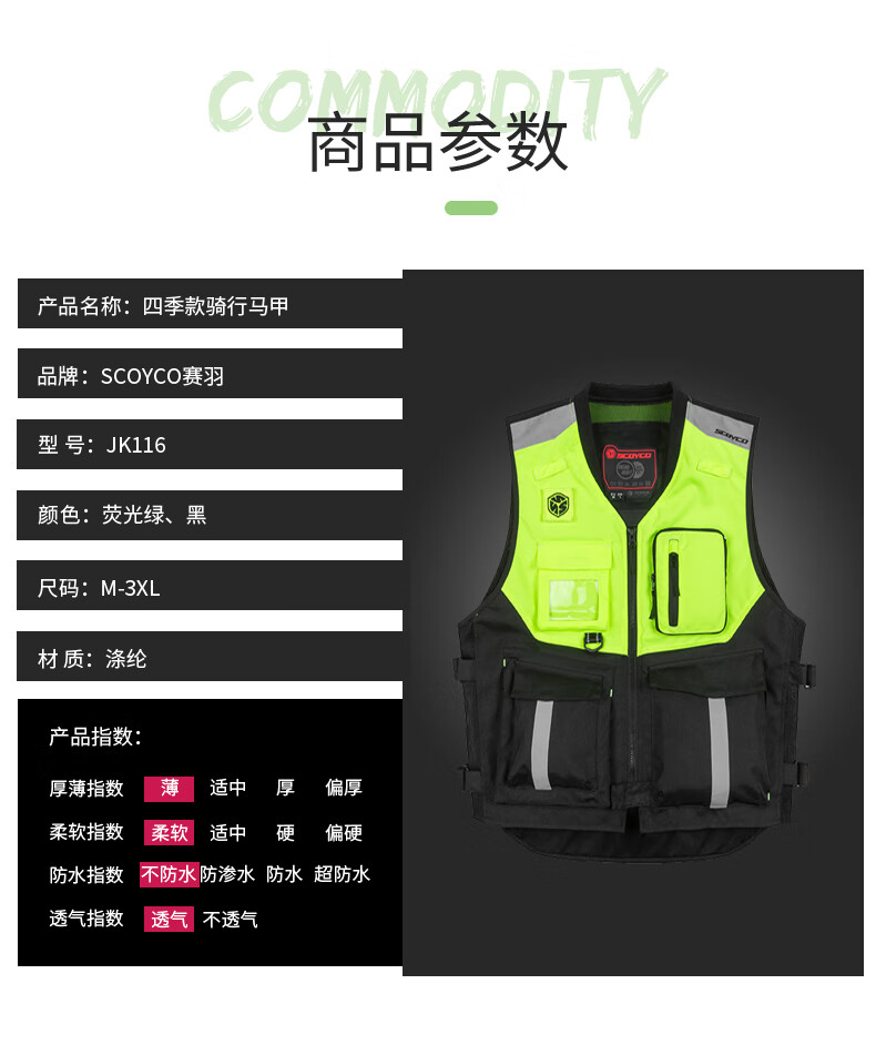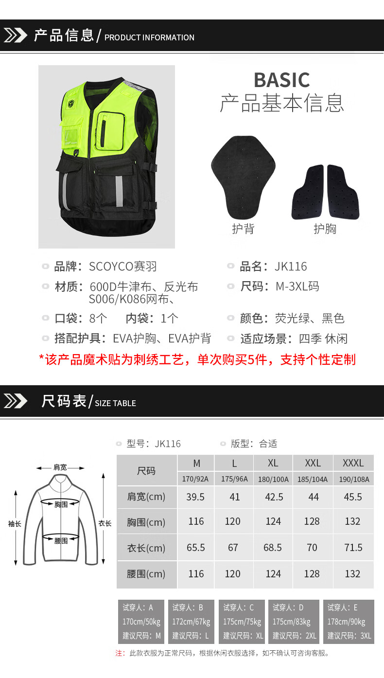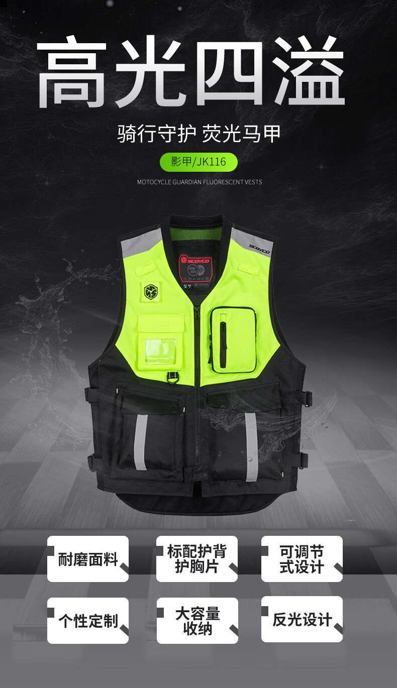 SCOYCO Motorcycle Riding Suit Fluorescent Vest Motorcycle Suit Anti-fall Rider Vest Clothes Four Seasons Motorcycle Shadow Armor JK116 (Green) M