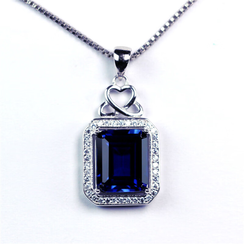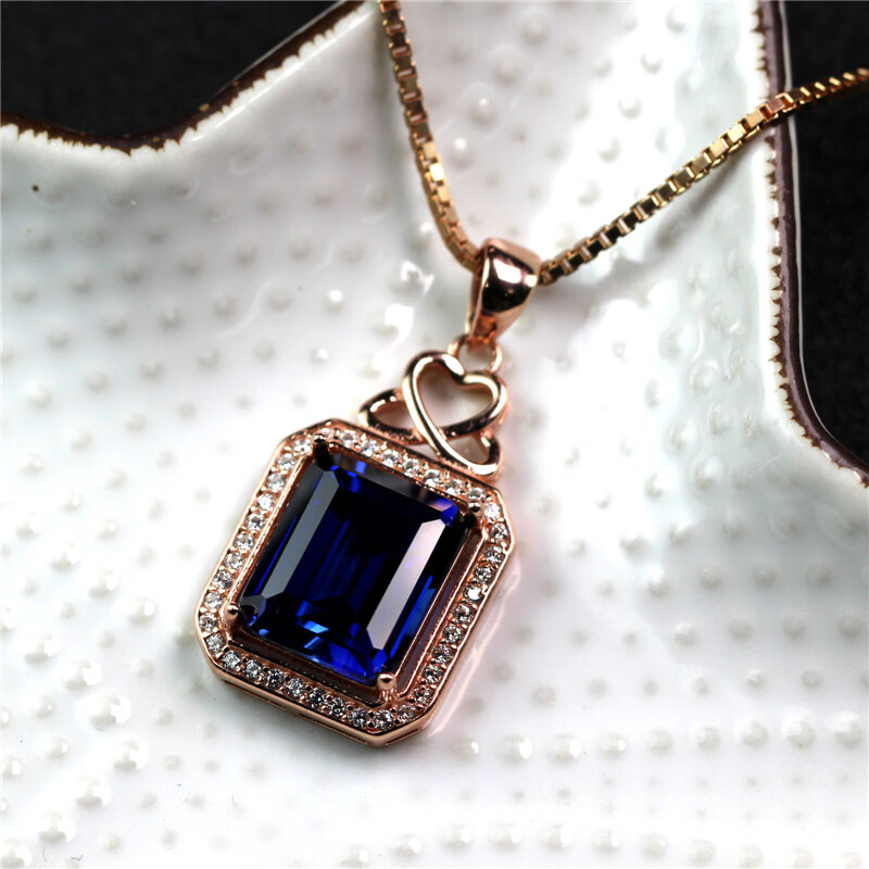 DRJEFUN Rectangular Tanzanite Sapphire Pendant Necklace Pendant Women's Blue Tanzanite Pendant Diamond Silver Jewelry Rose Gold (Main Stone 10X12mm) with Chain