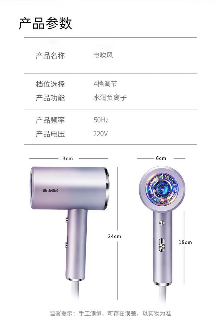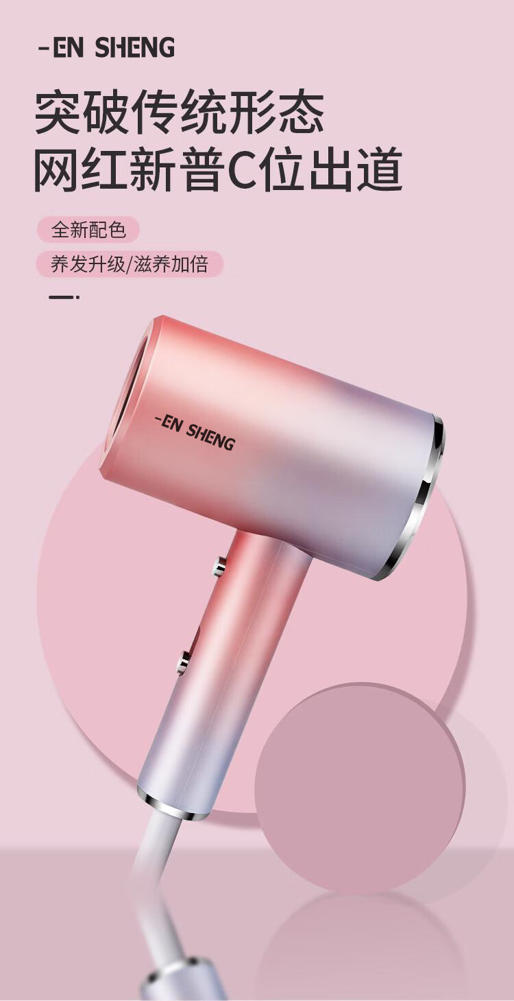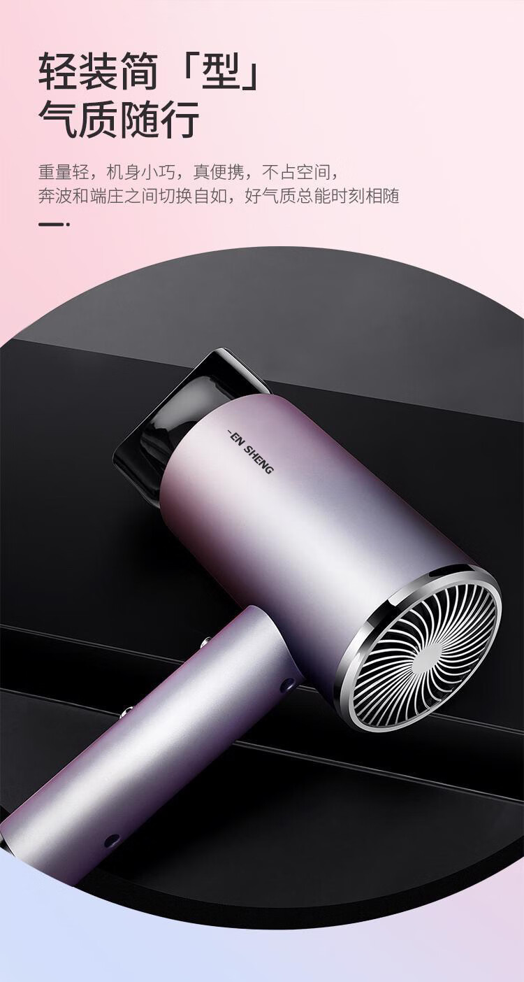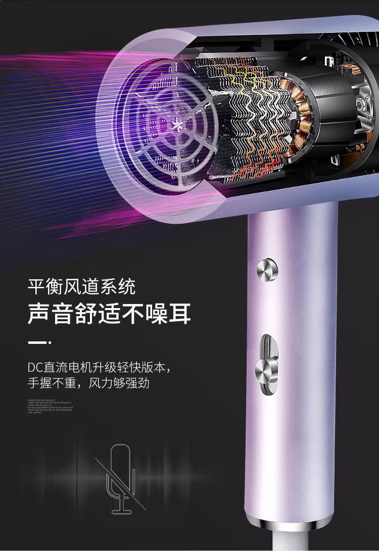 Hair dryer for home use, light sound, negative ion hair care fan, strong wind, quick drying, one-button cold air, no harm to hair, holiday gift, blue light hair care, one-button cold air, gradient powder 1200W