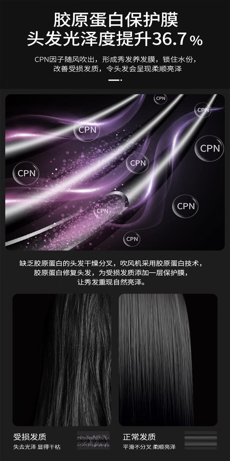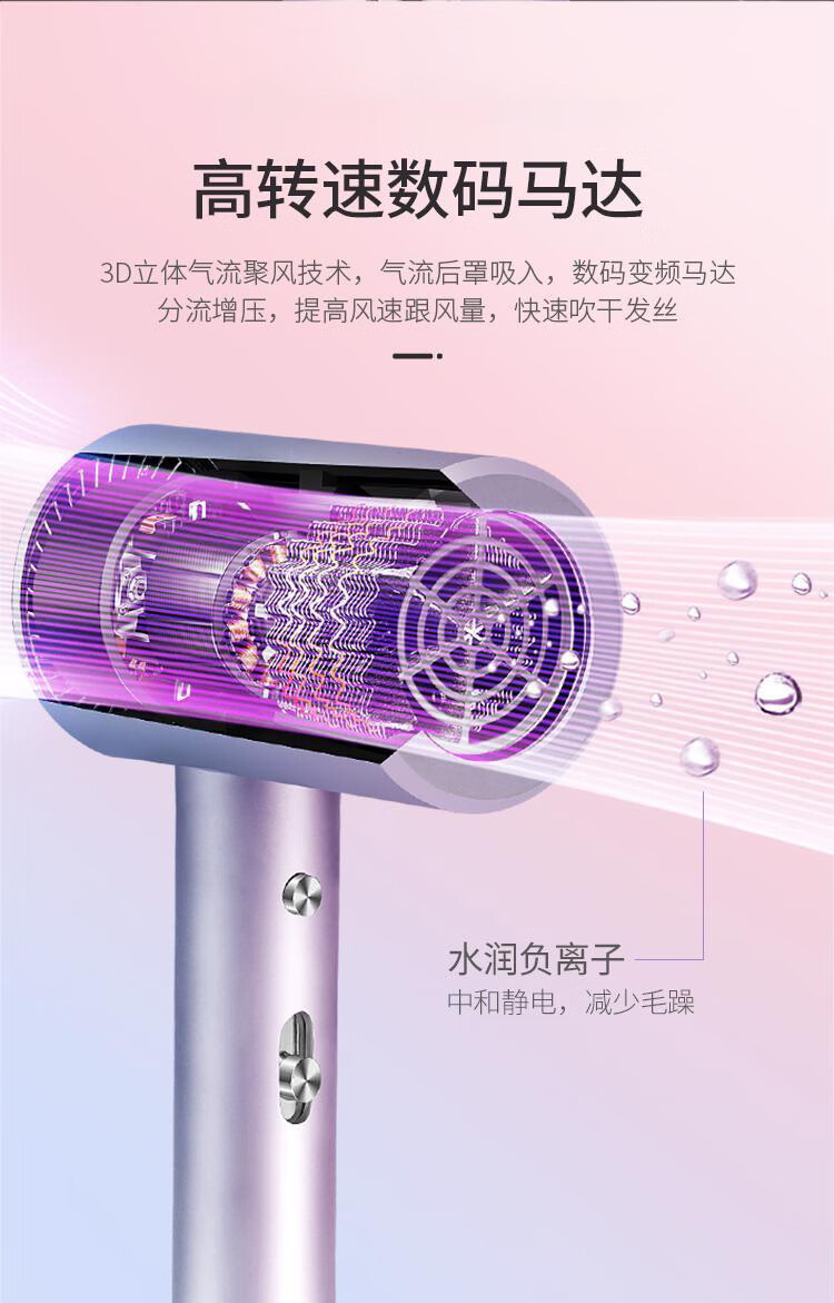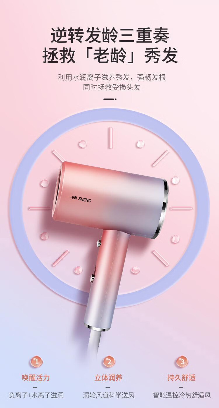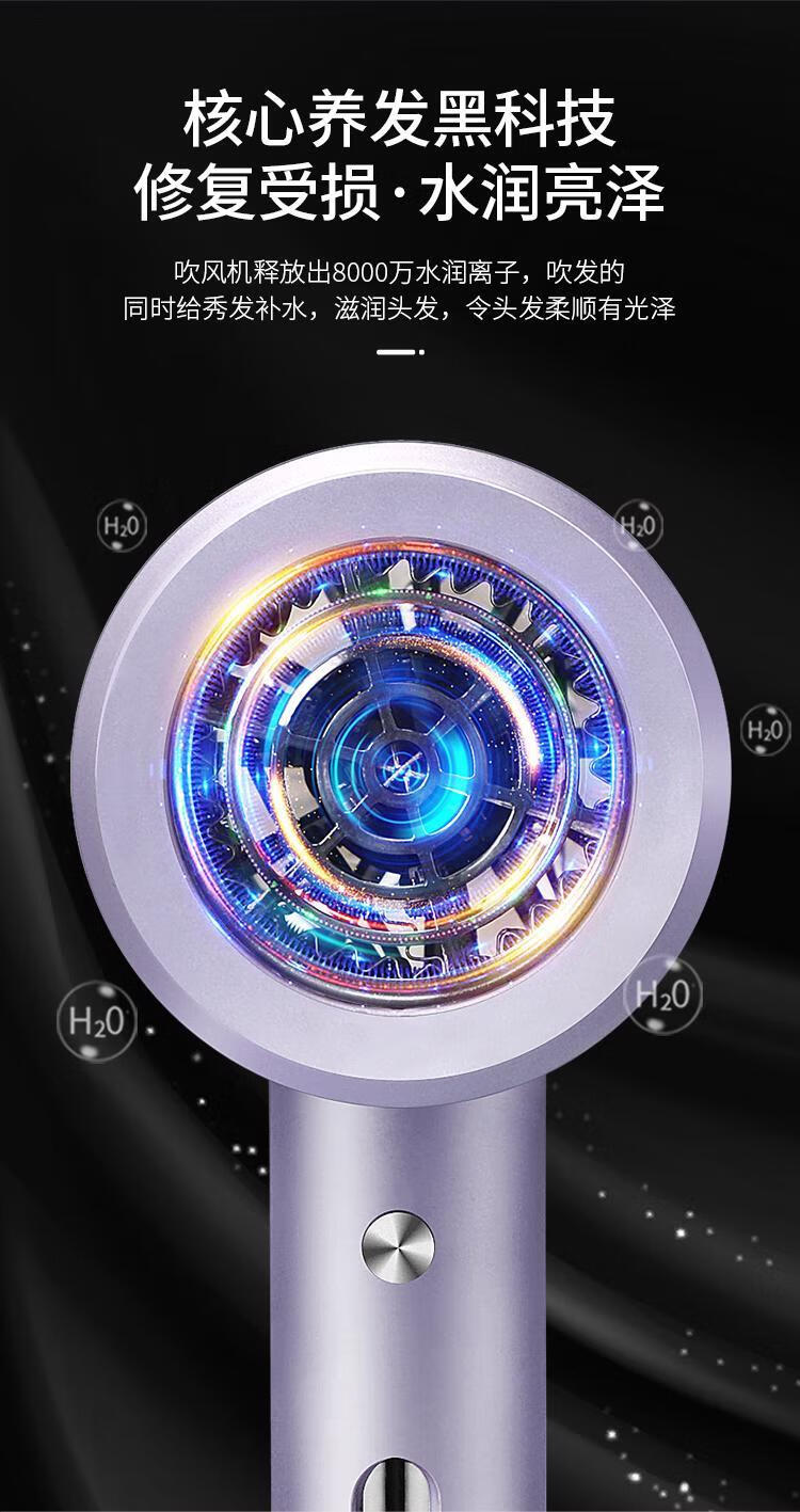 Hair dryer for home use, light sound, negative ion hair care fan, strong wind, quick drying, one-button cold air, no harm to hair, holiday gift, blue light hair care, one-button cold air, gradient powder 1200W