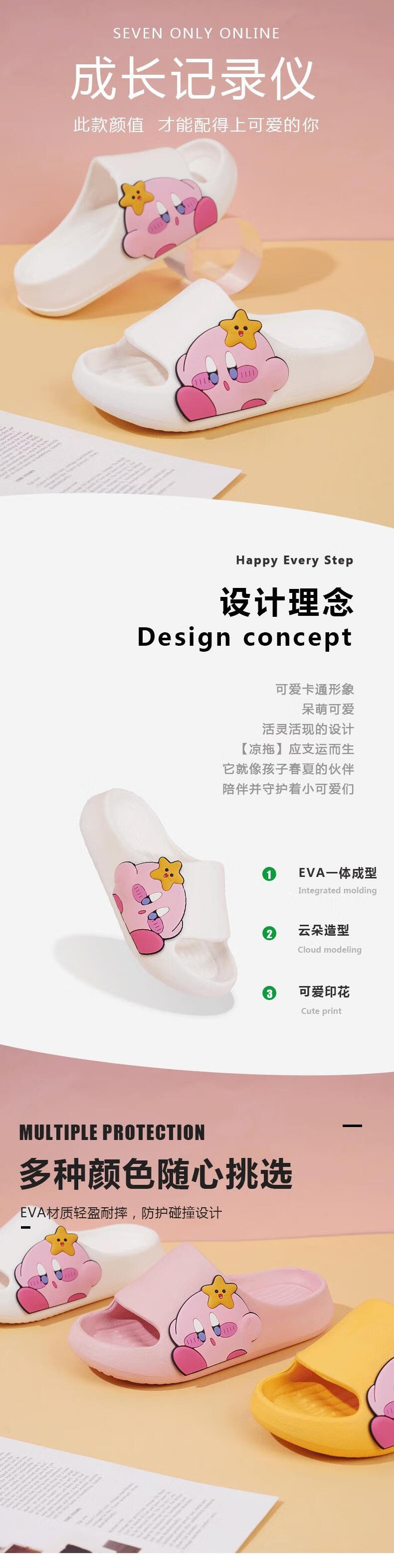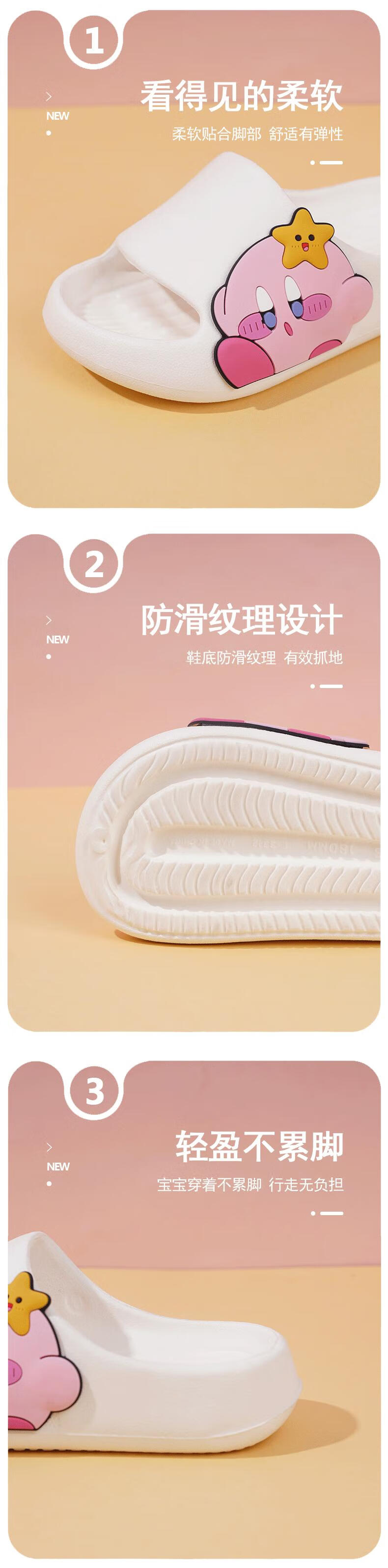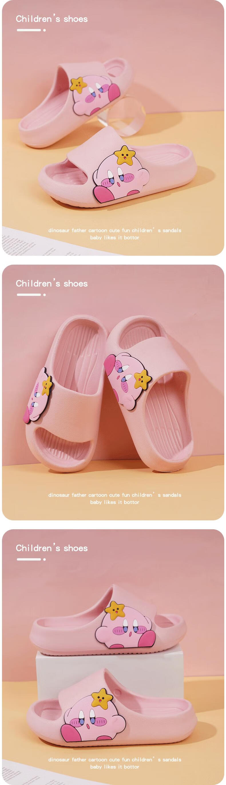 Children's Slippers Girls Summer Girls Kirby Anti-Slip Cartoon Soft Sole Indoor Home Sandals Pink 32