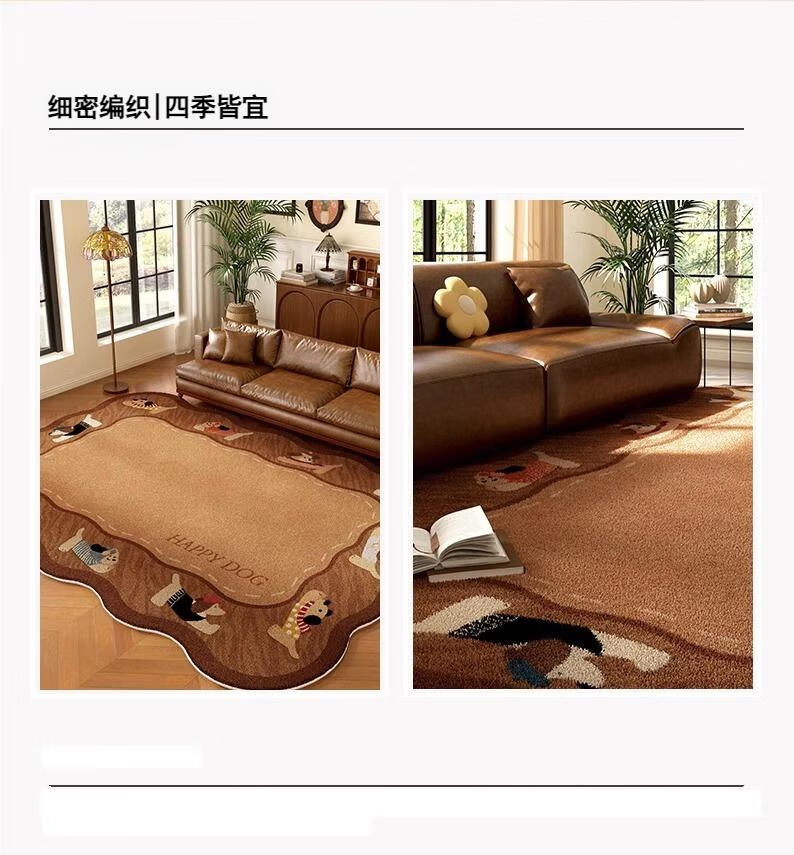 Mu Nizhong antique brown living room carpet cute retro dog shaped waterproof anti-fouling irregular bedroom bedside mat special shaped carpet coffee brown puppy crystal velvet carpet surface 140*200cm