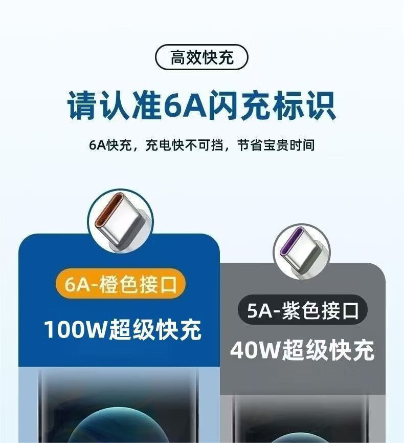 Type-C data cable 6A is suitable for Huawei Honor super fast charging 100W/88W/66W/40W charging cable Pura70/X/Mate70Pro Xiaomi Android mobile phone and tablet suitable for Android models 1.2 meters 1 pack