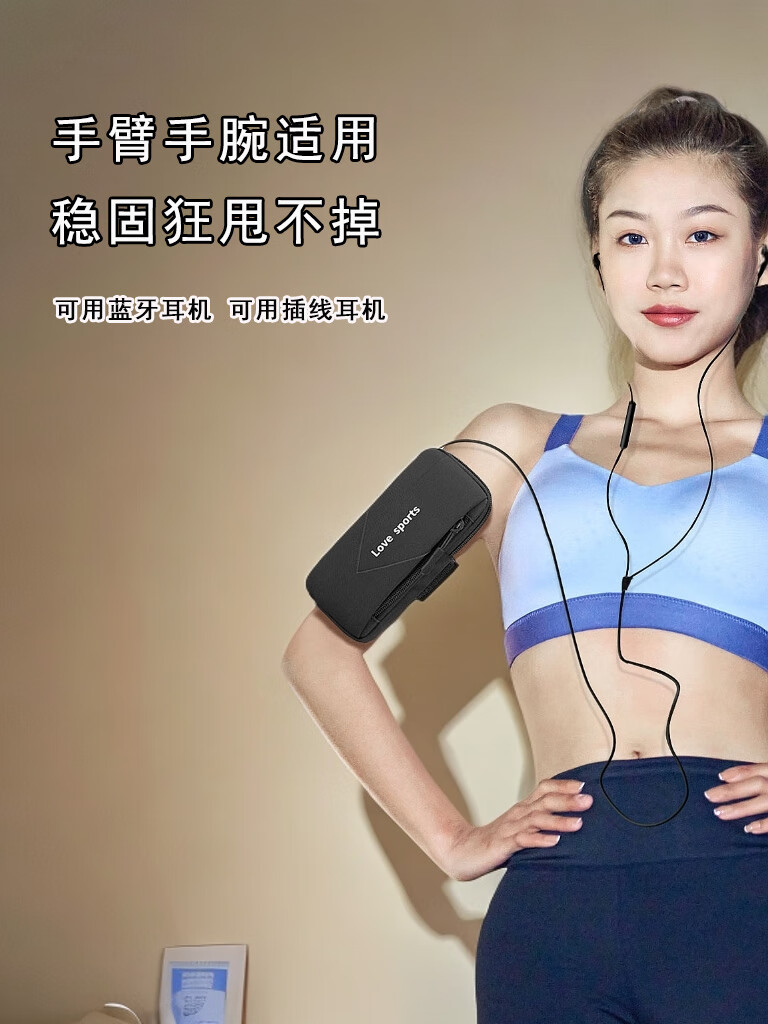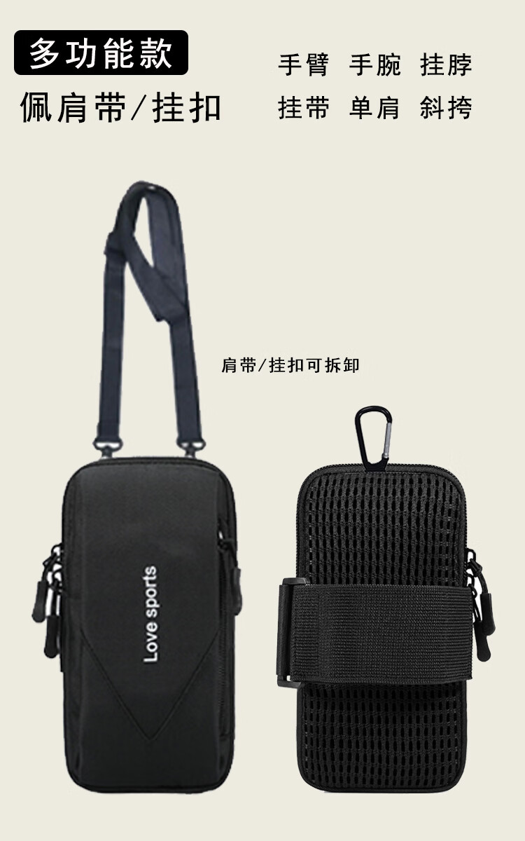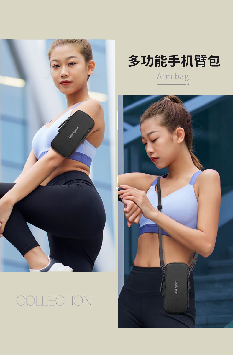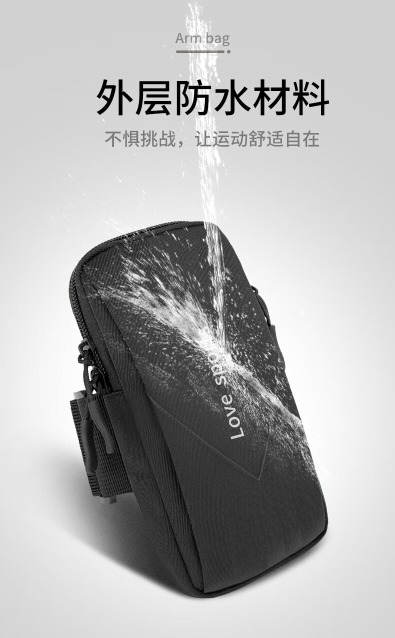 Complete running cell phone arm bag, waterproof, thin and multifunctional mobile phone bag, outdoor fitness equipment, sports arm bag, black