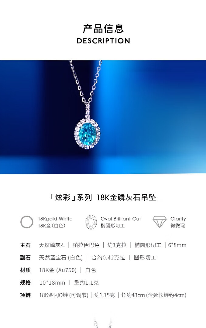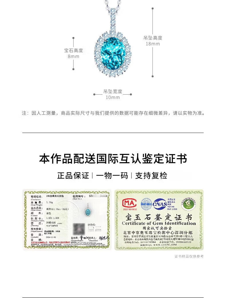 Lirokini Necklace for Women 18K Gold Apatite Pendant Women's High-end Jewelry Birthday Memorial Gift for Girlfriend and Wife 1 Carat 18K Gold Apatite Pendant Brand Gift Box