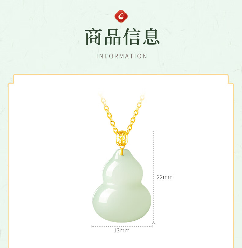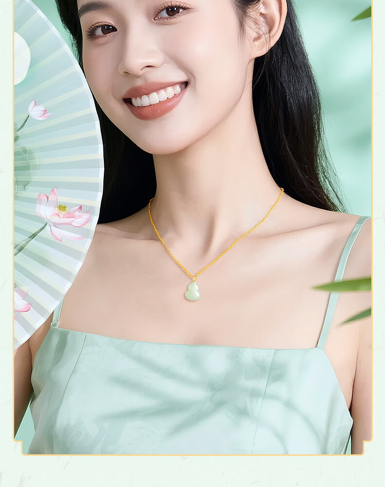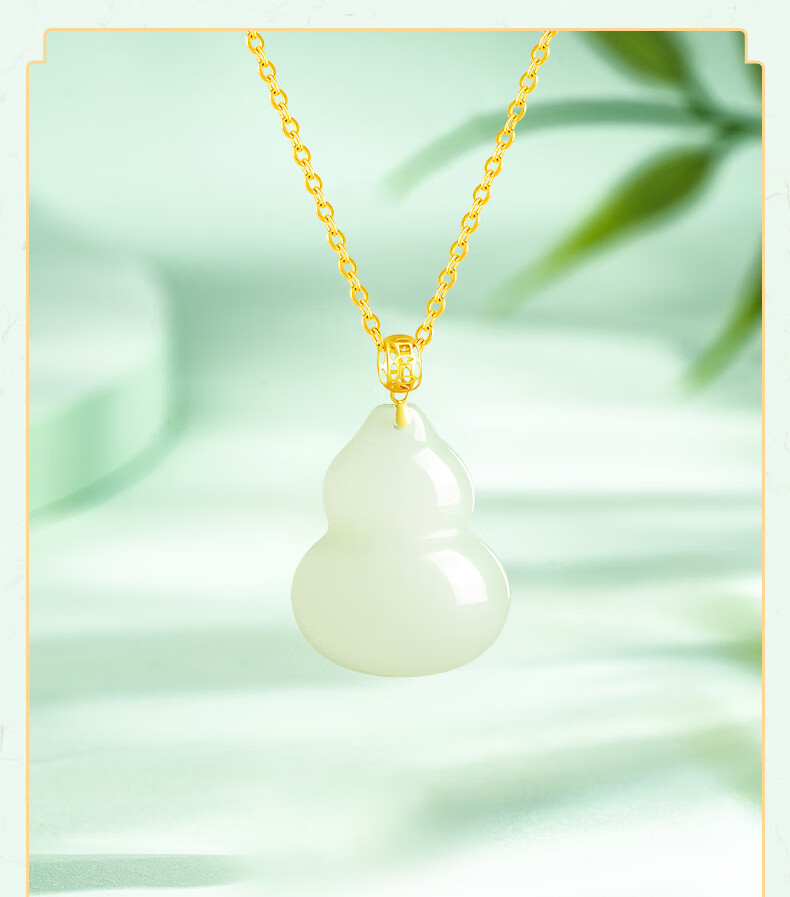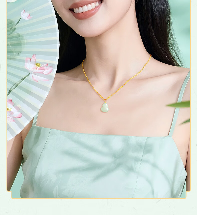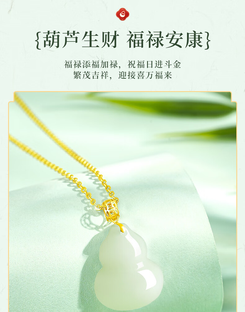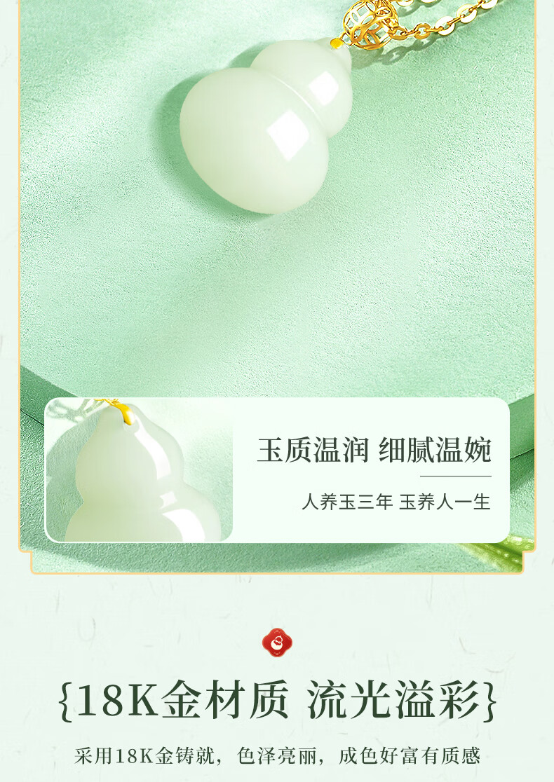 Lao Fengxiang Gourd 18k Gold Necklace for Women Light Luxury Hetian Jade Pendant Wedding Anniversary Gift for Girlfriend and Wife’s Birthday 18k Gourd Hetian Jade Pendant + 925 Silver Chain