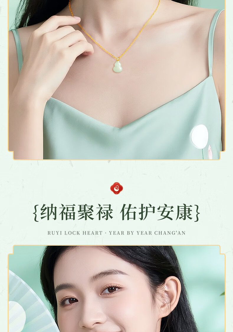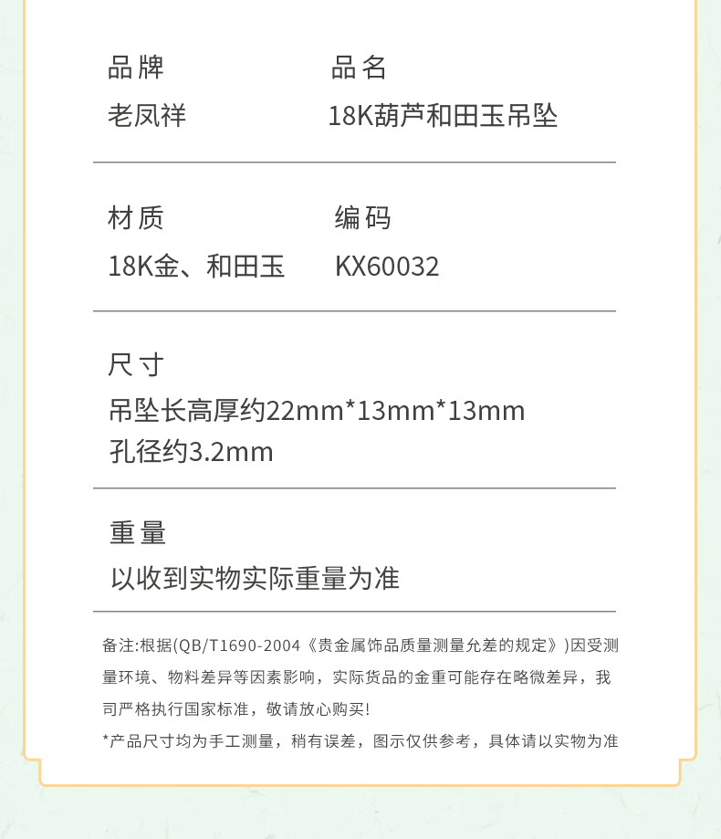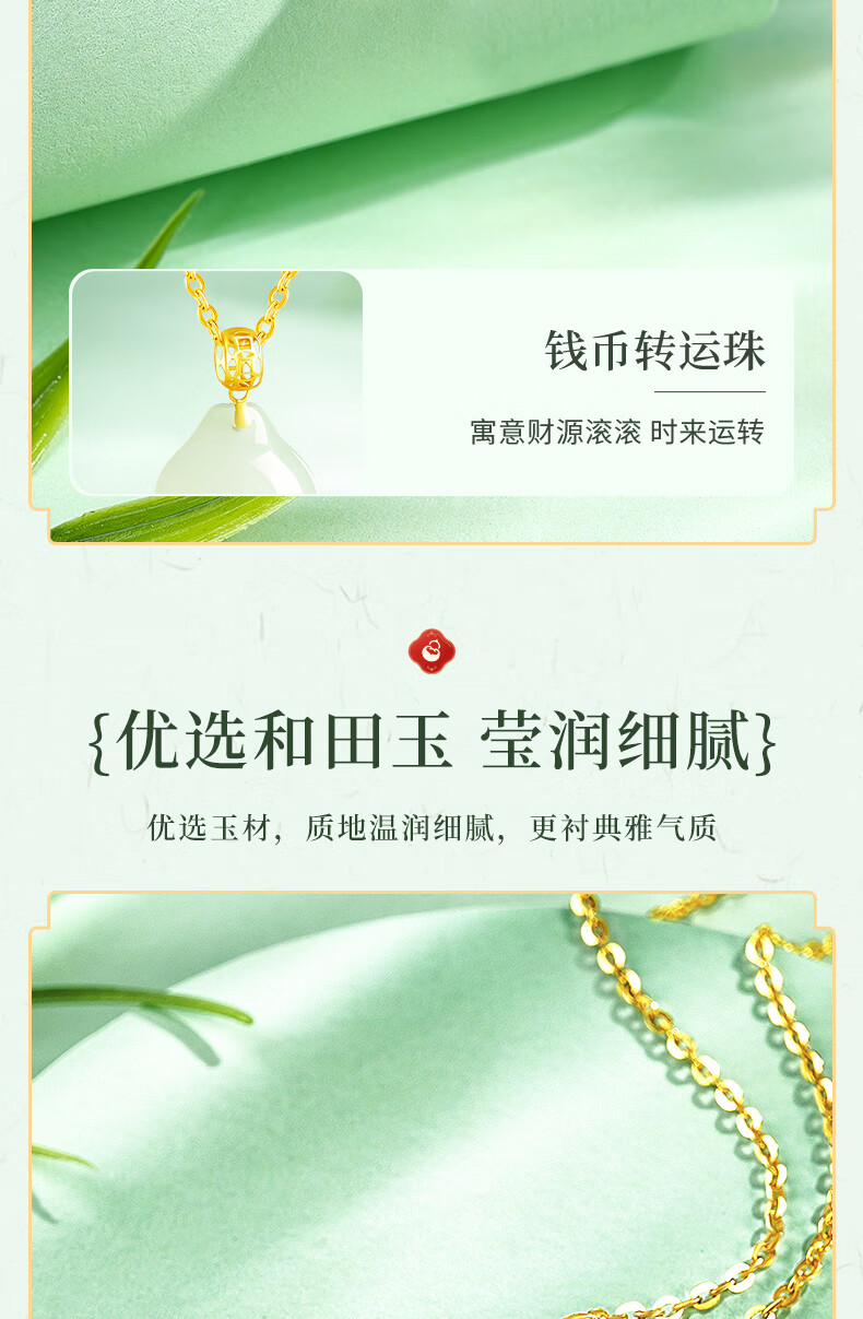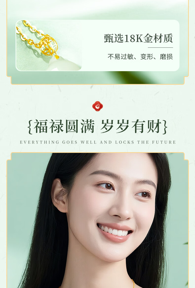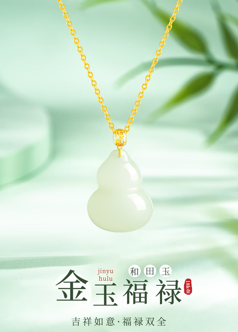 Lao Fengxiang Gourd 18k Gold Necklace for Women Light Luxury Hetian Jade Pendant Wedding Anniversary Gift for Girlfriend and Wife’s Birthday 18k Gourd Hetian Jade Pendant + 925 Silver Chain
