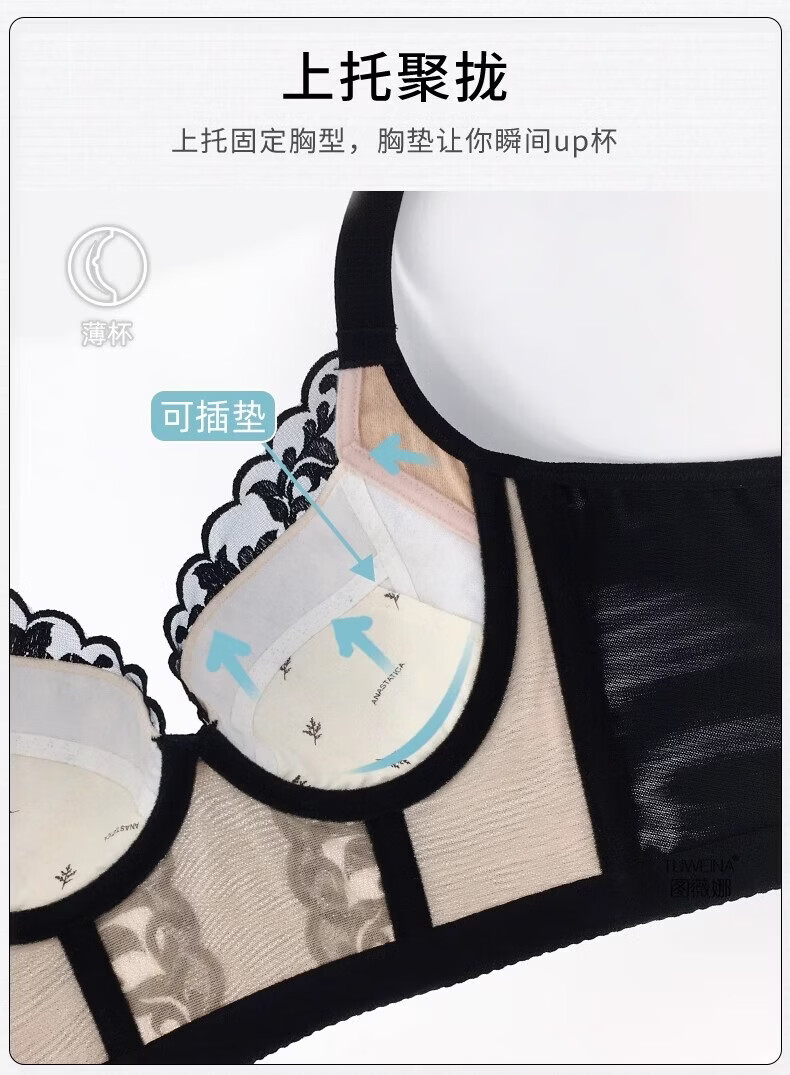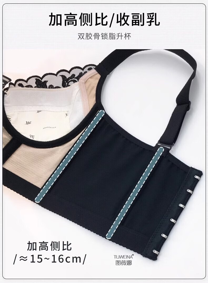 KING WINNER adjustable underwear, back-beautiful body manager, small bra, Internet celebrity push-up, side breasts, anti-sagging bra set, charming black (set) M 36/80B, thin at the top and thick at the bottom 2.5C