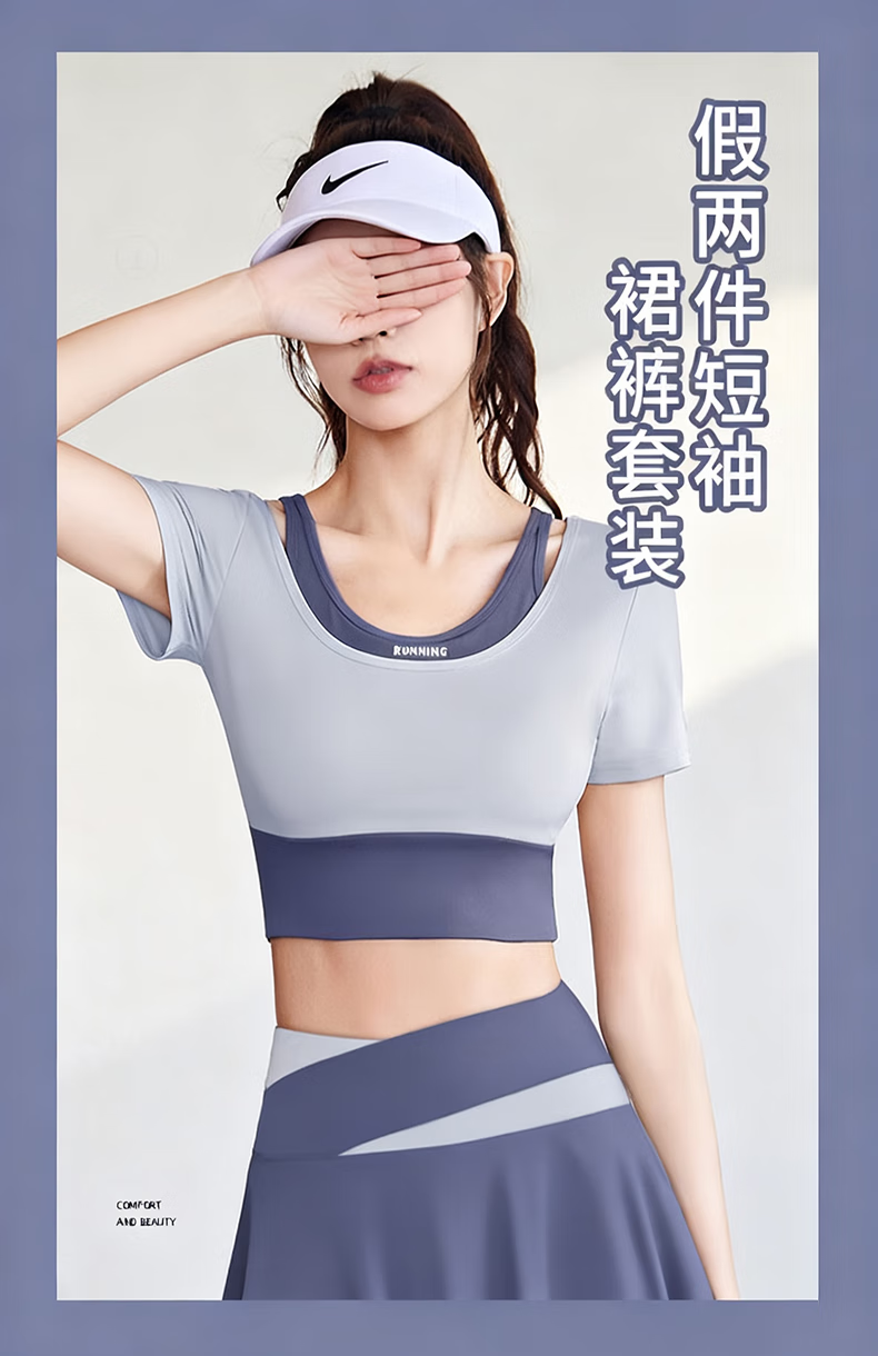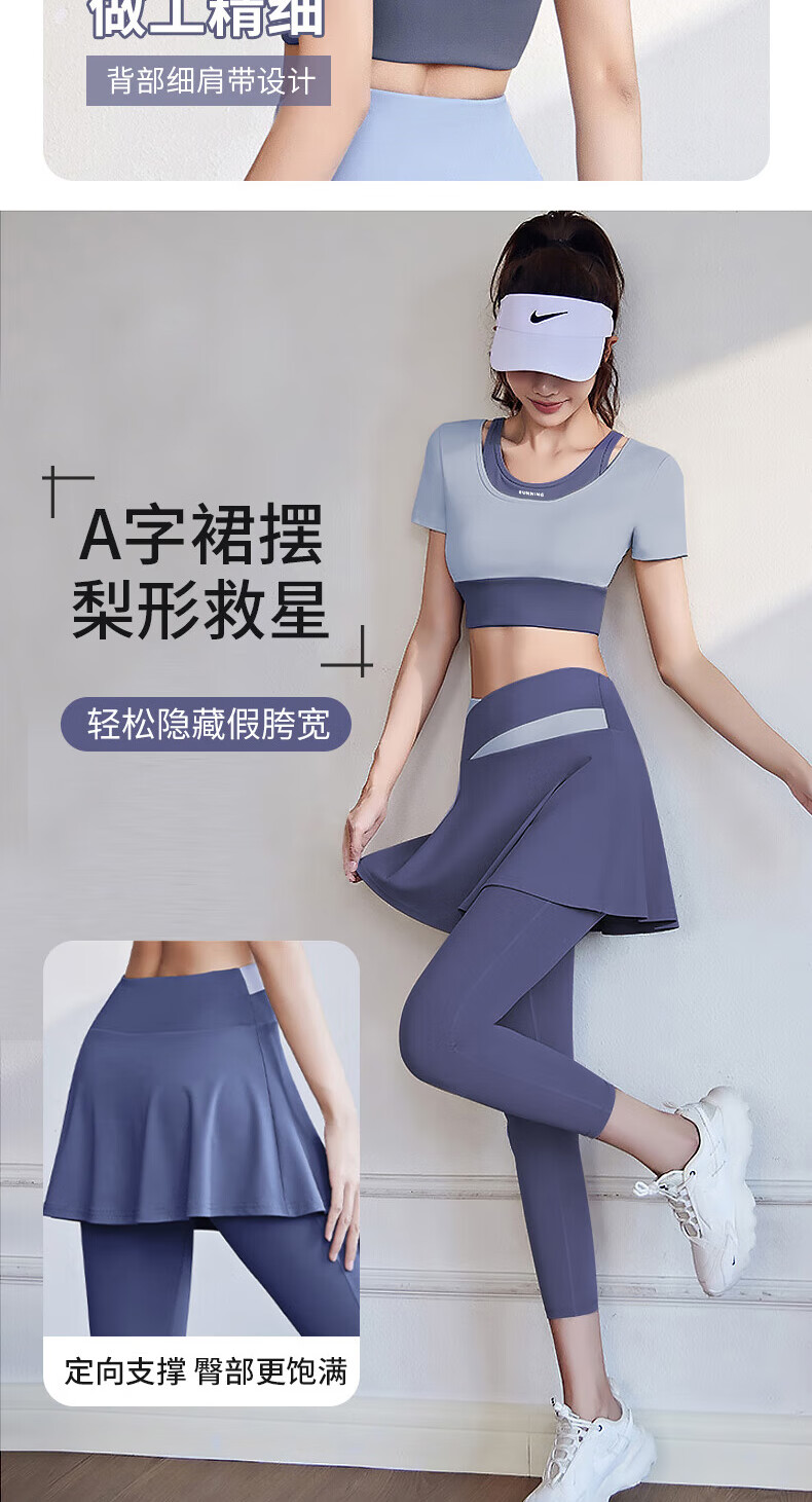 Bo Na Ling Yoga Wear 2025 Two-piece Set for Women's Sports Fitness Running Pilates Training Short-Sleeved Long Pants Skirt Suit Skirt-style Yoga Wear Blue M