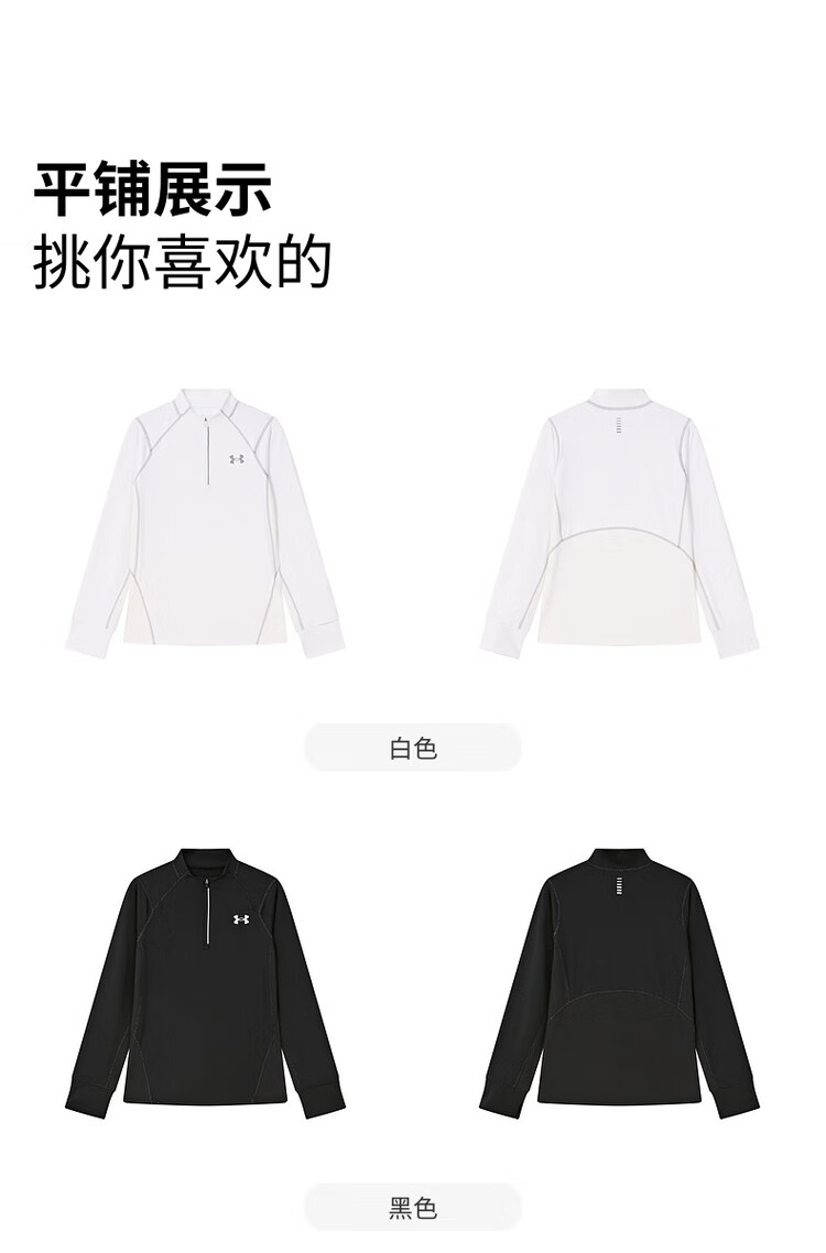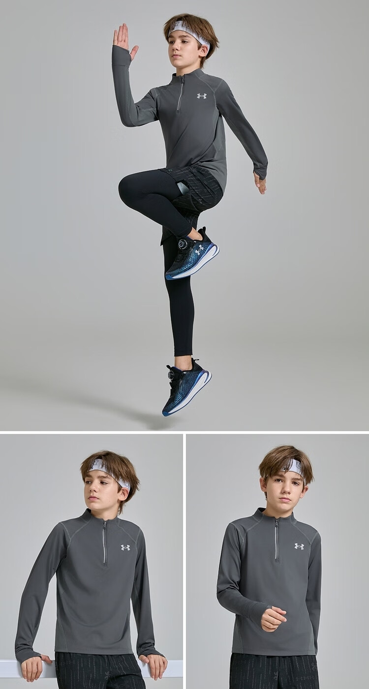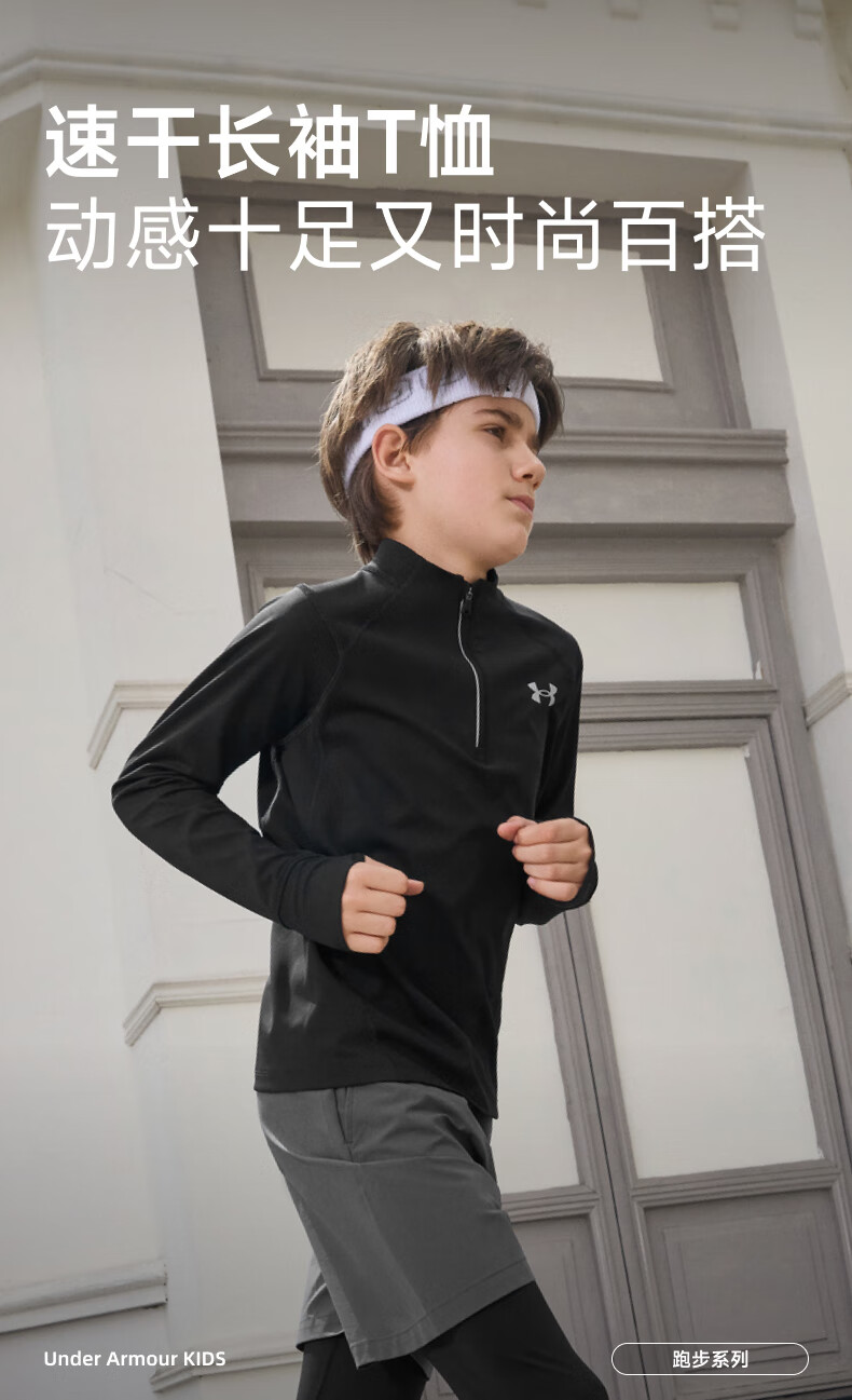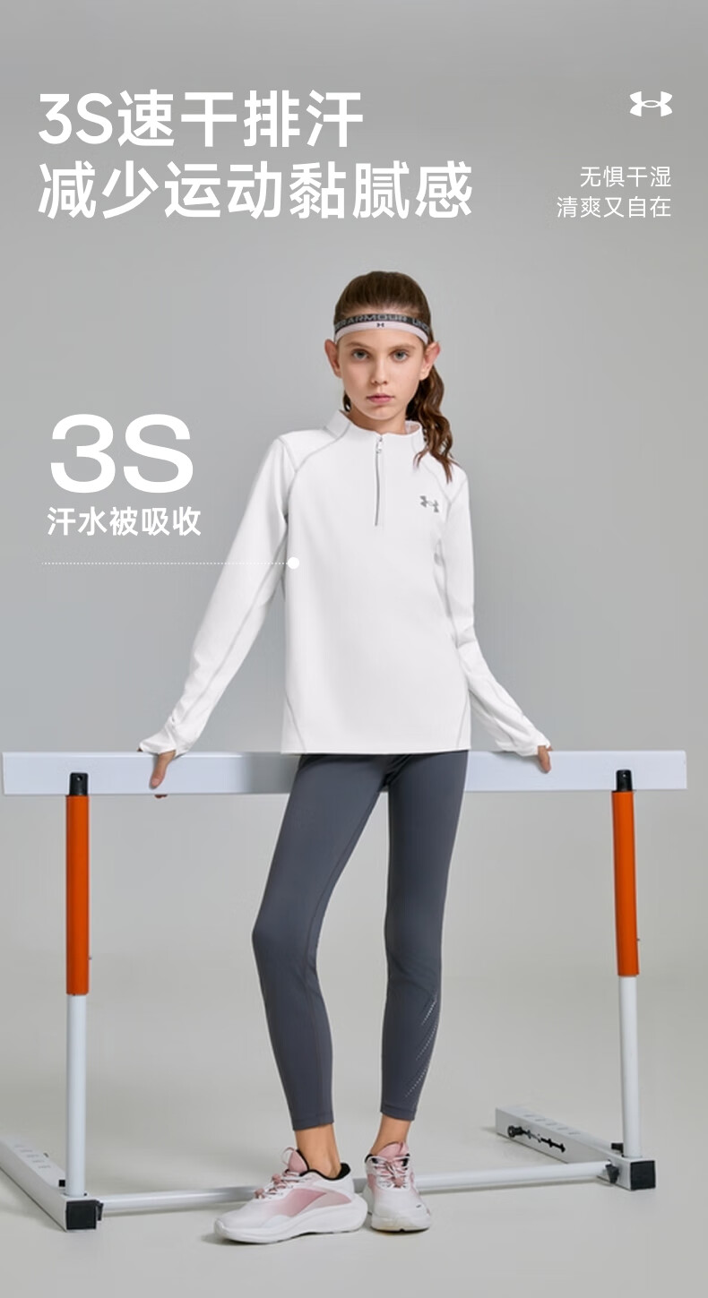 Under Armor children's long-sleeved T-shirt for men and women, spring and autumn breathable, moisture-absorbing, quick-drying sports training stand-up collar top 253303206 white 170