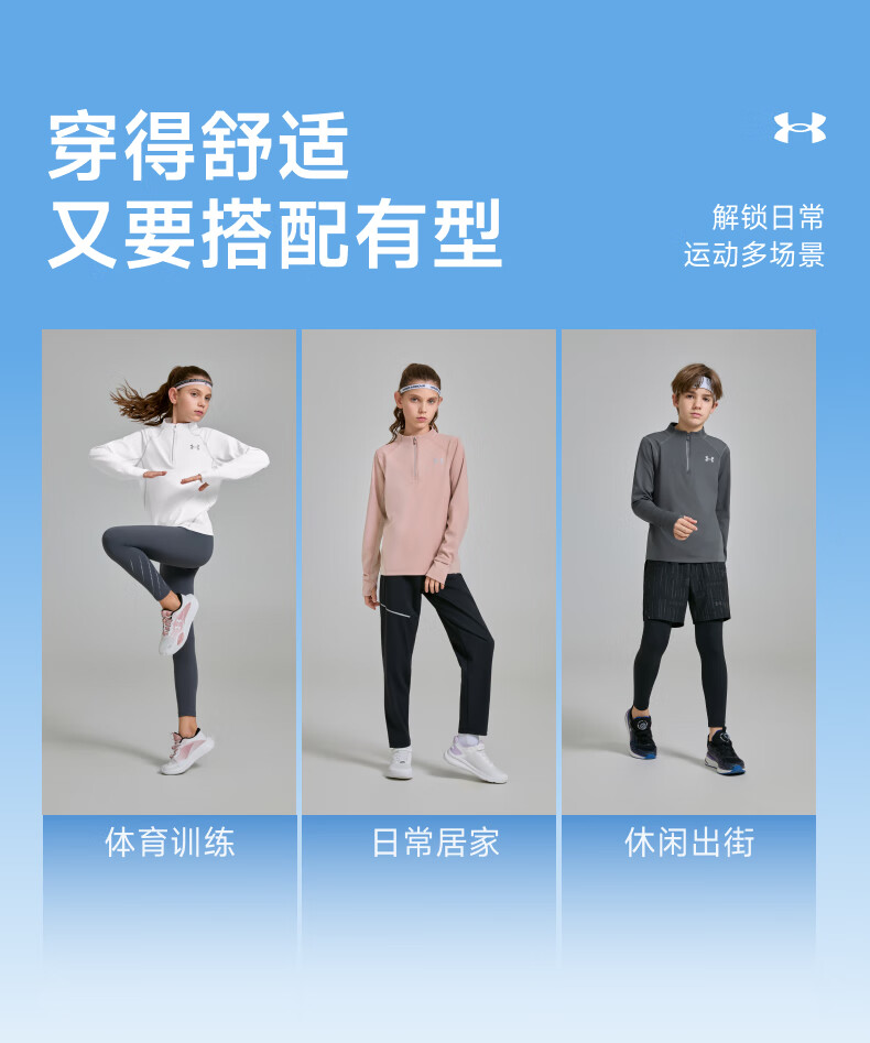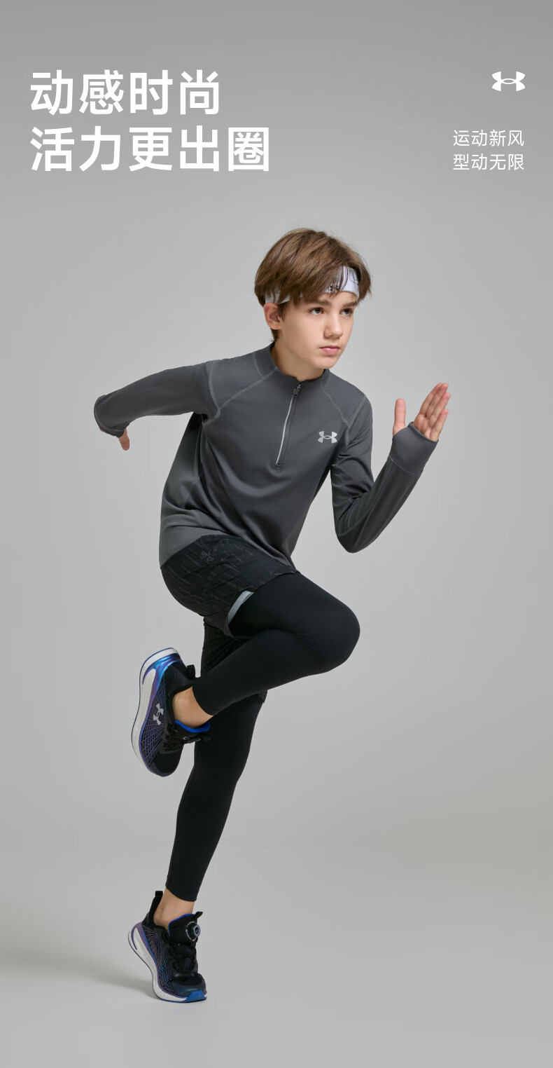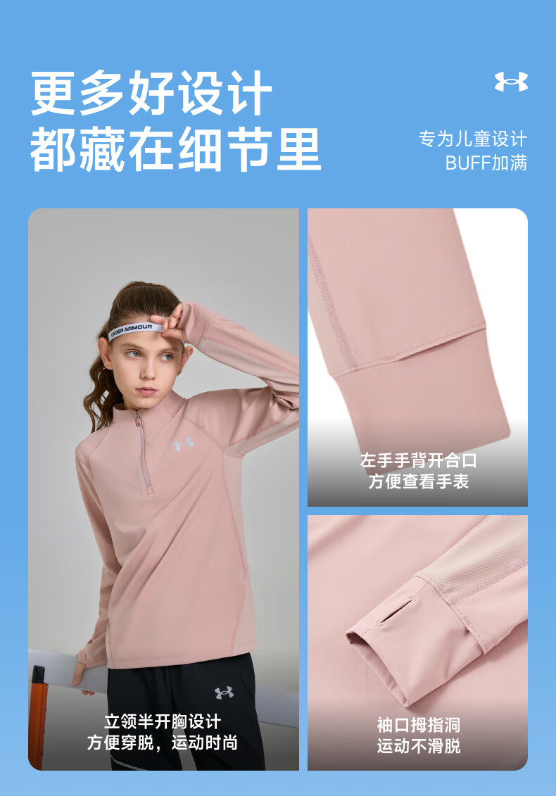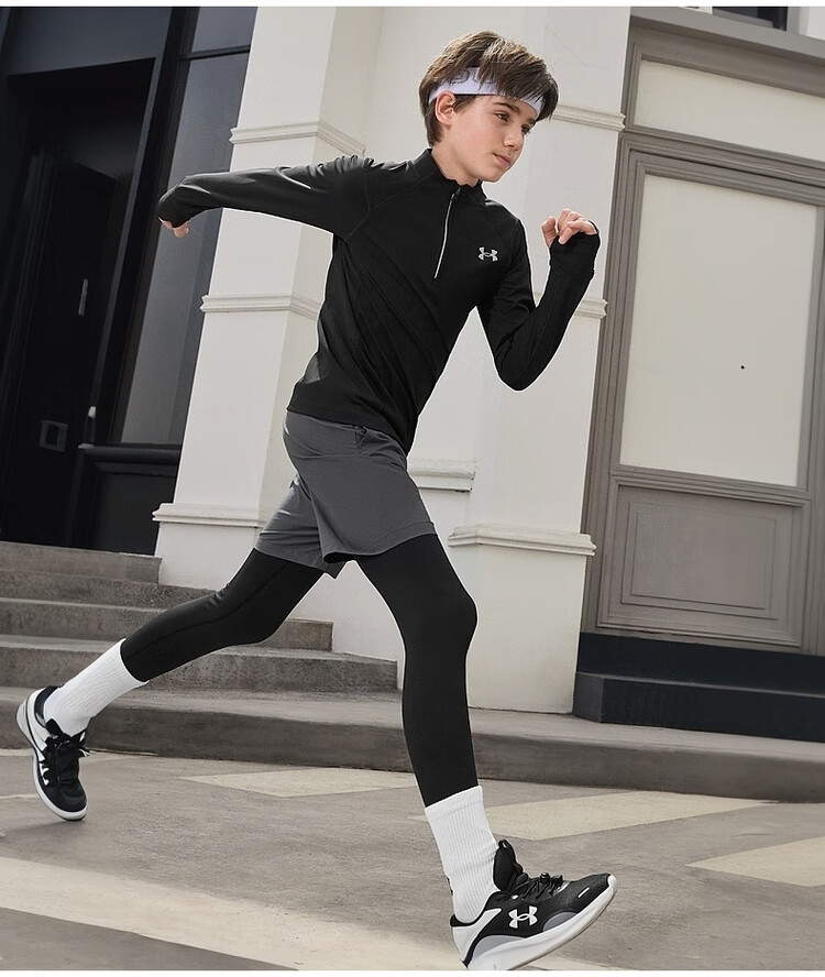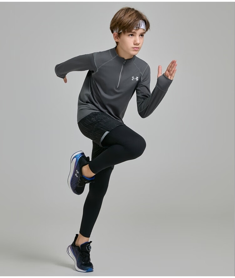Under Armor children's long-sleeved T-shirt for men and women, spring and autumn breathable, moisture-absorbing, quick-drying sports training stand-up collar top 253303206 white 170