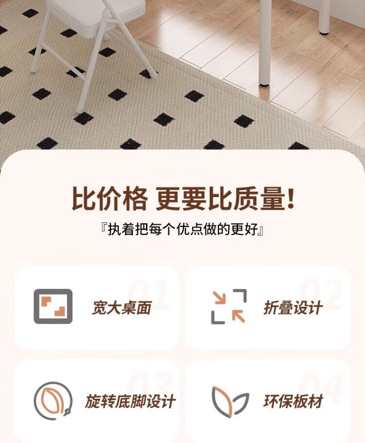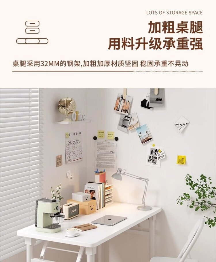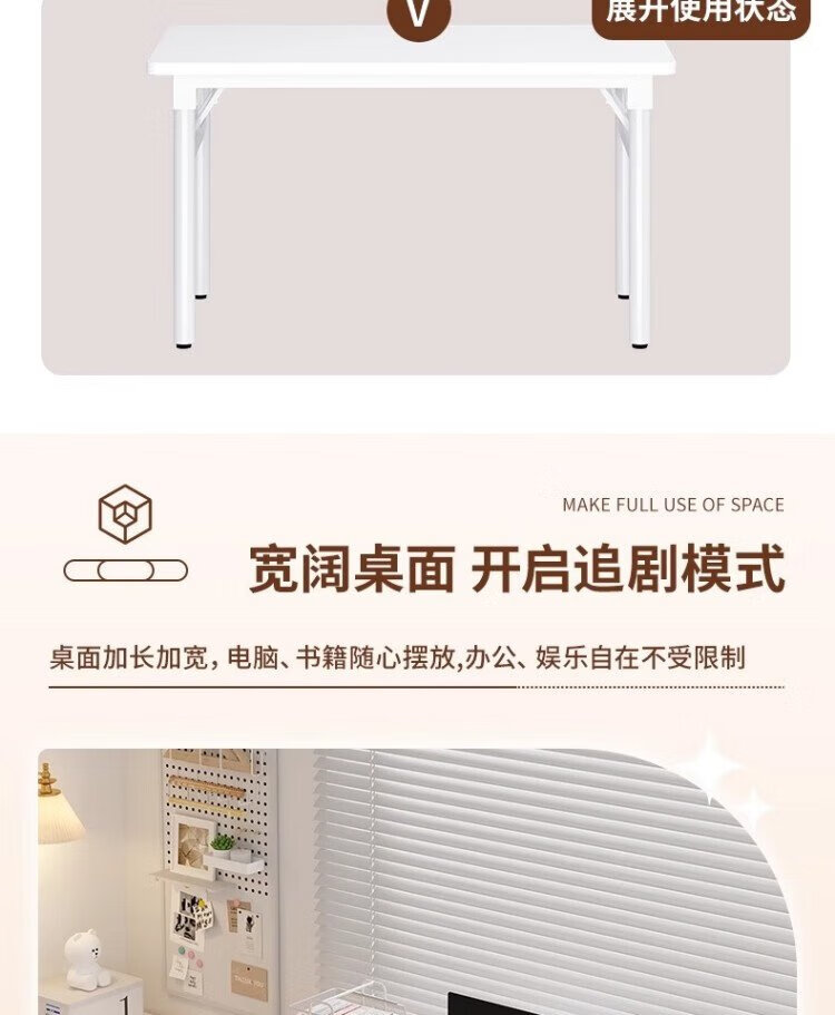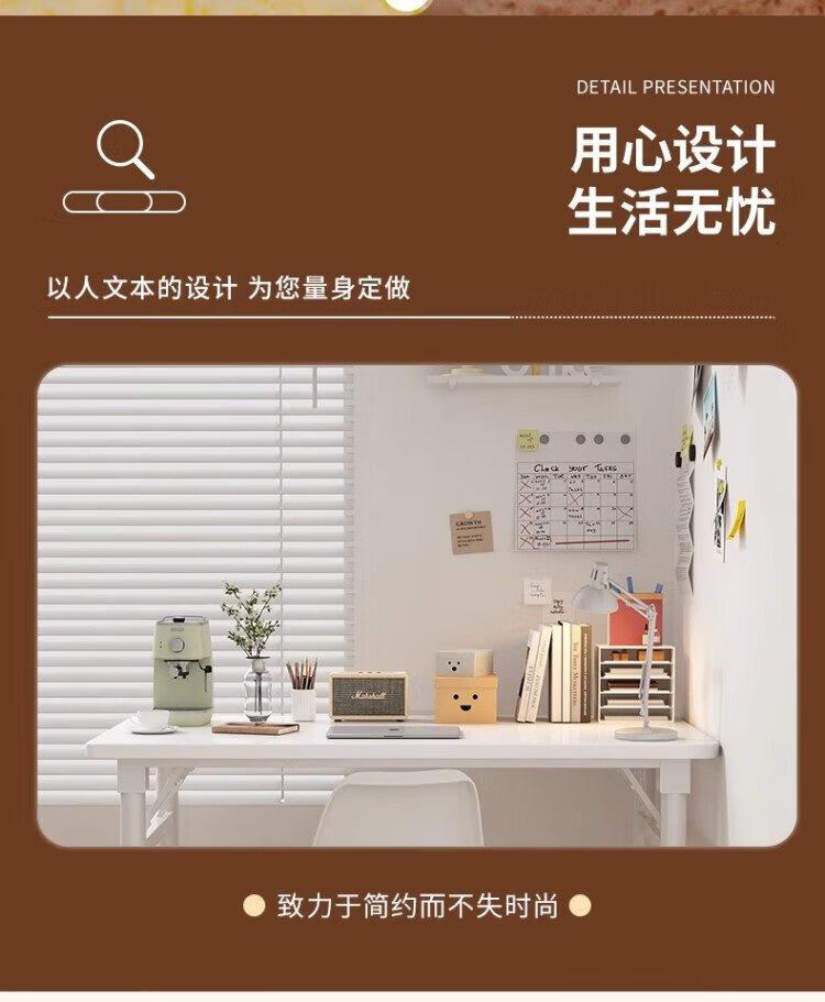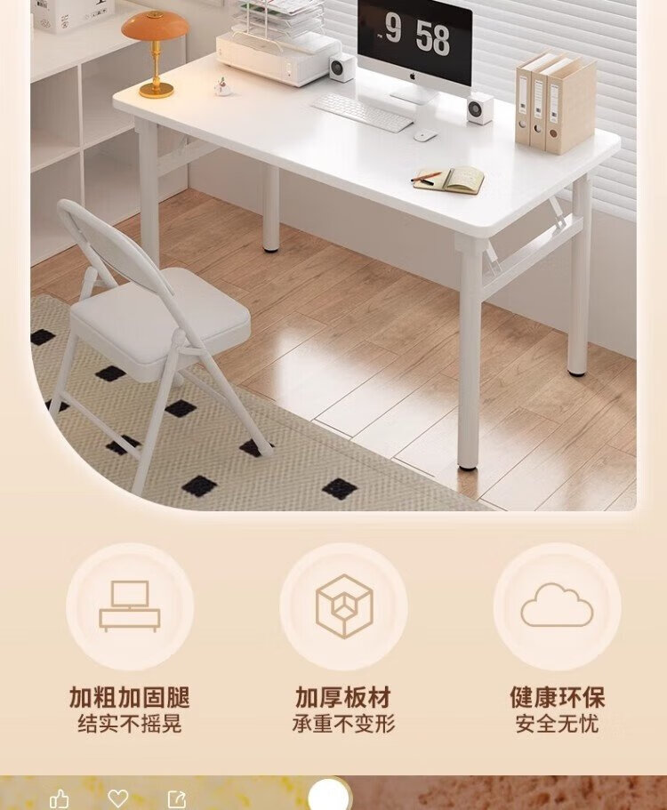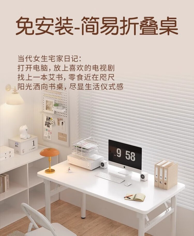 Huixun Jingdong's own brand computer table folding table desk study table household simple dining table portable table single table elegant white 120*60CM single table