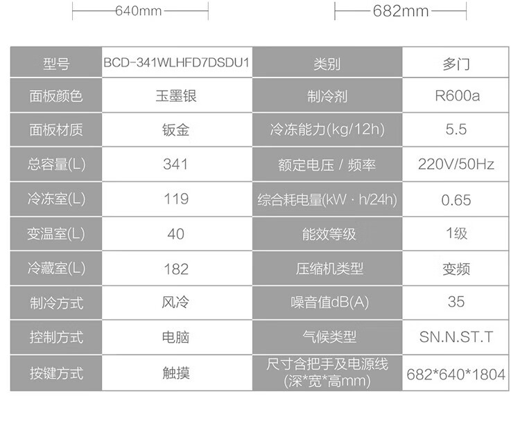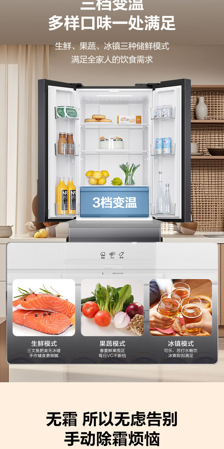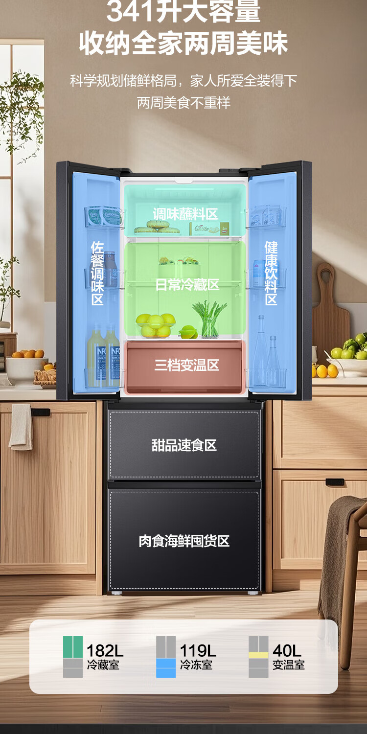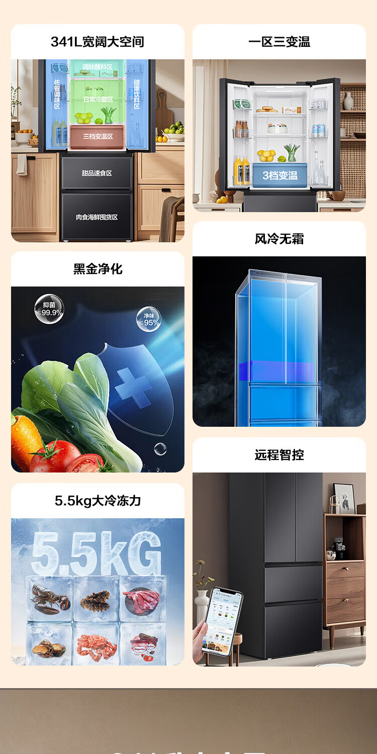 Haier refrigerator 341 liter French multi-door first-class energy efficiency dual frequency conversion air-cooled frost-free black gold purification, sterilization, taste, silent household refrigerator national subsidy trade-in
